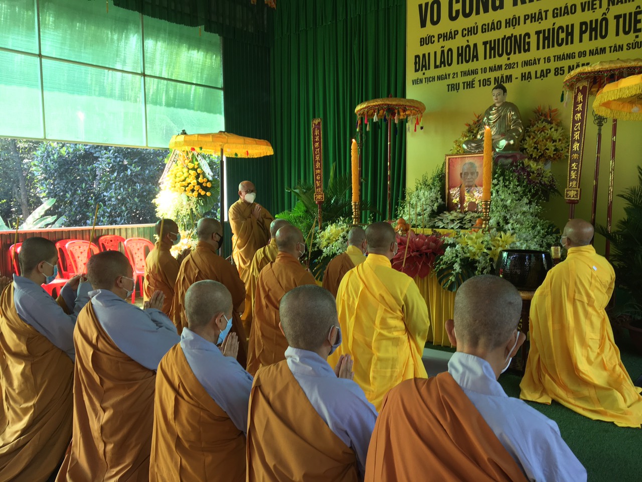 Sau phần điếu văn là nghi thức tôn giáo cầu nguyện Giác linh Hoà thượng cao đăng thượng phẩm. Và đại diện chính quyền địa phương các cấp đặt lẵng hoa và thắp hương tưởng niệm, phân ưu cùng Tăng Ni, Phật tử, Tín đồ Phật giáo huyện Long Thành nói riêng và Phật giáo Việt Nam nói chung khi bóng tùng đại thọ đã ngả mình về với chư Phật, chư Tổ.