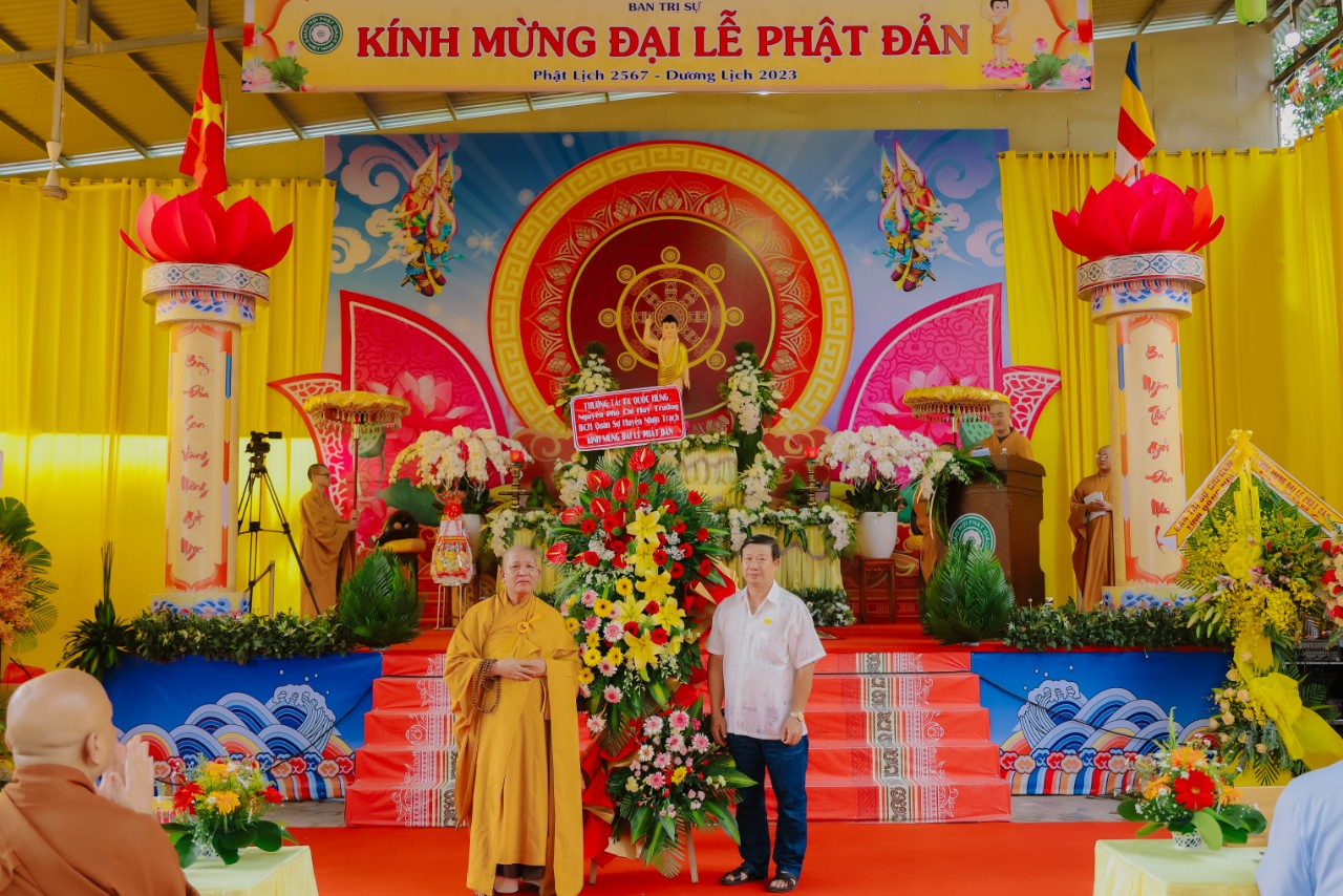 Trong dịp này Tăng Ni Phật tử được đón nhận được Thư Chúc Mừng của Tỉnh ủy - HĐND - UBND - UBMTTQVN tỉnh Đồng Nai, và phần dâng cúng tịnh tài của huyện Nhơn Trạch và các lẵng hoa, quà chúc mừng của Ban Trị sự GHPGVN tỉnh Đồng Nai và các ban ngành tỉnh, huyện, xã.