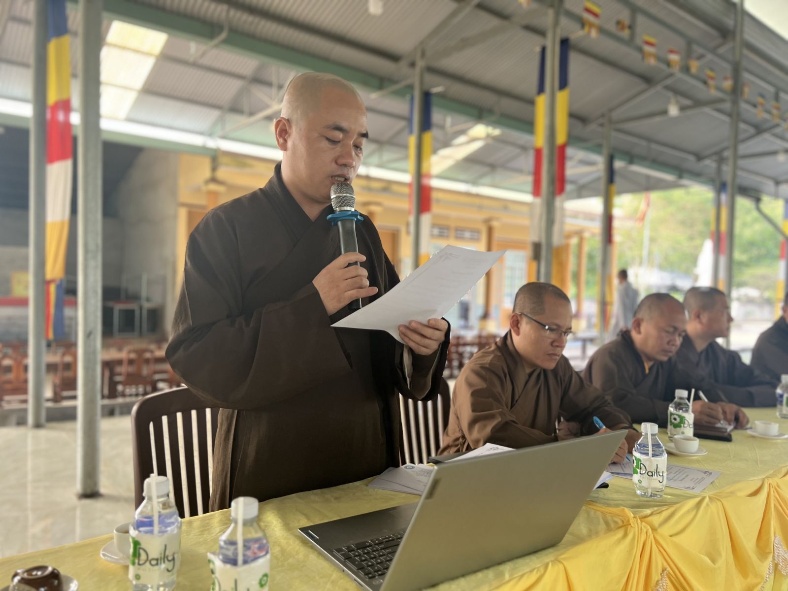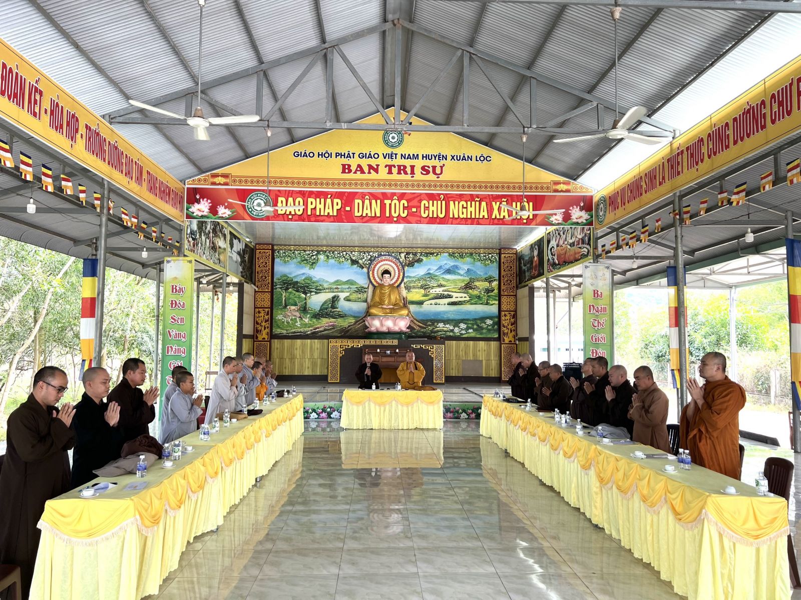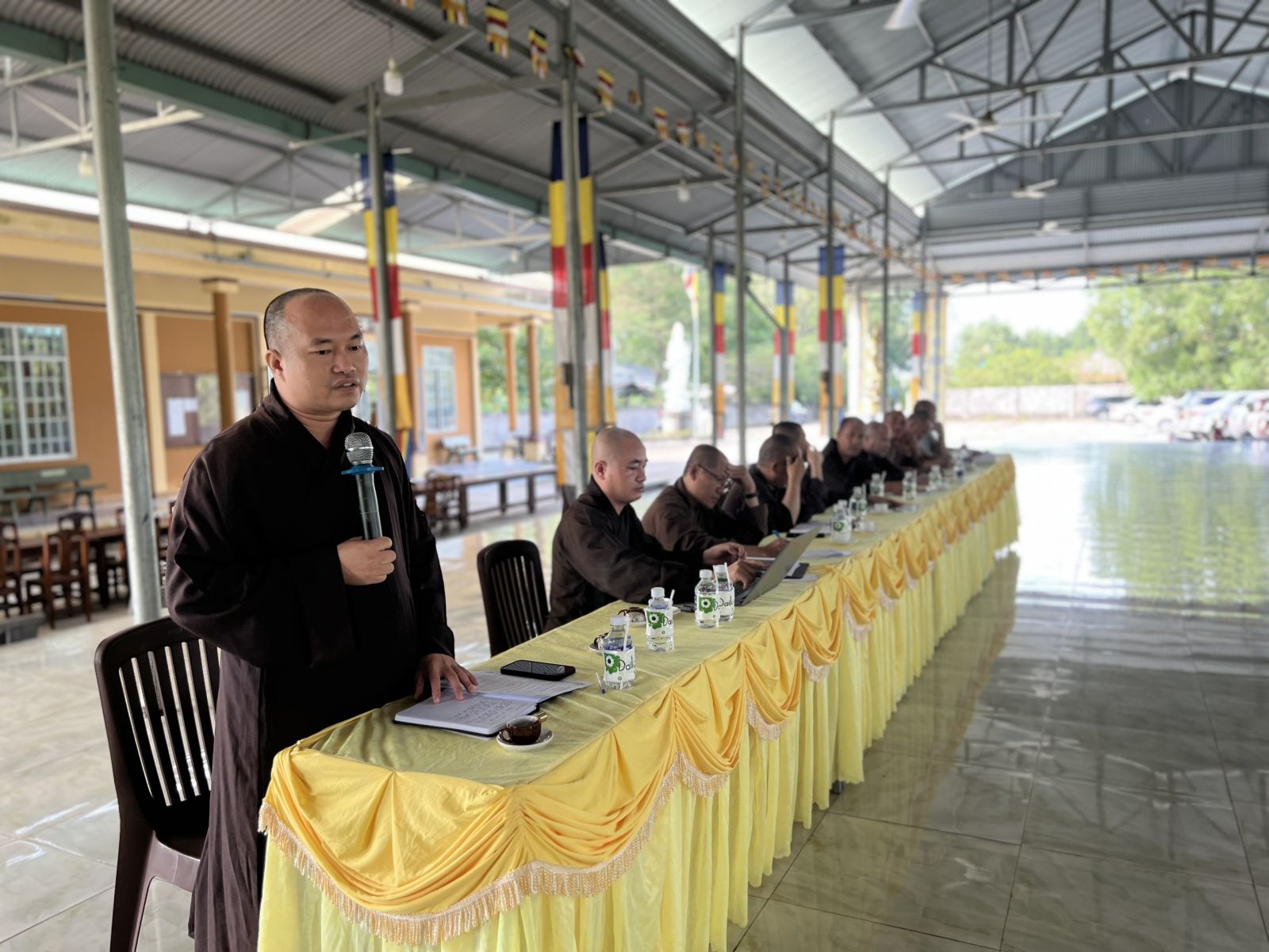 HT. Thích Tâm Minh - Phó BTS GHPGVN tỉnh, Trưởng BTS GHPGVN huyện chủ trì cuộc họp cùng chư tôn đức Tăng Ni trong Ban Trường trực gồm có: TT. Thích Huệ Quang - UV BTS GHPGVN tỉnh - Phó trưởng Ban Thường trực BTS, Trưởng Ban Tăng sự GHPGVN huyện; ĐĐ. Thích Quảng Vinh - Phó trưởng BTS, Trưởng Ban Pháp chế GHPGVN huyện; NS. Thích nữ Trung An - Phó BTS, Thủ quỹ GHPGVN huyện; ĐĐ. Thích An Quang - UV BTS GHPGVN tỉnh, Chánh Thư ký Ban Trị sự GHPGVN huyện; ĐĐ. Thích Huệ Trường – Phó thư ký, Chánh Văn phòng BTS GHPGVN huyện; ĐĐ. Thích Trung Điền - UV BTS GHPGVN tỉnh - Phó Thư ký BTS, Trưởng Ban Từ thiện - Xã hội GHPGVN huyện; ĐĐ. Thích Minh Độ - Trưởng Ban Giáo dục Phật giáo BTS GHPGVN huyện; ĐĐ. Thích Đồng Đạt - Trưởng Ban Kiểm Soát BTS GHPGVN huyện; SC. Thích nữ Nhật Quy - Trưởng Ban Kinh tế - Tài chánh BTS GHPGVN huyện; NS. Thích nữ Huệ Ngọc - Trưởng phân ban Ni giới BTS GHPGVN huyện cùng chư tôn đức Tăng Ni trong Ban Trị sự đồng tham dự.
