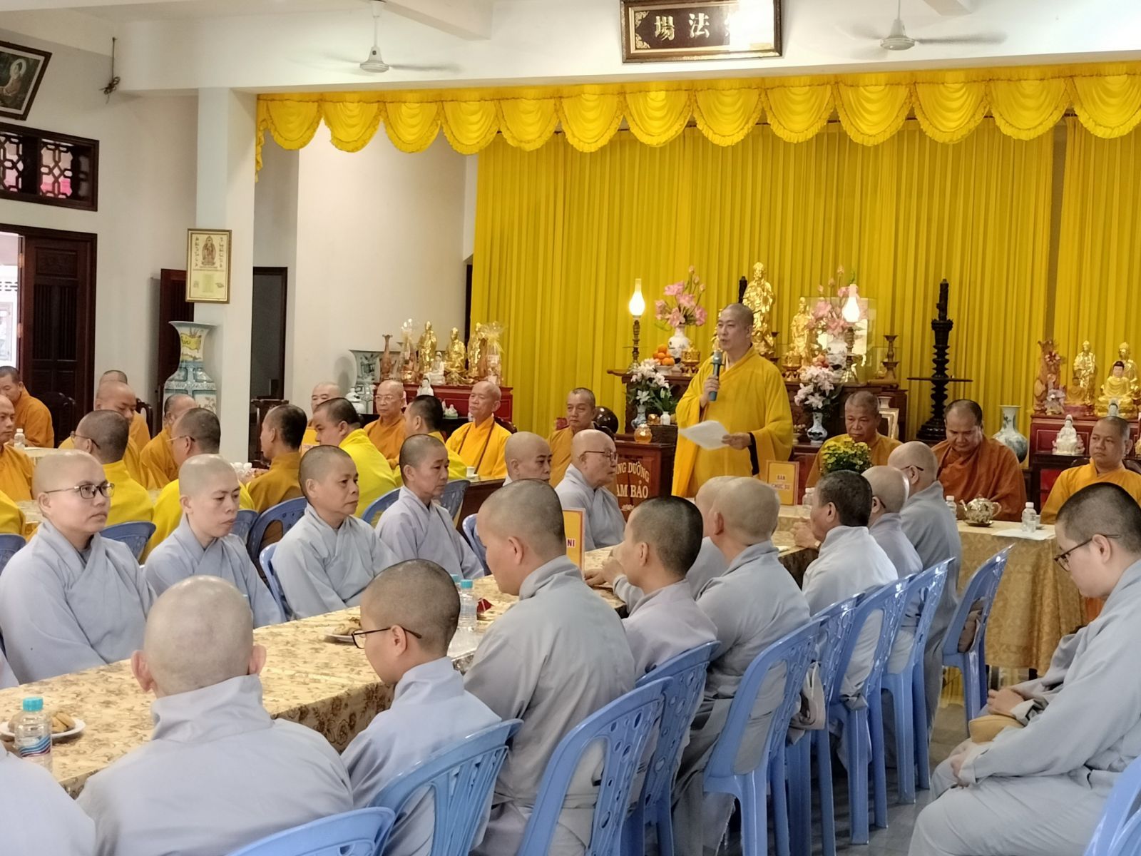 tại Hạ trường Tp. Long Khánh, Ban Trị sự GHPGVN tỉnh đã lắng nghe ĐĐ. Thích Hạnh Tín - Phó ban kiêm Chánh Thư ký Ban Trị sự GHPGVN Tp. Long Khánh báo cáo công tác và tình hình tổ chức An cư kiết hạ PL. 2568 – DL. 2024 của Ban Trị sự GHPGVN Tp. Long Khánh.