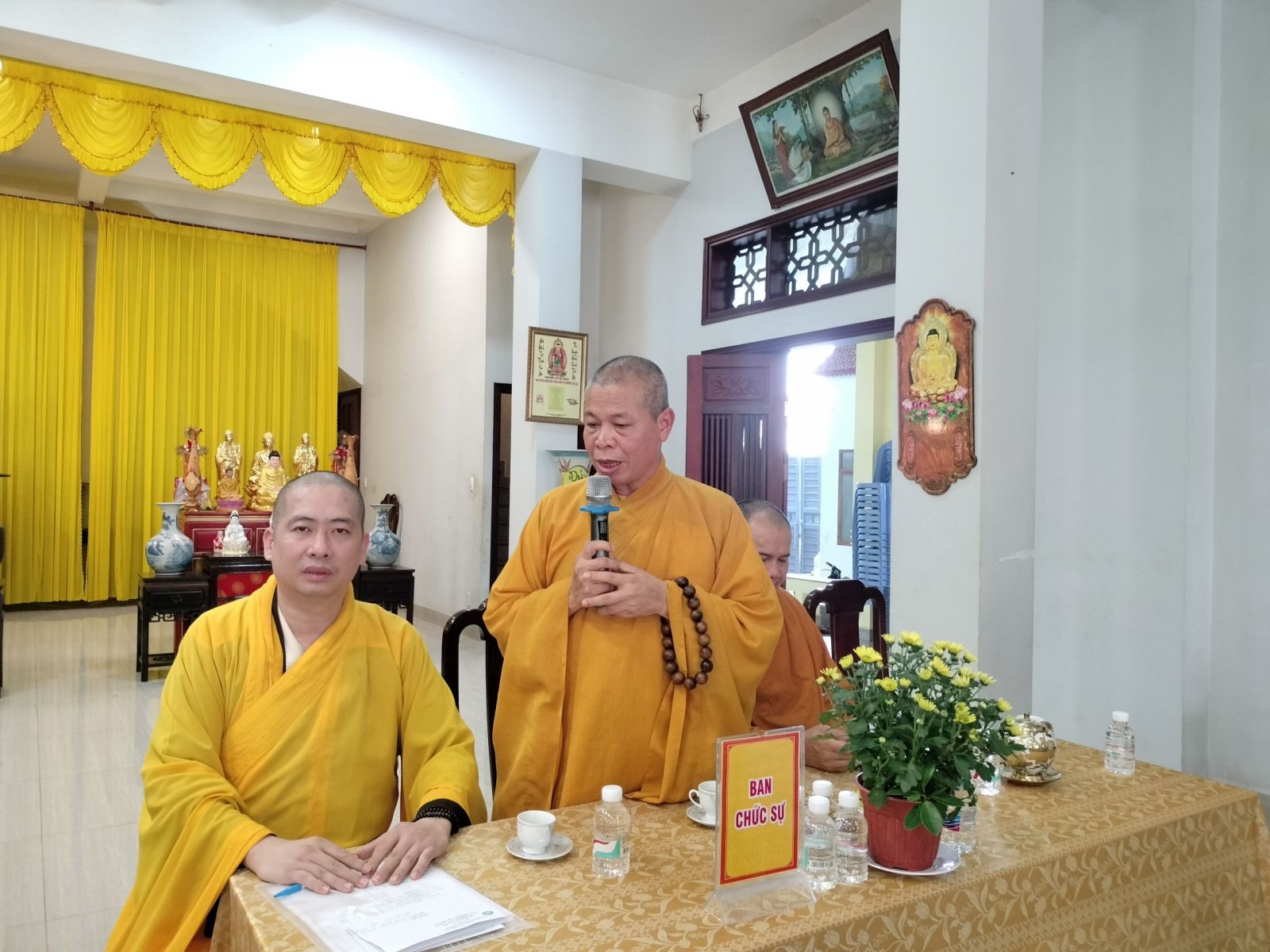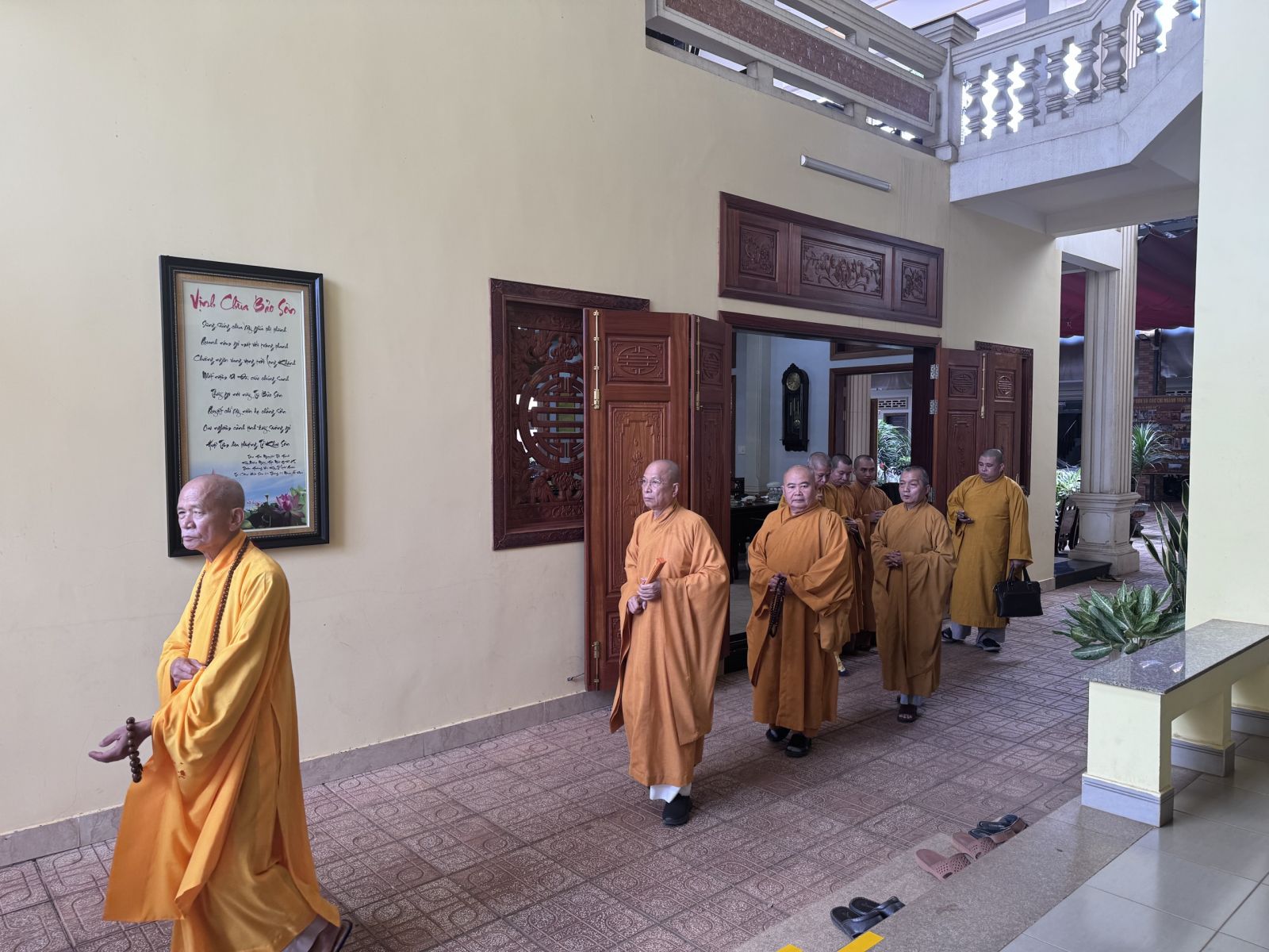 Đi cùng đoàn có HT. Thích Tâm Minh - Phó Ban Trị sự GHPGVN tỉnh; TT. Thích Minh Trì - Phó Ban Trị sự GHPGVN tỉnh; ĐĐ. Thích Thiện Trí - Phó Thư ký, Chánh Văn phòng Ban Trị sự GHPGVN tỉnh; ĐĐ. Thích Huệ Thới - Phó Văn phòng Ban Trị sự GHPGVN tỉnh; cùng chư Tôn đức đi cùng đoàn.