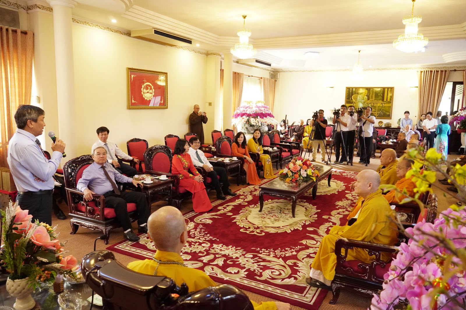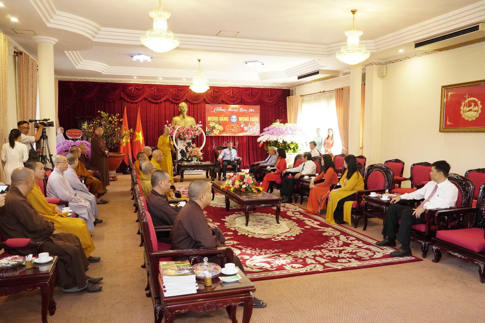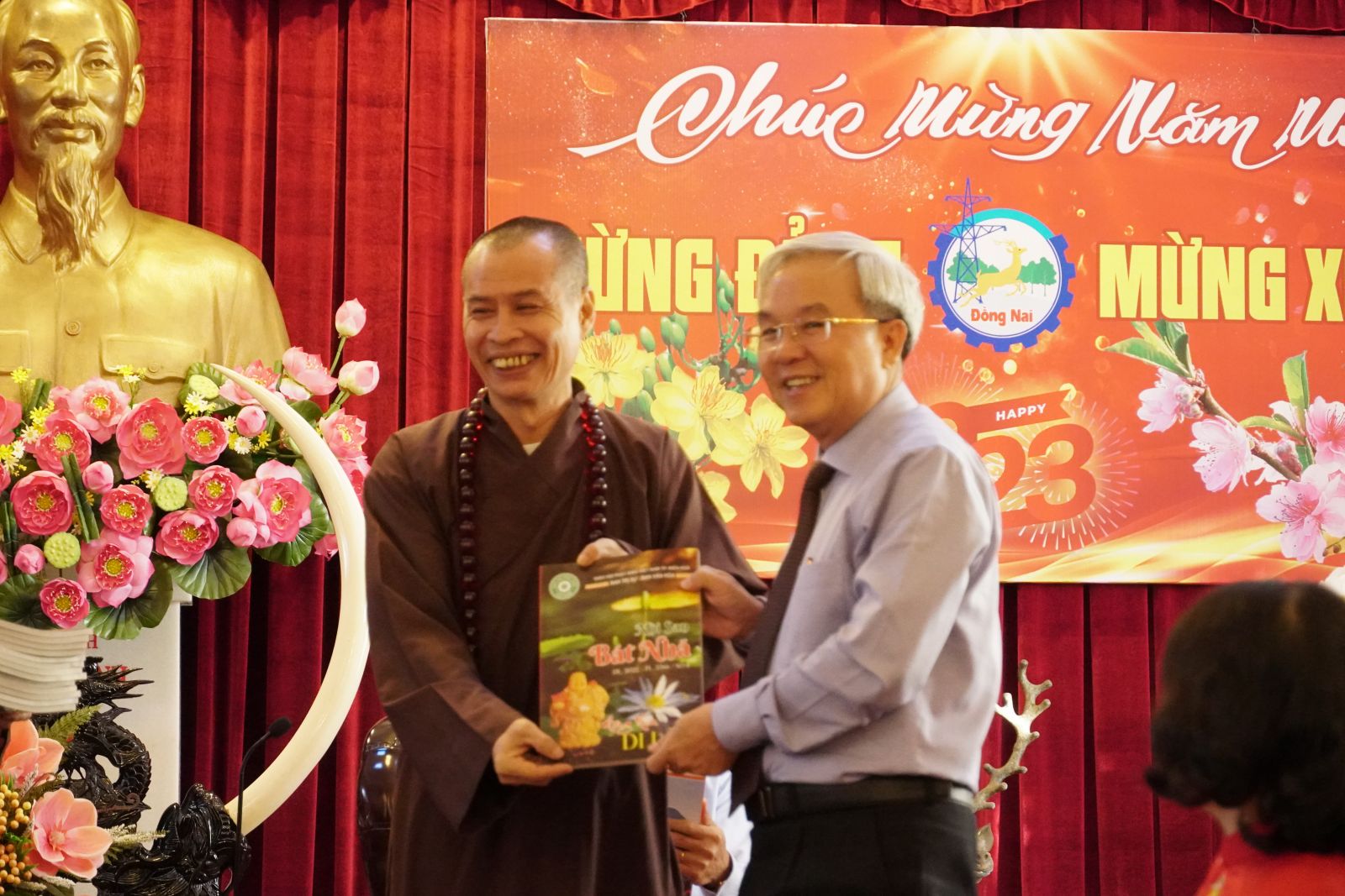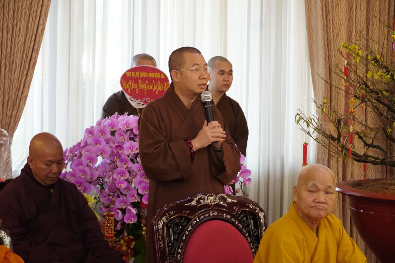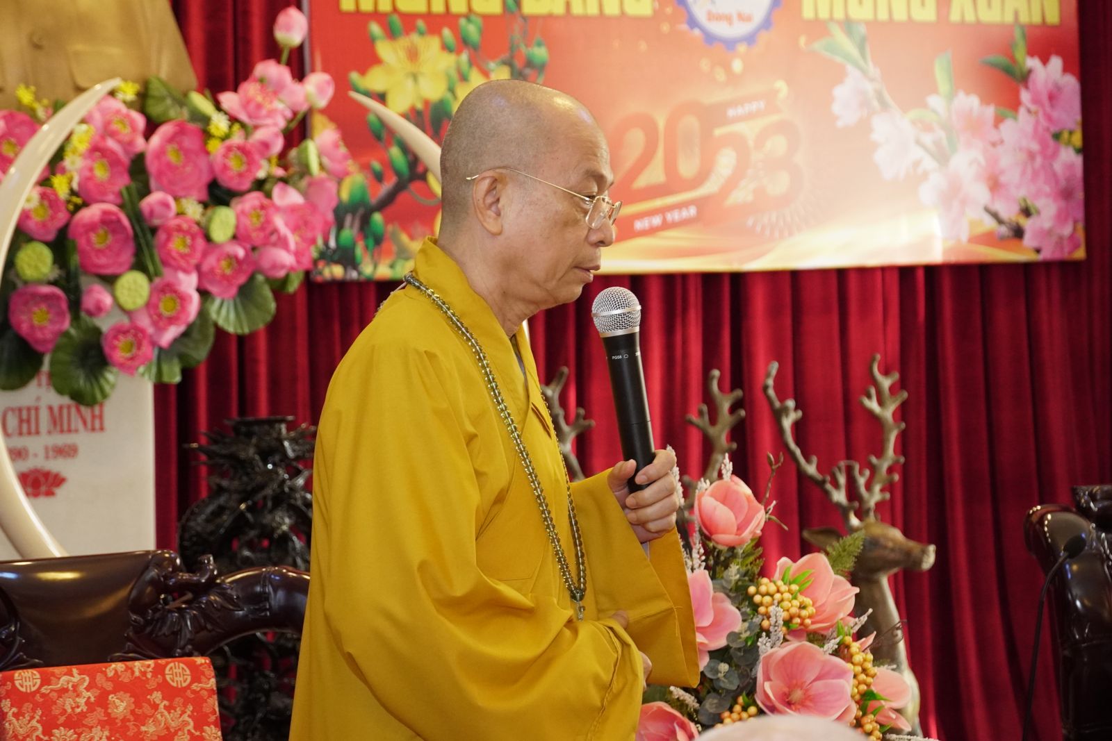 Đại diện Đoàn Ban trị sự GHPGVN tỉnh Đồng Nai, TT. Thích Huệ Khai – Trưởng Ban Trị sự GHPGVN tỉnh đã phát biểu một số nội dung về công tác Phật sự trong năm qua của Ban Trị sự GHPGVN tỉnh Đồng Nai, Thượng tọa nêu lên những thành tựu Phật sự và đồng thời gửi lời cảm ơn chân thành đến các cấp lãnh đạo tỉnh Đồng Nai trong năm qua đã hỗ trợ nhiệt tình với Ban Trị sự tỉnh nhà, giúp cho công tác Phật sự được thành tựu viên mãn, đồng thời giúp cho bà con trong công tác an sinh xã hội để mọi người ai cũng đón một cái tết ấm no hạnh phúc. Cuối lời, Thượng tọa đã gửi lời cầu chúc tốt đẹp nhân dịp tết đến xuân về, kính chúc các cấp lãnh đạo tỉnh Đồng Nai một mùa xuân Vô lượng An lạc Cát tường Như ý.