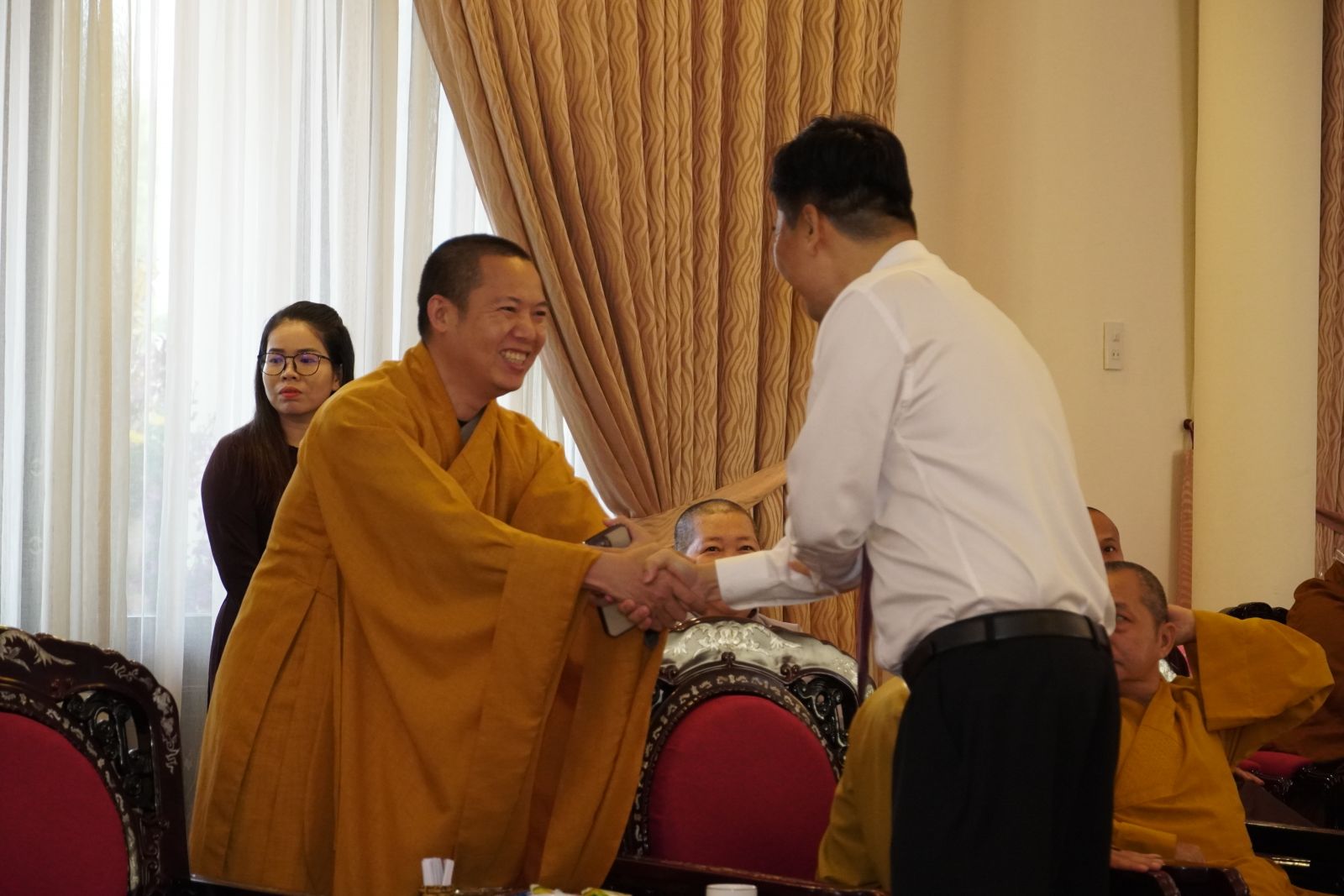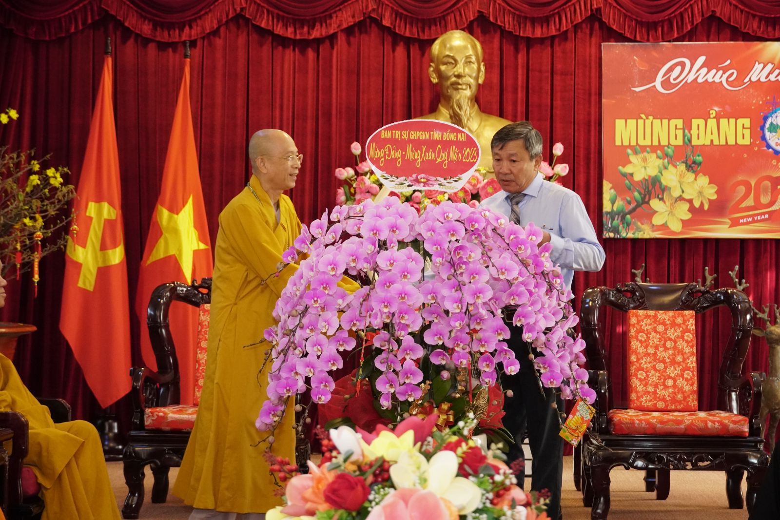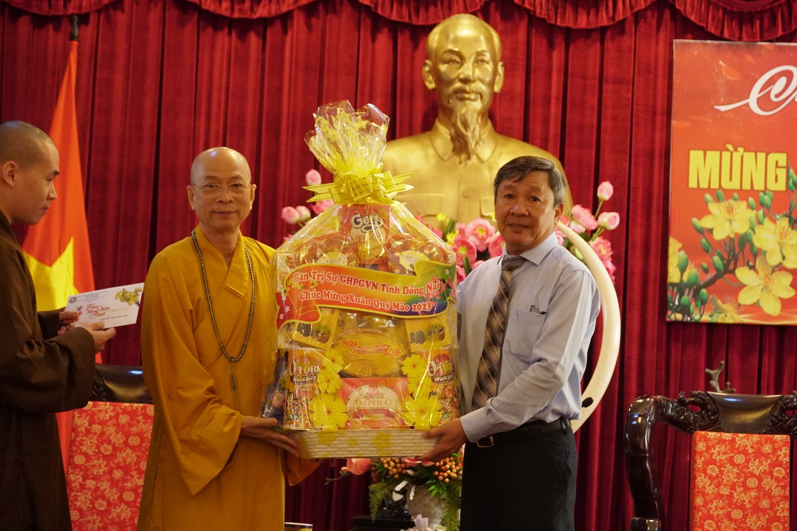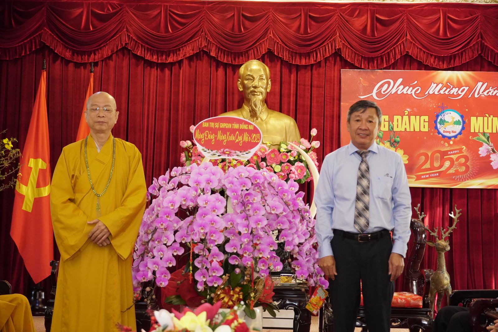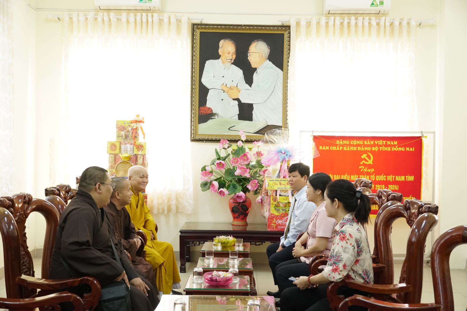 Đón tiếp đoàn Ban Trị sự PG tỉnh có ông Hồ Thanh Sơn – Phó bí thư Thường trực Tỉnh ủy tỉnh Đồng Nai; ông Cao Văn Quang - Ủy viên ban Thường vụ tỉnh Ủy, Chủ tịch UBMTTQVN tỉnh; bà Hoàng Thị Bích Hằng – Tỉnh ủy viên, Phó Chủ tịch HĐND tỉnh; ông Nguyễn Sơn Hùng – Tỉnh ủy viên – Phó chủ tịch UBND tỉnh; ông Viên Hồng Tiến – Tỉnh ủy viên, Chánh văn phòng Tỉnh ủy; bà Nguyễn Thị Hồng Trang – Tỉnh ủy viên, Phó trưởng ban Tuyên giáo Tỉnh ủy; bà Phạm Thị Kim Chung – Phó trưởng ban Thường trực ban Dân vận tỉnh ủy; ngoài ra còn có ban lãnh Ban Tôn giáo tỉnh cùng các cấp ban ngành tỉnh Đồng Nai đón tiếp Phái đoàn.