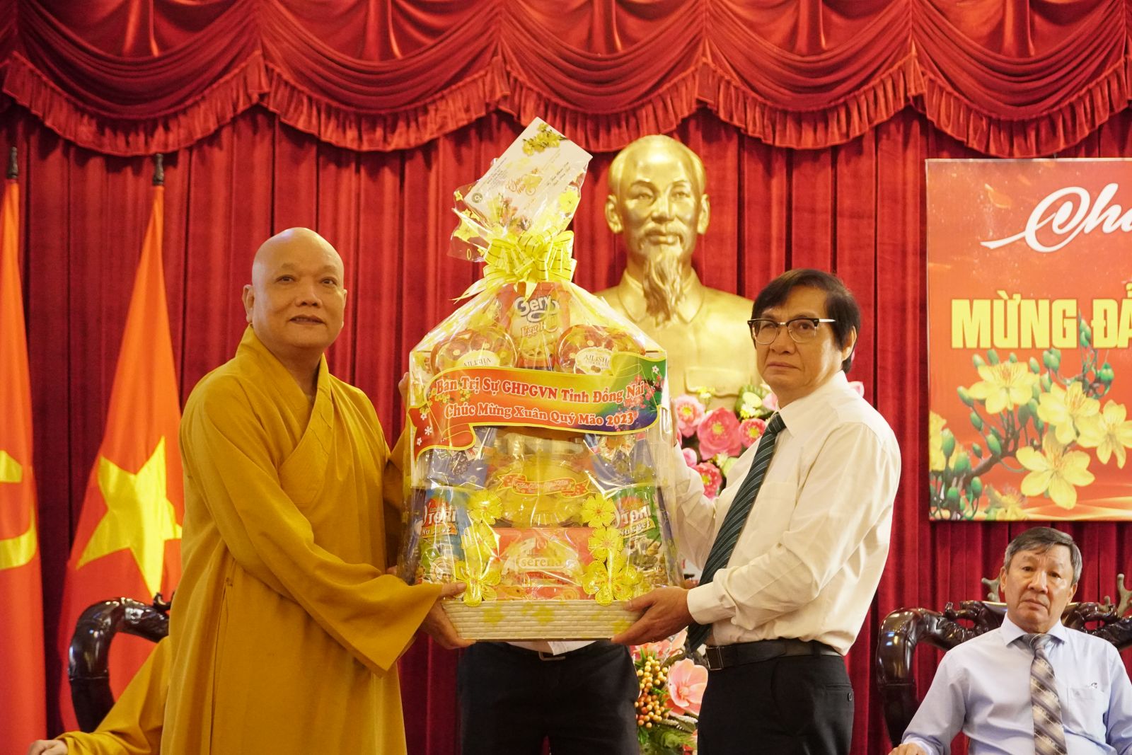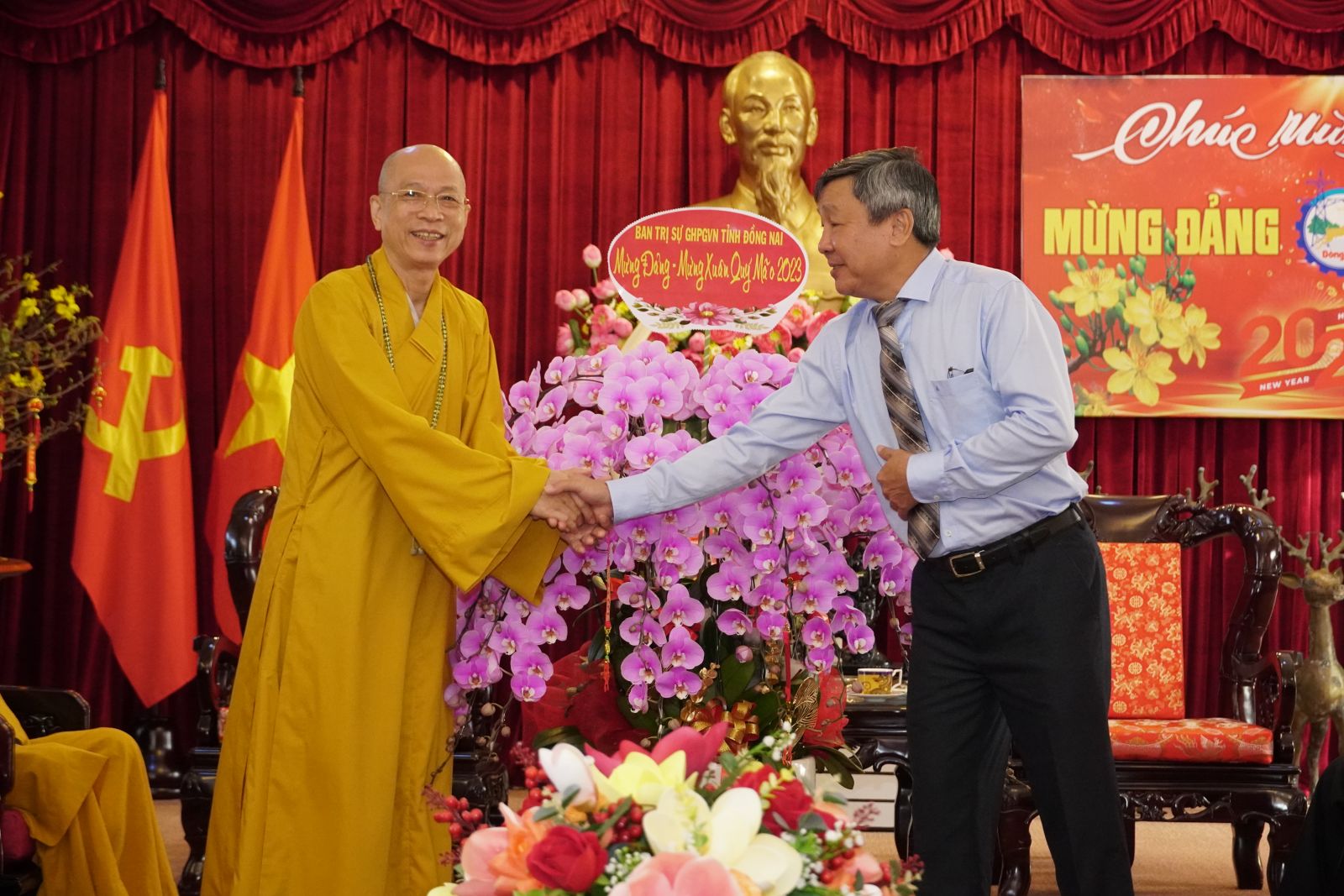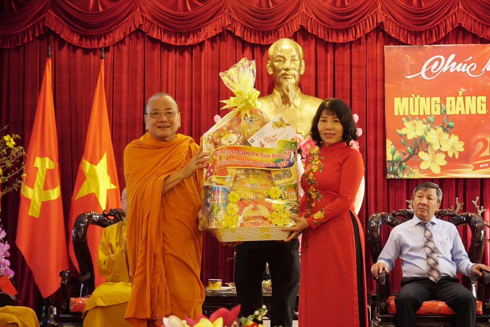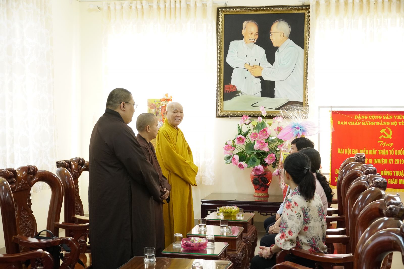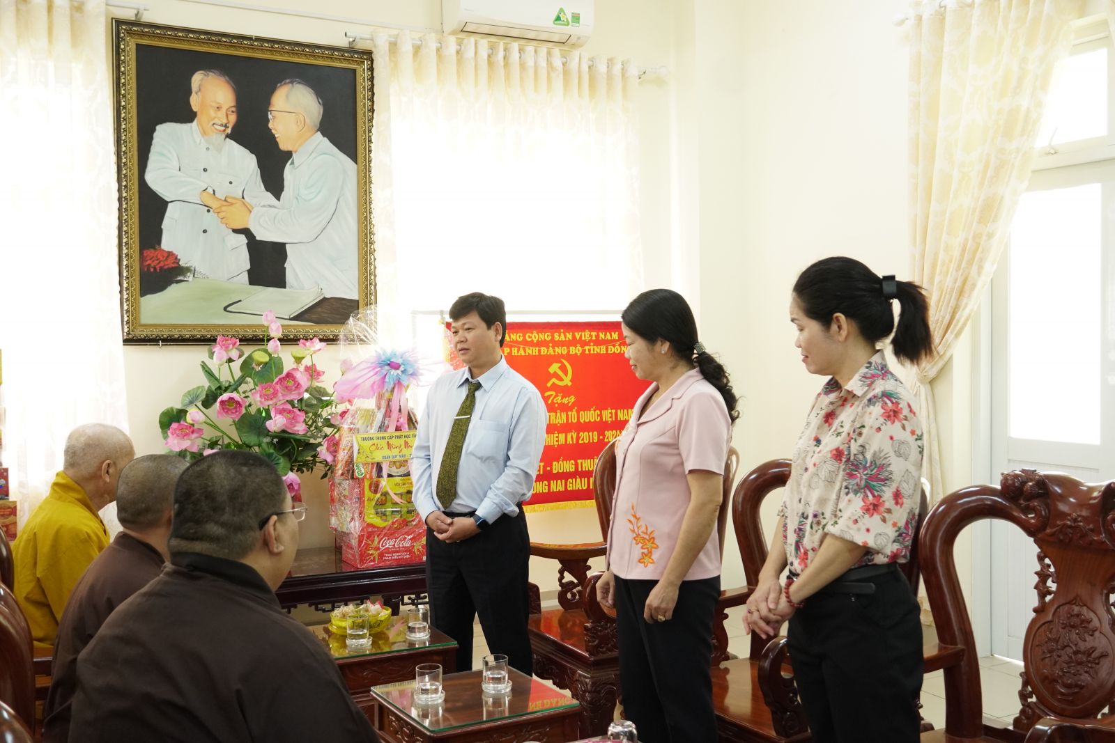 Đón tiếp đoàn Ban Trị sự PG tỉnh có ông Hồ Thanh Sơn – Phó bí thư Thường trực Tỉnh ủy tỉnh Đồng Nai; ông Cao Văn Quang - Ủy viên ban Thường vụ tỉnh Ủy, Chủ tịch UBMTTQVN tỉnh; bà Hoàng Thị Bích Hằng – Tỉnh ủy viên, Phó Chủ tịch HĐND tỉnh; ông Nguyễn Sơn Hùng – Tỉnh ủy viên – Phó chủ tịch UBND tỉnh; ông Viên Hồng Tiến – Tỉnh ủy viên, Chánh văn phòng Tỉnh ủy; bà Nguyễn Thị Hồng Trang – Tỉnh ủy viên, Phó trưởng ban Tuyên giáo Tỉnh ủy; bà Phạm Thị Kim Chung – Phó trưởng ban Thường trực ban Dân vận tỉnh ủy; ngoài ra còn có ban lãnh Ban Tôn giáo tỉnh cùng các cấp ban ngành tỉnh Đồng Nai đón tiếp Phái đoàn.