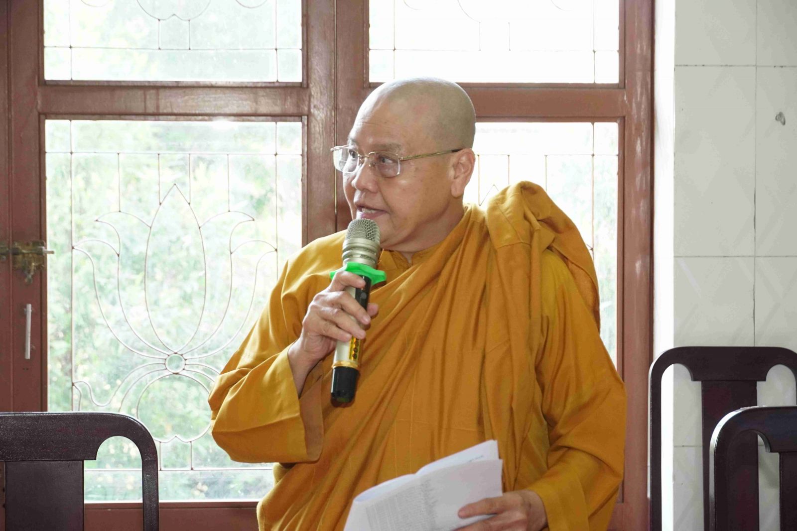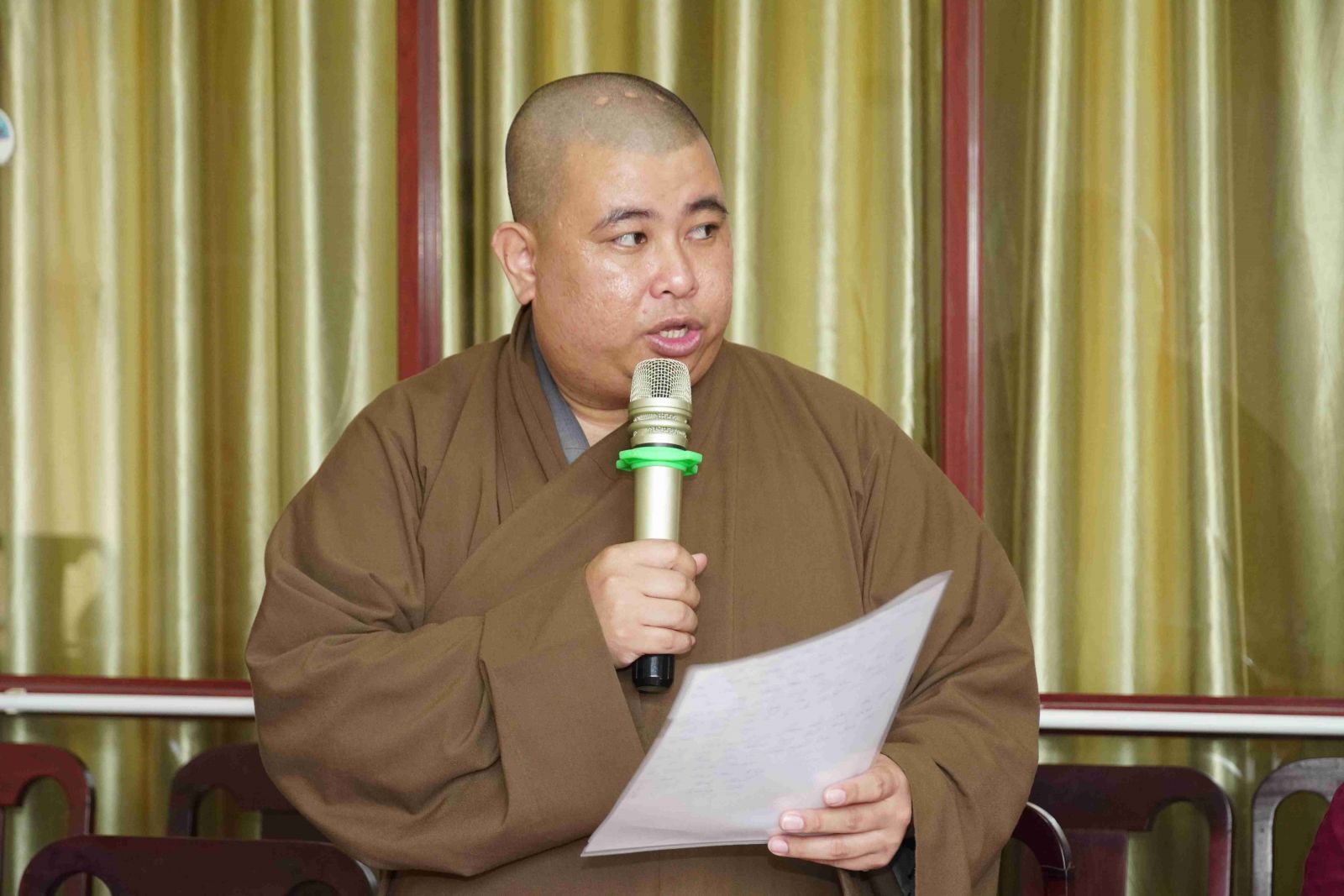 Tiếp đó, ĐĐ. Thích Thiện Trí đã thay mặt ban Thư ký báo cáo công tác tổ chức Đại giới đàn, và triển khai một số công tác Khảo thí Giới tử.