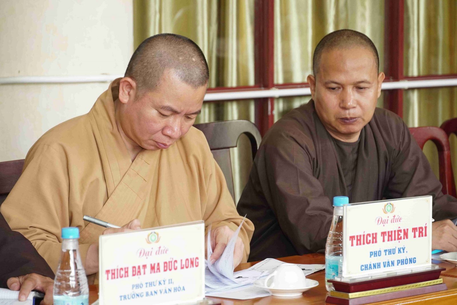 Chủ tọa phiên họp có TT. Thích Huệ Khai - Ủy viên Thường trực HĐTS, Trưởng ban Ban Trị sự, Trưởng ban Tăng sự GHPGVN tỉnh Đồng Nai; HT. Thích Bửu Chánh – Ủy viên Thư ký HĐTS, Phó Trưởng ban Thường trực Ban Trị sự GHPGVN tỉnh; HT. Thích Minh Ngạn – Phó Ban Trị sự, Trưởng ban Kiểm soát GHPGVN tỉnh; TT. Thích Huệ Sanh - Ủy viên HĐTS, Phó Ban Trị sự, Trưởng ban Hoăng pháp GHPGVN tỉnh; cùng chư Tôn đức Tăng Ni Ban Trị sự tỉnh, chư Tôn đức trong ban Tổ chức và ban Giám khảo Đại giới đàn Đạt Thanh 2024.