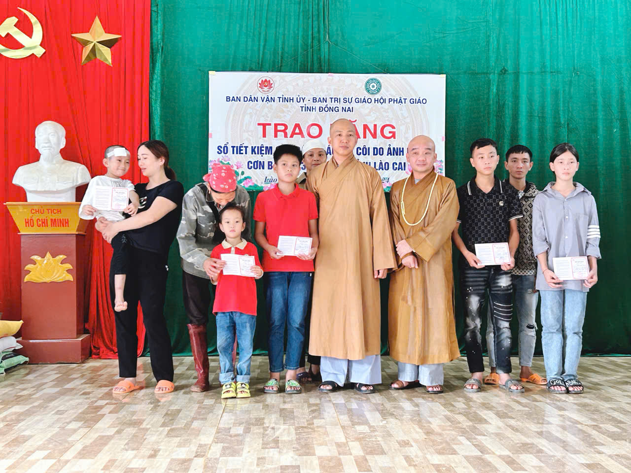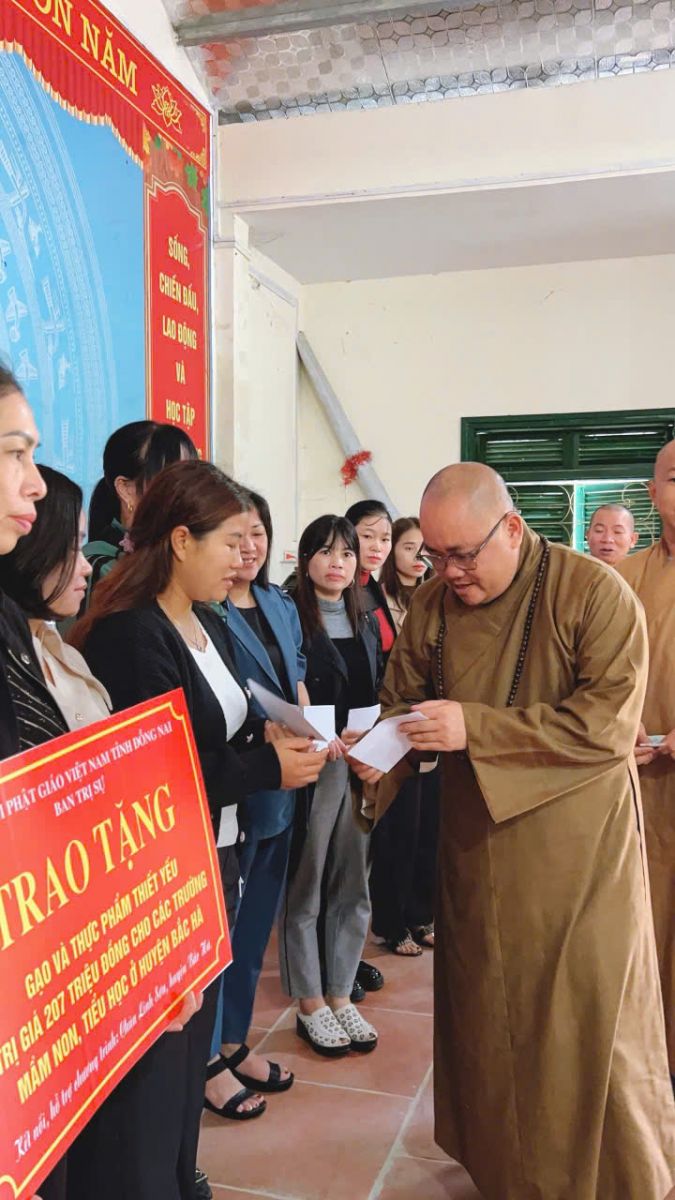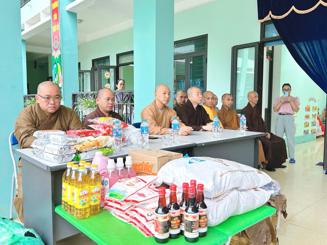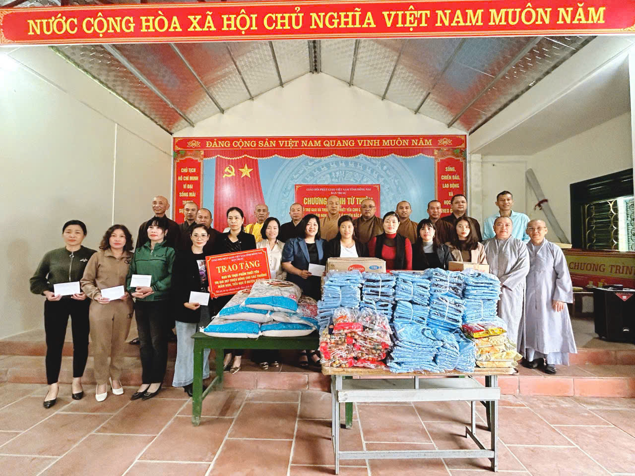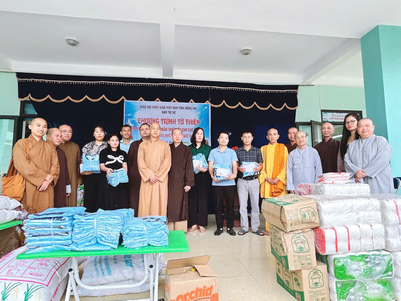 Thành phần đoàn có Thượng tọa Thích Huệ Khai, UVTT HĐTS GHPGVN, Trưởng Ban trị sự kiêm Trưởng Ban tăng sự GHPGVN tỉnh Đồng Nai, Trưởng đoàn; Đại đức Thích Chơn Nghĩa, Ủy viên Thường trực, Trưởng Ban Từ thiện Xã hội GHPGVN tỉnh, Phó Thường trực đoàn; Đại đức Thích Thiện Trí, Phó Thư ký kiêm Chánh Văn phòng Ban Trị sự GHPGVN tỉnh, Phó trưởng đoàn; Thượng tọa Thích Quảng Thành, Ủy viên Ban Trị sự GHPGVN tỉnh, Chánh Thư ký Ban Trị sự GHPGVN thành phố Biên Hòa, Phó trưởng đoàn; Đại đức Thích Nguyên Thông, Ủy viên Ban Trị sự GHPGVN tỉnh, Phó ban kiêm Chánh Thư ký Ban Trị sự GHPGVN huyện Long Thành, Phó Ban Thường trực Ban Từ thiện Xã hội GHPGVN tỉnh, Phó trưởng đoàn; Đại đức Thích Trung Điền, Ủy viên Ban Trị sự GHPGVN tỉnh, Phó Thư ký, Trưởng Ban Từ thiện Xã hội GHPGVN huyện Xuân Lộc, Phó Ban Từ thiện Xã hội GHPGVN tỉnh, Phó trưởng đoàn; Đại đức Thích Thiện Huy, Ủy viên Ban Trị sự GHPGVN tỉnh, Phó Ban kiêm Chánh Thư ký Ban Từ thiện Xã hội GHPGVN tỉnh, Thư ký đoàn; Thượng tọa Thích Minh Hạnh, Ủy viên Ban Trị sự GHPGVN tỉnh, Phó ban Trị sự GHPGVN huyện Long Thành, Thành viên; Đại đức Thích Huệ Hạnh, Chánh Thư ký Ban Trị sự GHPGVN huyện Định Quán, Thành viên; Đại đức Thích Thiện Bửu, Ủy viên dự khuyết Ban Trị sự GHPGVN tỉnh Đồng Nai, Phó Thư ký Ban từ thiện Xã hội GHPGVN tỉnh Đồng Nai, Thành viên; Sc. Tn Liên Hoàng, Nhân viên VP BTS, Phụ trách hình ảnh của đoàn.
