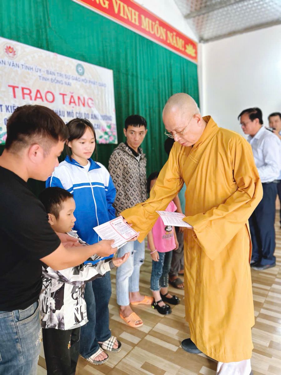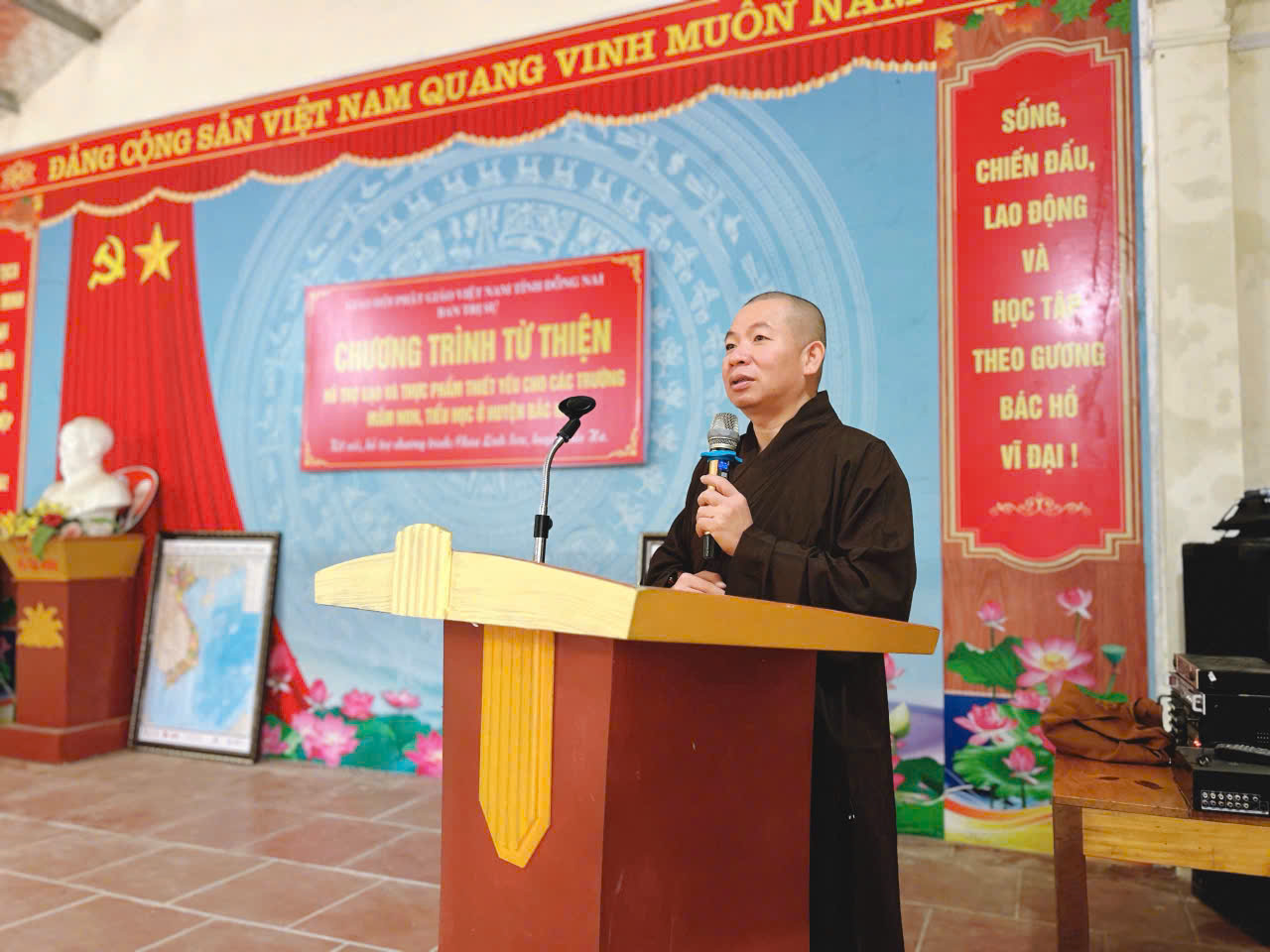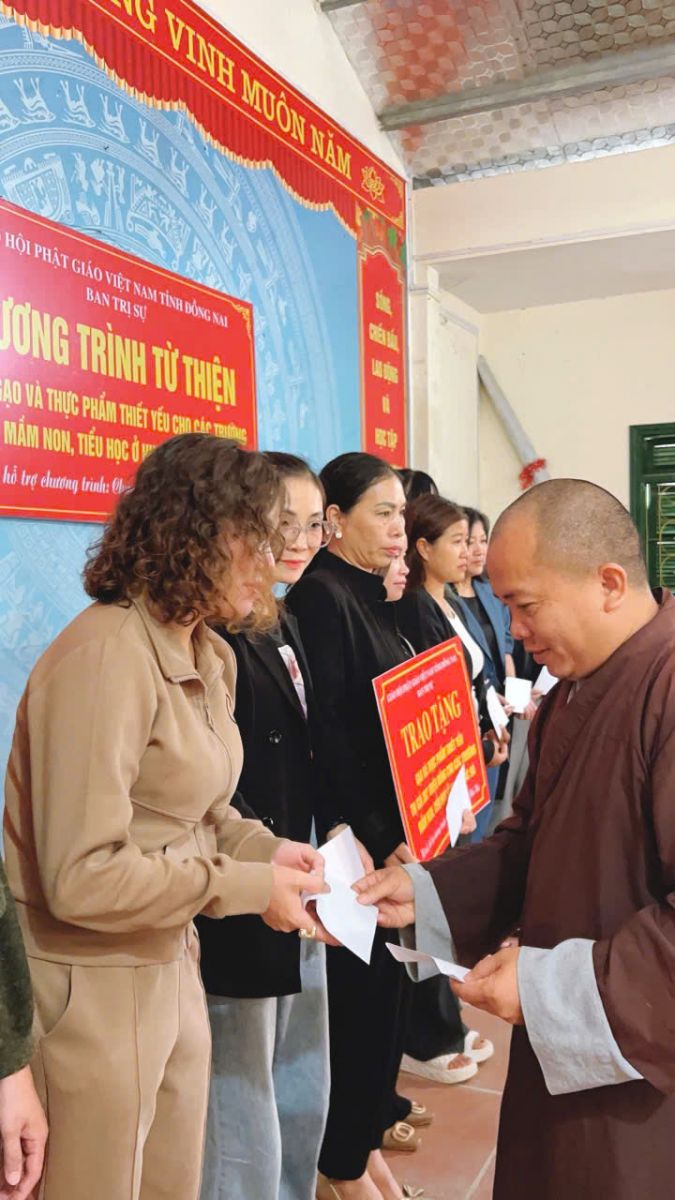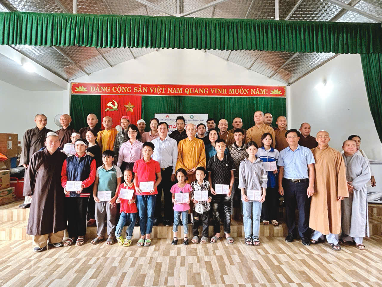 Thành phần đoàn có Thượng tọa Thích Huệ Khai, UVTT HĐTS GHPGVN, Trưởng Ban trị sự kiêm Trưởng Ban tăng sự GHPGVN tỉnh Đồng Nai, Trưởng đoàn; Đại đức Thích Chơn Nghĩa, Ủy viên Thường trực, Trưởng Ban Từ thiện Xã hội GHPGVN tỉnh, Phó Thường trực đoàn; Đại đức Thích Thiện Trí, Phó Thư ký kiêm Chánh Văn phòng Ban Trị sự GHPGVN tỉnh, Phó trưởng đoàn; Thượng tọa Thích Quảng Thành, Ủy viên Ban Trị sự GHPGVN tỉnh, Chánh Thư ký Ban Trị sự GHPGVN thành phố Biên Hòa, Phó trưởng đoàn; Đại đức Thích Nguyên Thông, Ủy viên Ban Trị sự GHPGVN tỉnh, Phó ban kiêm Chánh Thư ký Ban Trị sự GHPGVN huyện Long Thành, Phó Ban Thường trực Ban Từ thiện Xã hội GHPGVN tỉnh, Phó trưởng đoàn; Đại đức Thích Trung Điền, Ủy viên Ban Trị sự GHPGVN tỉnh, Phó Thư ký, Trưởng Ban Từ thiện Xã hội GHPGVN huyện Xuân Lộc, Phó Ban Từ thiện Xã hội GHPGVN tỉnh, Phó trưởng đoàn; Đại đức Thích Thiện Huy, Ủy viên Ban Trị sự GHPGVN tỉnh, Phó Ban kiêm Chánh Thư ký Ban Từ thiện Xã hội GHPGVN tỉnh, Thư ký đoàn; Thượng tọa Thích Minh Hạnh, Ủy viên Ban Trị sự GHPGVN tỉnh, Phó ban Trị sự GHPGVN huyện Long Thành, Thành viên; Đại đức Thích Huệ Hạnh, Chánh Thư ký Ban Trị sự GHPGVN huyện Định Quán, Thành viên; Đại đức Thích Thiện Bửu, Ủy viên dự khuyết Ban Trị sự GHPGVN tỉnh Đồng Nai, Phó Thư ký Ban từ thiện Xã hội GHPGVN tỉnh Đồng Nai, Thành viên; Sc. Tn Liên Hoàng, Nhân viên VP BTS, Phụ trách hình ảnh của đoàn.