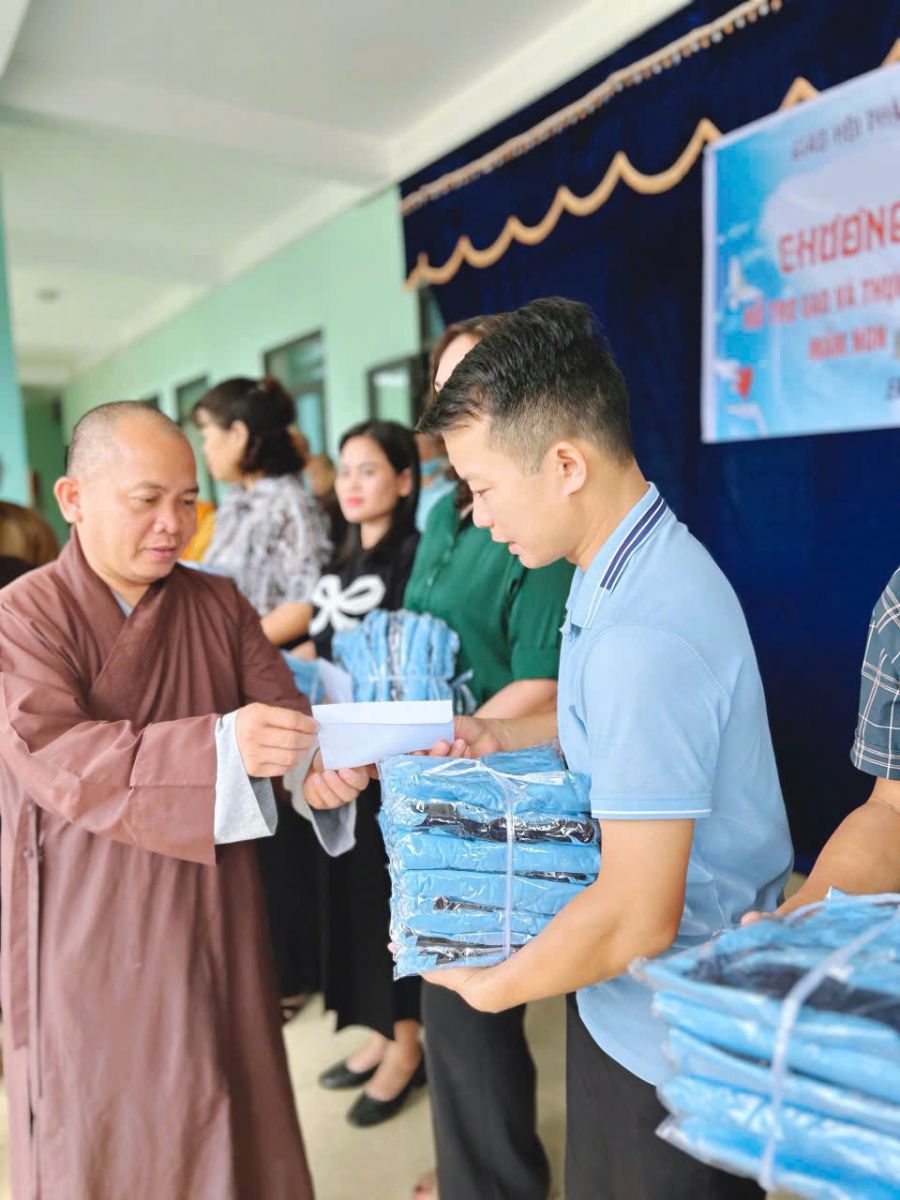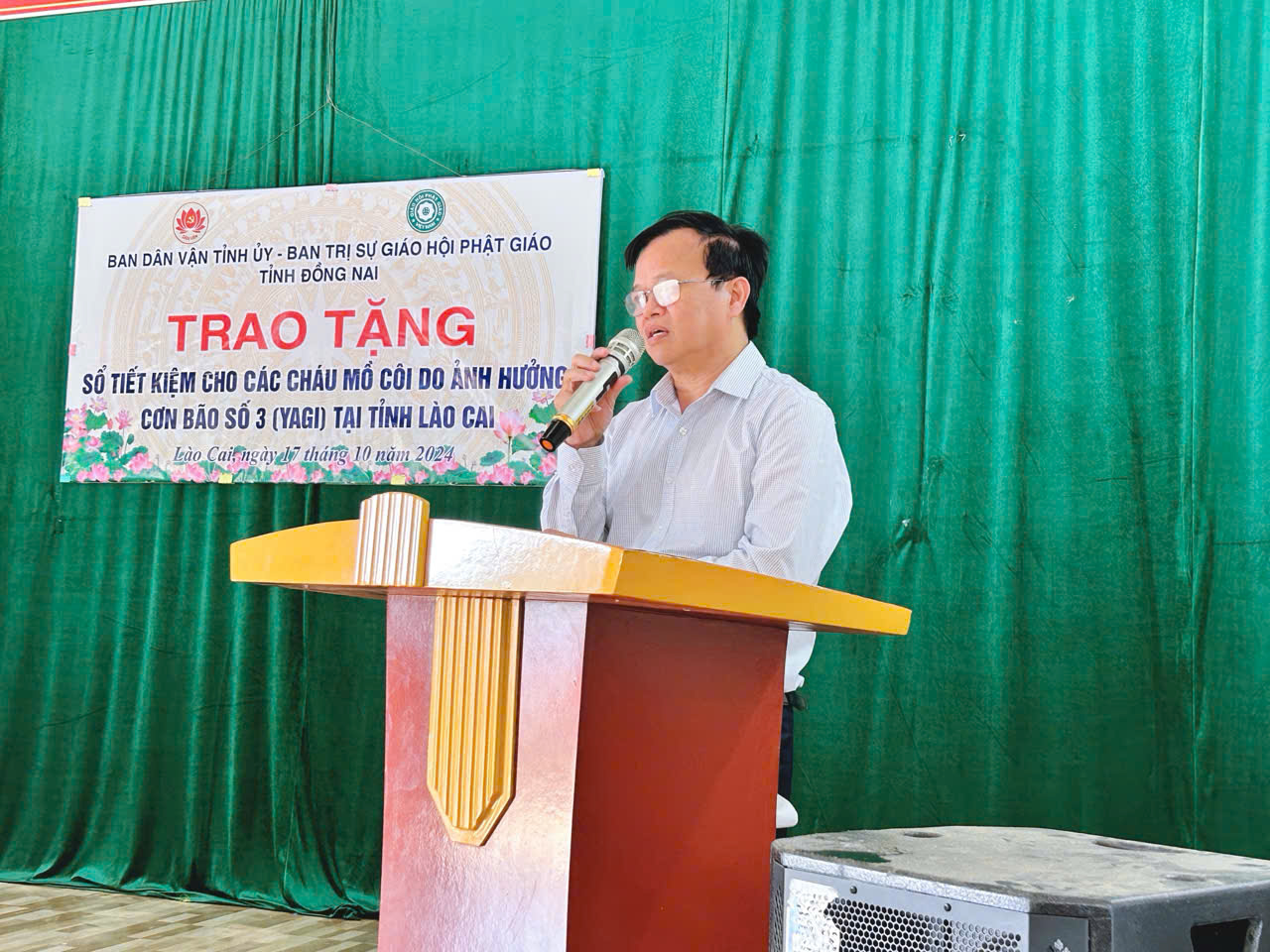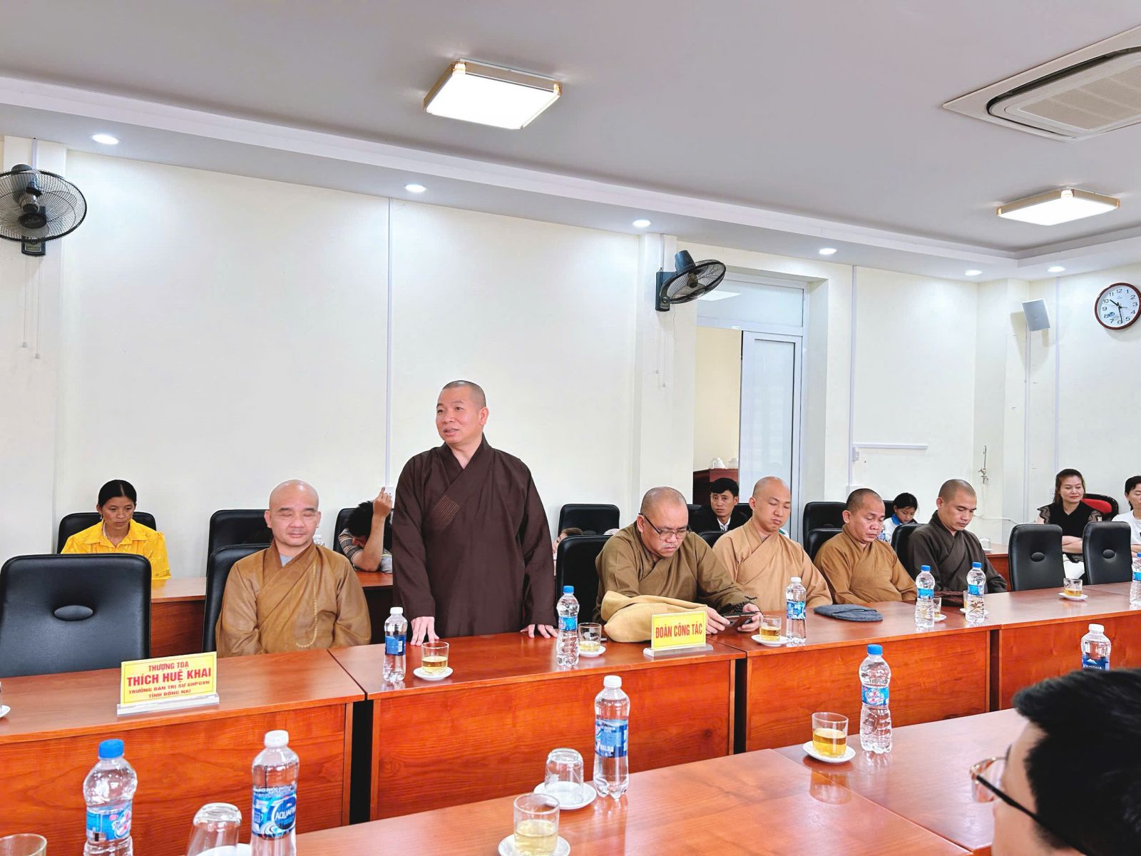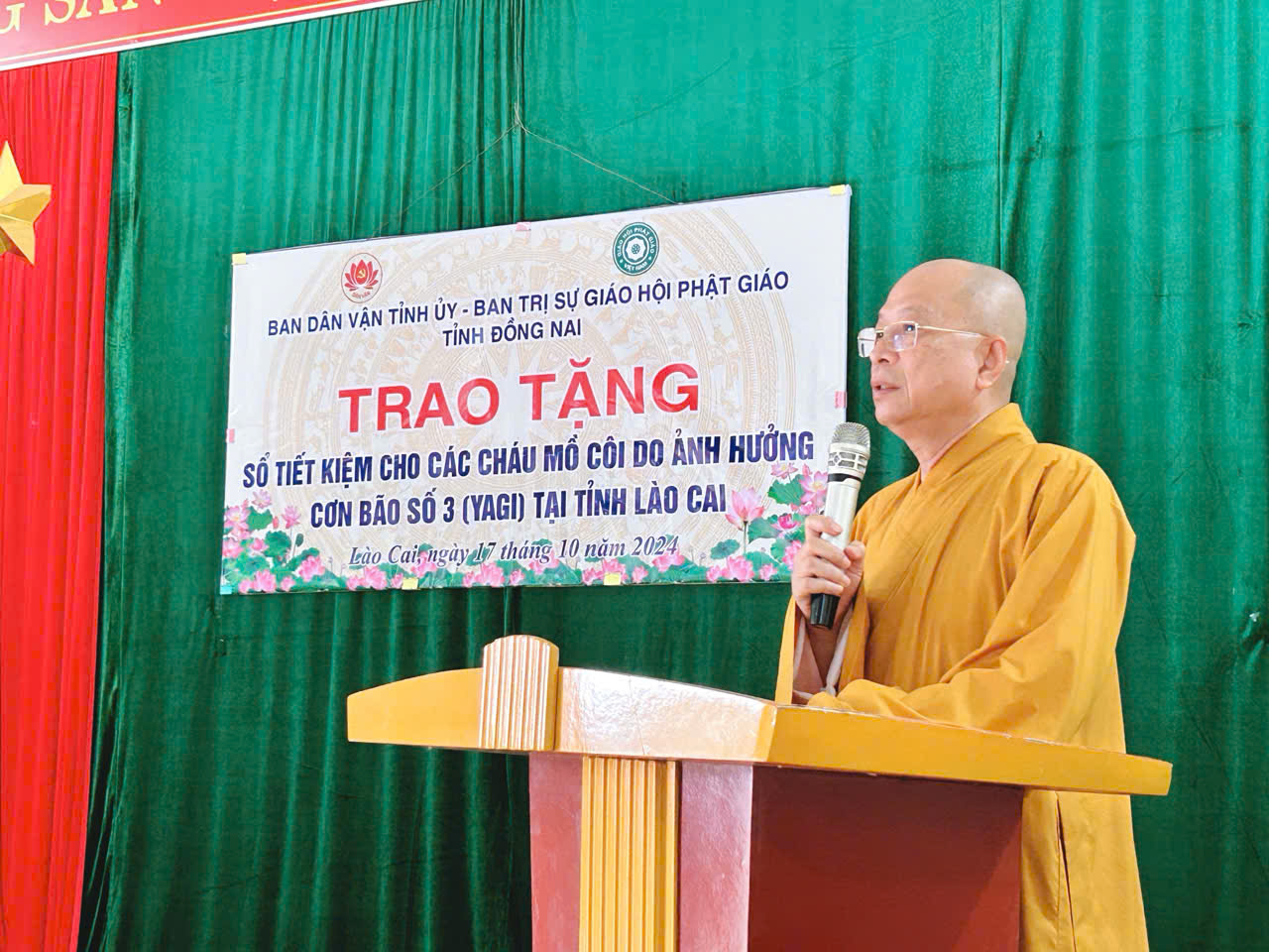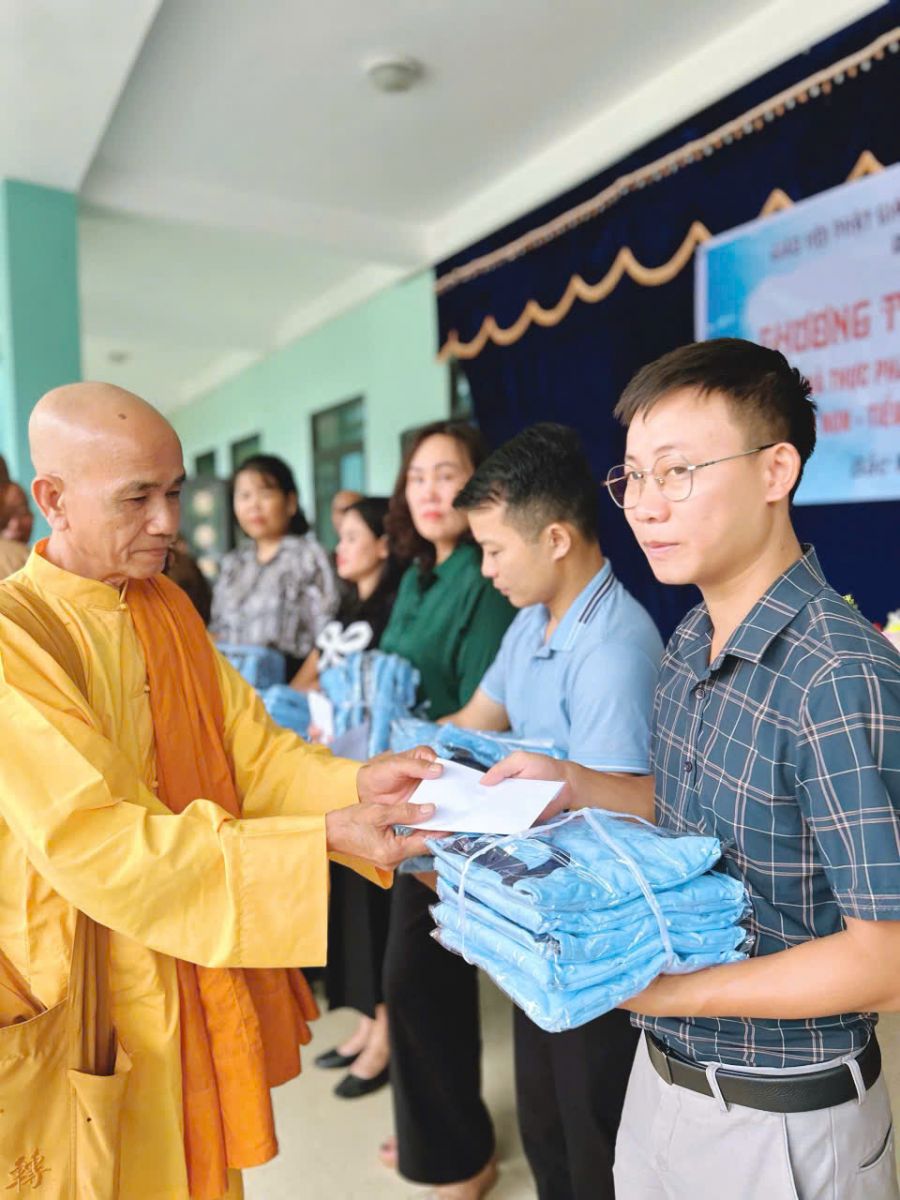Thành phần đoàn có Thượng tọa Thích Huệ Khai, UVTT HĐTS GHPGVN, Trưởng Ban trị sự kiêm Trưởng Ban tăng sự GHPGVN tỉnh Đồng Nai, Trưởng đoàn; Đại đức Thích Chơn Nghĩa, Ủy viên Thường trực, Trưởng Ban Từ thiện Xã hội GHPGVN tỉnh, Phó Thường trực đoàn; Đại đức Thích Thiện Trí, Phó Thư ký kiêm Chánh Văn phòng Ban Trị sự GHPGVN tỉnh, Phó trưởng đoàn; Thượng tọa Thích Quảng Thành, Ủy viên Ban Trị sự GHPGVN tỉnh, Chánh Thư ký Ban Trị sự GHPGVN thành phố Biên Hòa, Phó trưởng đoàn; Đại đức Thích Nguyên Thông, Ủy viên Ban Trị sự GHPGVN tỉnh, Phó ban kiêm Chánh Thư ký Ban Trị sự GHPGVN huyện Long Thành, Phó Ban Thường trực Ban Từ thiện Xã hội GHPGVN tỉnh, Phó trưởng đoàn; Đại đức Thích Trung Điền, Ủy viên Ban Trị sự GHPGVN tỉnh, Phó Thư ký, Trưởng Ban Từ thiện Xã hội GHPGVN huyện Xuân Lộc, Phó Ban Từ thiện Xã hội GHPGVN tỉnh, Phó trưởng đoàn; Đại đức Thích Thiện Huy, Ủy viên Ban Trị sự GHPGVN tỉnh, Phó Ban kiêm Chánh Thư ký Ban Từ thiện Xã hội GHPGVN tỉnh, Thư ký đoàn; Thượng tọa Thích Minh Hạnh, Ủy viên Ban Trị sự GHPGVN tỉnh, Phó ban Trị sự GHPGVN huyện Long Thành, Thành viên; Đại đức Thích Huệ Hạnh, Chánh Thư ký Ban Trị sự GHPGVN huyện Định Quán, Thành viên; Đại đức Thích Thiện Bửu, Ủy viên dự khuyết Ban Trị sự GHPGVN tỉnh Đồng Nai, Phó Thư ký Ban từ thiện Xã hội GHPGVN tỉnh Đồng Nai, Thành viên; Sc. Tn Liên Hoàng, Nhân viên VP BTS, Phụ trách hình ảnh của đoàn.