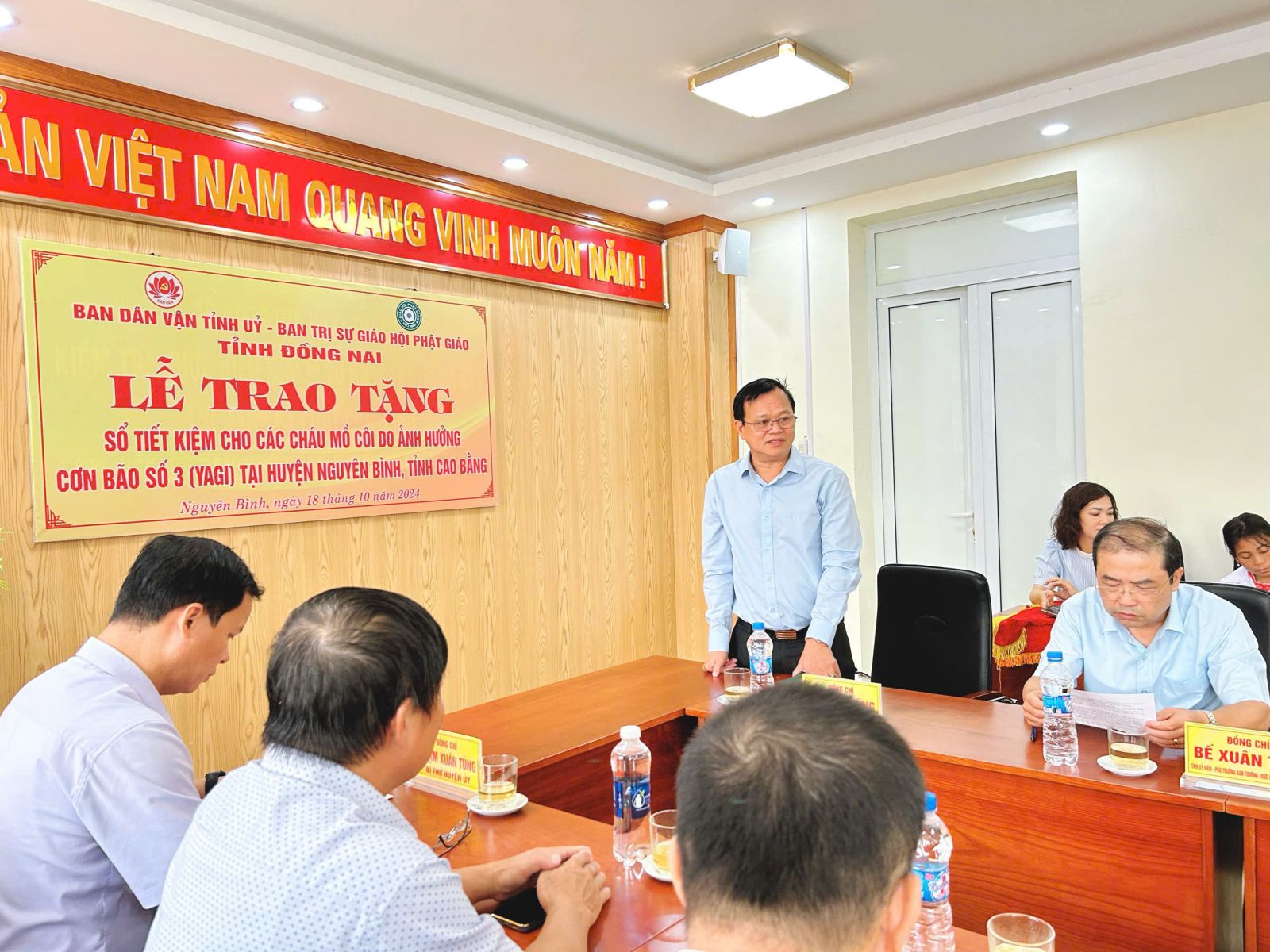 Sáng 18/10/2014 Đoàn BTS GHPGVN tỉnh trao tặng tại huyện Nguyên Bình, tỉnh Cao Bằng 31 sổ tiết kiệm, (09 sổ tiết kiệm đối với các cháu (mồ côi Cha Mẹ) mỗi sổ tiết kiệm trị giá 20 triệu đồng; 22 đối với các cháu (mồ côi Cha hoặc mồ côi Mẹ) sổ tiết kiệm trị giá 15 triệu đồng), tặng thêm các cháu 6 triệu tiền mặt, tổng số tiền là 511.000.000đ.