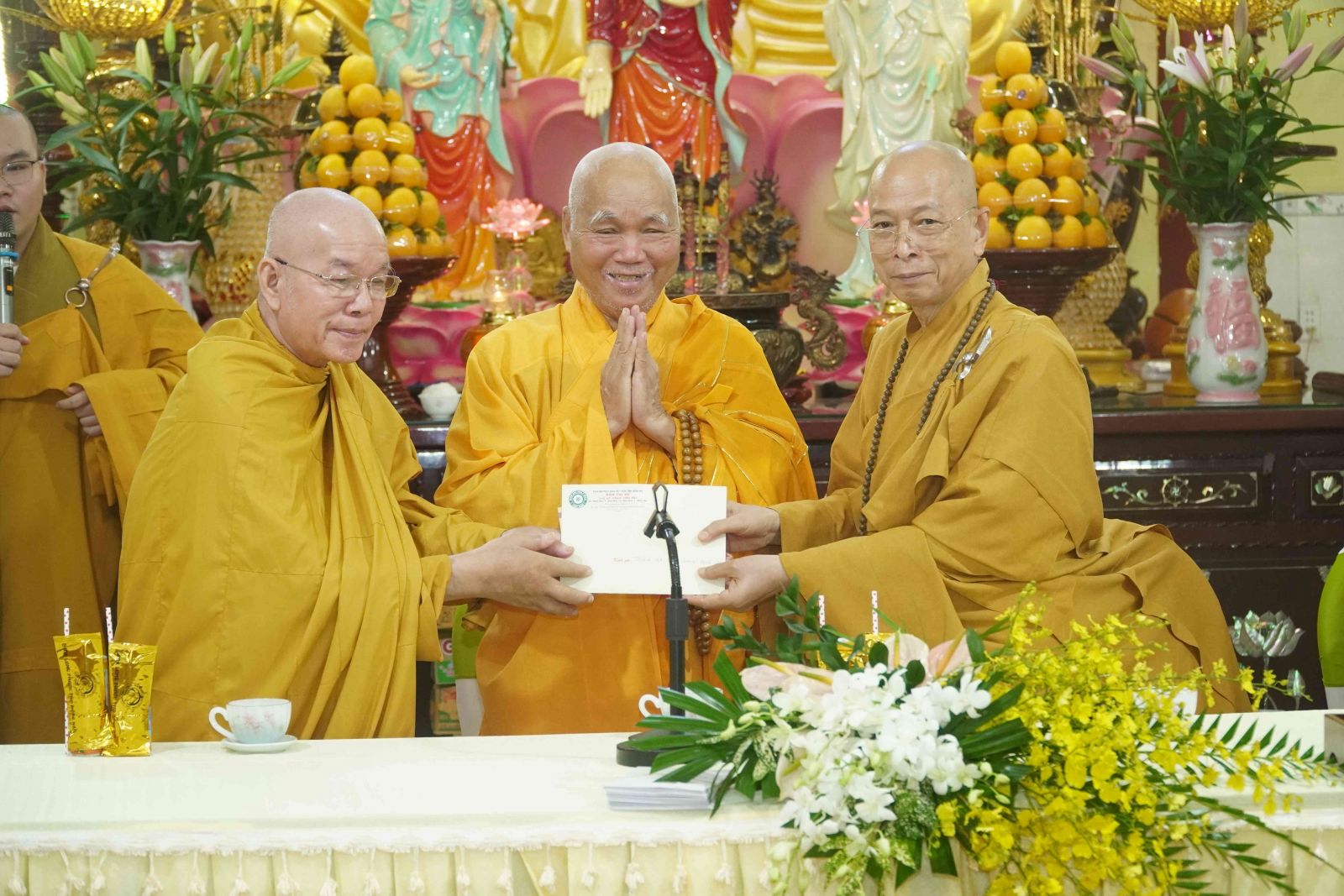 Đoàn lãnh đạo Ban Trị sự GHPGVN dưới sự Chứng minh của HT. Thích Thiện Đạo – Thành viên HĐCM GHPGVN, Chứng minh Ban Trị sự GHPGVN tỉnh Đồng Nai làm trưởng đoàn; TT. Thích Huệ Khai - Ủy viên Thường trực HĐTS, Trưởng Ban Trị sự, Trưởng ban Tăng Sự GHPGVN tỉnh Đồng Nai phó đoàn, đi cùng đoàn có HT. Thích Tâm Minh – Phó Ban Trị sự GHPGVN tỉnh; TT. Thích Huệ Sanh - Ủy viên HĐTS, Phó Ban Trị sự, Trưởng ban Hoằng Pháp GHPGVN tỉnh; TT. Thích Đạo Huy – Phó Ban kiêm Chánh Thư ký Ban Trị sự GHPGVN tỉnh; TT. Thích Minh Trì – Phó Ban Trị sự tỉnh; Trưởng Ban Trị sự GHPGVN huyện Trảng Bom; TT. Thích Thiện Pháp – Phó Ban Trị sự tỉnh, Trưởng ban Trị sự GHPGVN huyện Nhơn Trạch; TT. Thích Huệ Nghiệp – Phó Ban Trị sự, Trưởng Ban Pháp chế GHPGVN tỉnh; ĐĐ. Thích Đạt ma Quang Tuệ - Ủy viên HĐTS, Phó Ban Trị sự, Trưởng ban Giáo dục Phật giáo tỉnh; TT. Thích Quảng Trí – Phó Ban Trị sự, Trưởng ban Nghi lễ GHPGVN tỉnh; NS. TN Diệu Trí - Ủy viên Dự khuyết HĐTS, Phó Ban Trị sự, Trưởng ban Kinh tế Tài chánh GHPGVN tỉnh; TT. Thích Quảng Ảnh - Ủy viên Thường trực Ban Trị sự tỉnh; ĐĐ. Thích Chơn Nghĩa - Ủy viên Thường trực Ban Trị sự, Trưởng ban Từ thiện xã hội GHPGVN tỉnh; ĐĐ. Thích Phước Chơn - Ủy viên Thường trực Ban Trị sự, Phó Văn phòng Ban Trị sự GHPGVN tỉnh; NT. TN Xuân Liên - Ủy viên Thủ quỹ Ban Trị sự GHPGVN tỉnh; NS. TN Huệ Hiếu - Ủy viên Thường trực Ban Trị sự, Phó Trưởng Phân ban Ni giới GHPGVN tỉnh; ĐĐ. Thích Đạt ma Toàn Hạnh - Ủy viên Thường trực Ban Trị sự tỉnh; ĐĐ. Thích Huệ Thới - Ủy viên Ban Trị sự; Cùng toàn thể Chư tôn đức Tăng Ni thường trực Ban Trị sự, quý thiện nam tín nữ Phật tử phát tâm hộ trì tam bảo tháp tùng cùng đoàn.