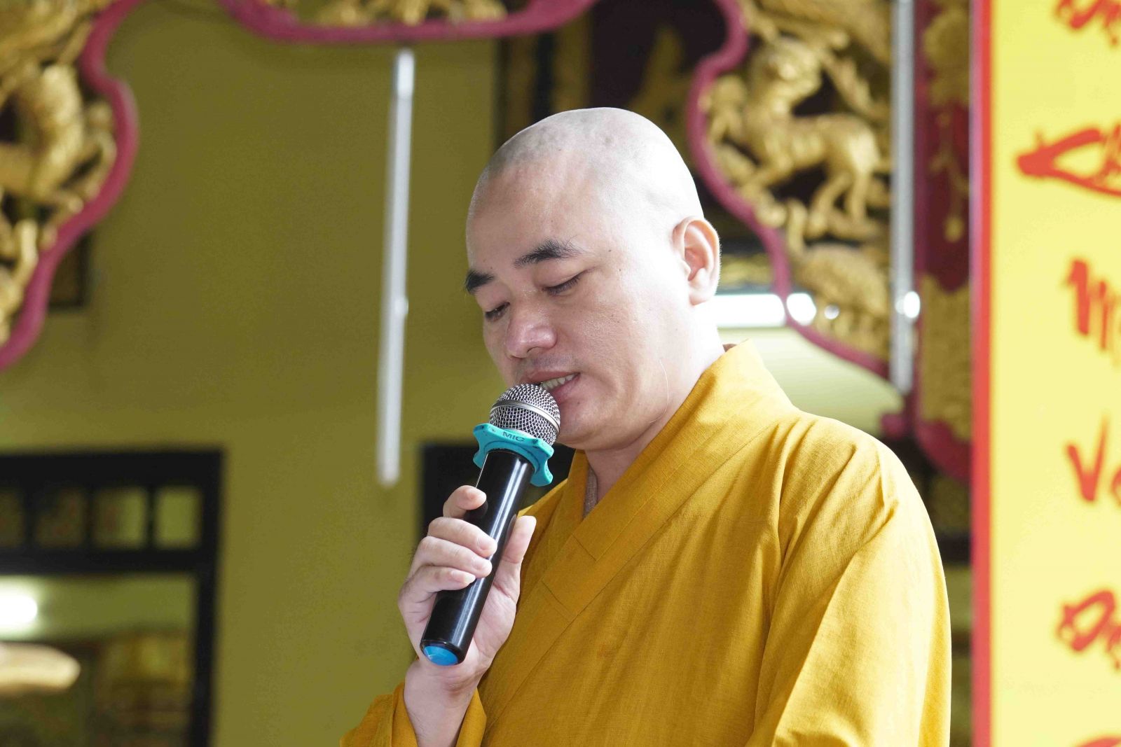 Tại Hạ trường huyện Cẩm Mỹ, ĐĐ. Thích Lạc Phong đã thay mặt ban Chức sự Hạ trường báo cáo công tác tổ chức An cư Kiết hạ tại huyện.