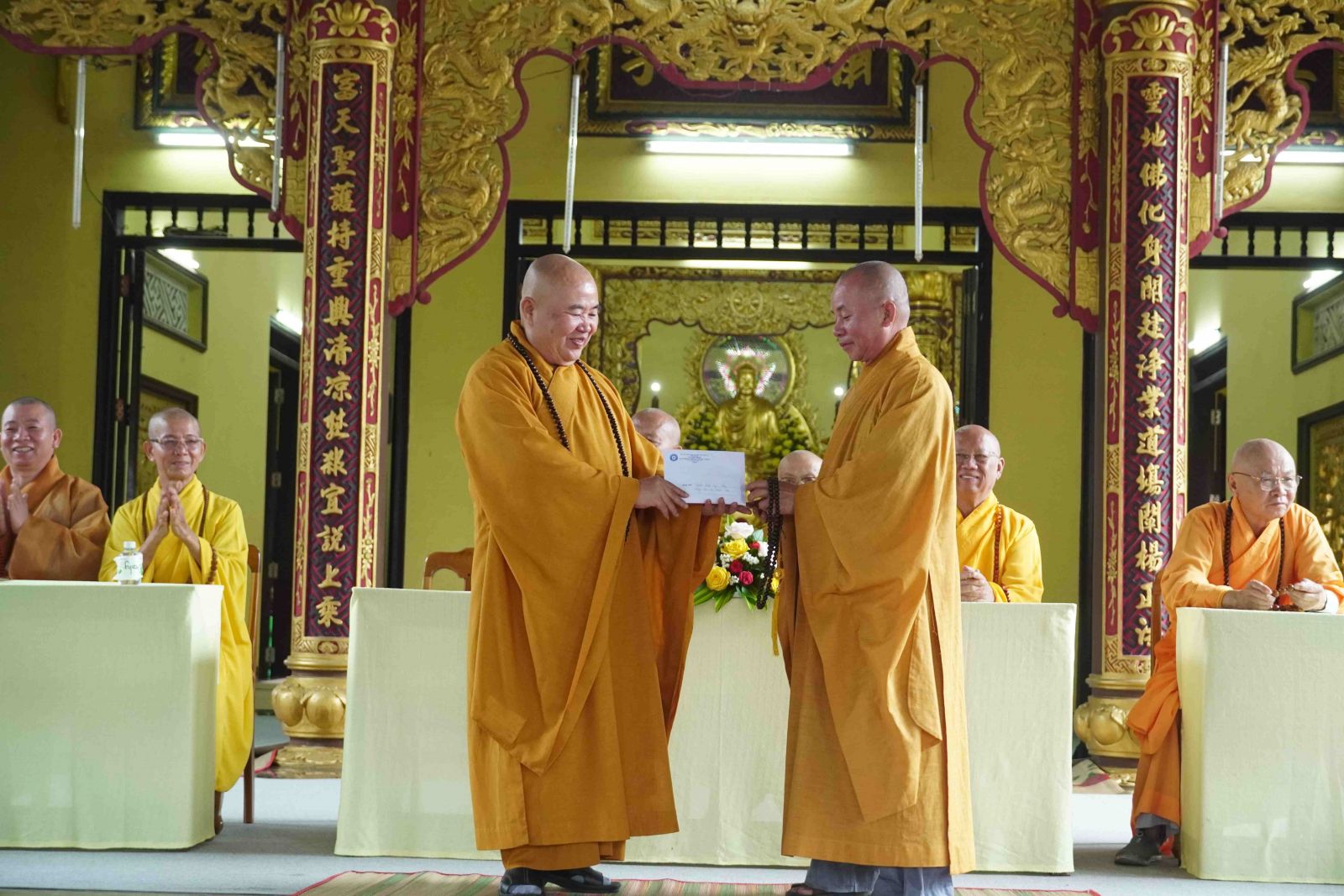 Tại buổi thăm và cúng dường các Hạ trường, HT. Thích Tâm Minh – Phó Ban Trị sự GHPGVN tỉnh đã trao lễ phẩm cúng dường Ban Chức sự Hạ trường và chư hành giả An cư, bày tỏ sự quan tâm của Ban Trị sự Phật giáo tỉnh đối với Tăng Ni hành giả An cư trong toàn tỉnh Đồng Nai.