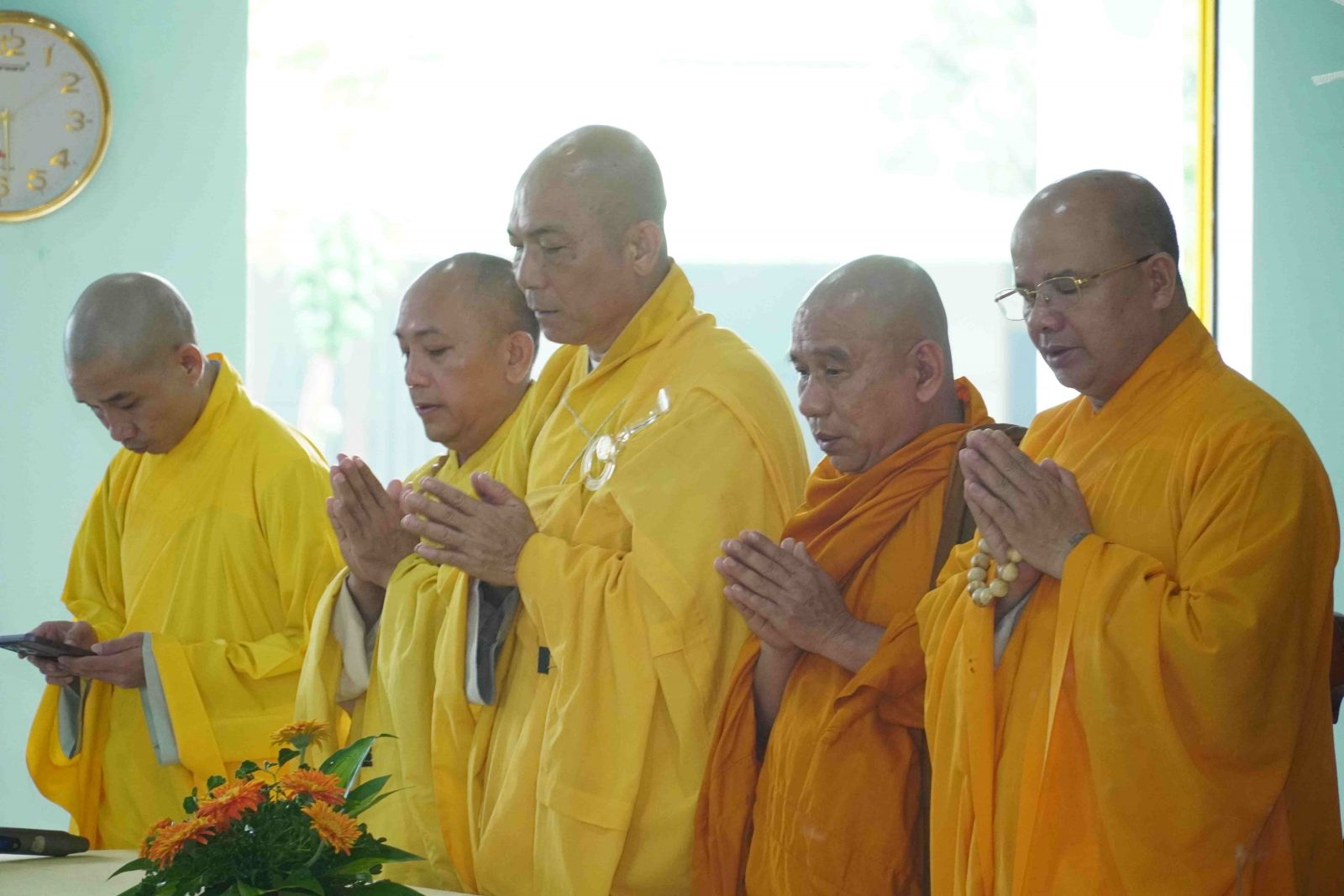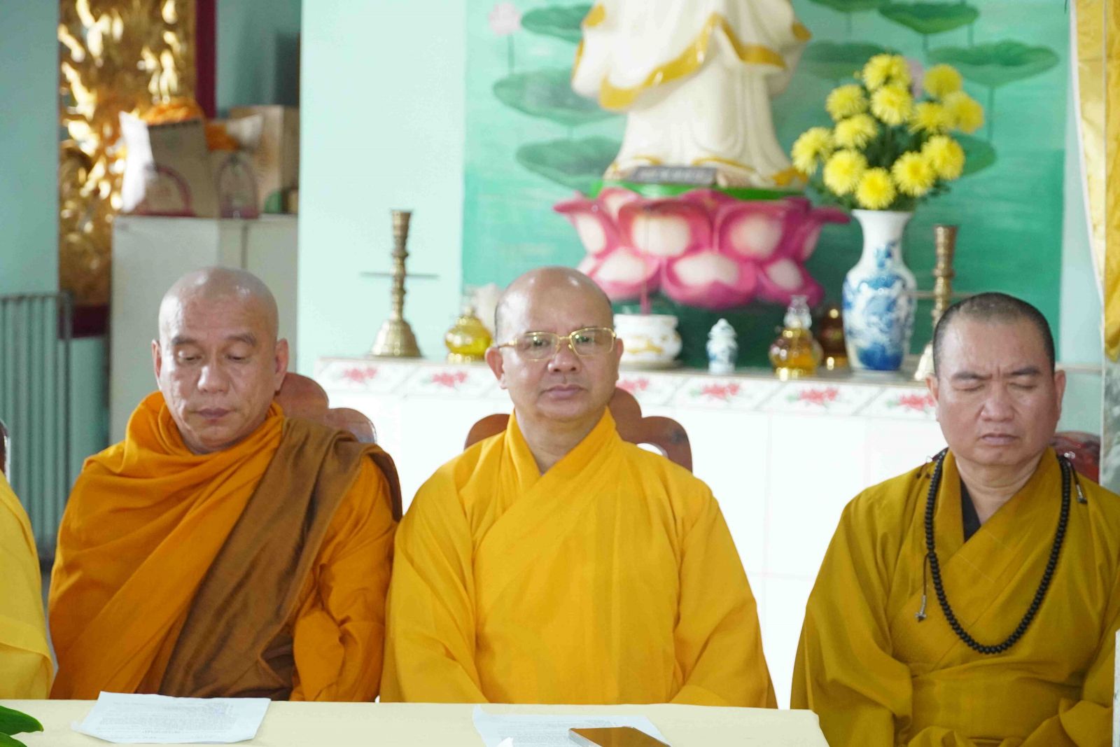 Đoàn đến thăm có HT. Thích Huệ Tâm – Chứng minh Ban Trị sự GHPGVN tỉnh; HT. Thích Tâm Minh – Phó Ban Trị sự GHPGVN tỉnh, Trưởng đoàn; TT. Thích Đạo Huy – Phó ban kiêm Chánh Thư ký Ban Trị sự GHPGVN tỉnh; ĐĐ. Thích Thiện Trí – Phó Thư ký, Chánh Văn phòng Ban Trị sự GHPGVN tỉnh; NS. Thích nữ Huệ Hiếu - Ủy viên Thường trực Ban Trị sự tỉnh, Phó Trưởng Phân ban Ni giới GHPGVN tỉnh; ĐĐ. Thích Huệ Thới – Phó Chánh Văn phòng Ban Trị sự GHPGVN tỉnh; ĐĐ. Thích Chơn Thịnh – Phó Trưởng ban Thường trực ban Thông tin Truyền thông GHPGVN tỉnh; cùng chư Tôn đức trong Ban Trị sự GHPGVN tỉnh.
