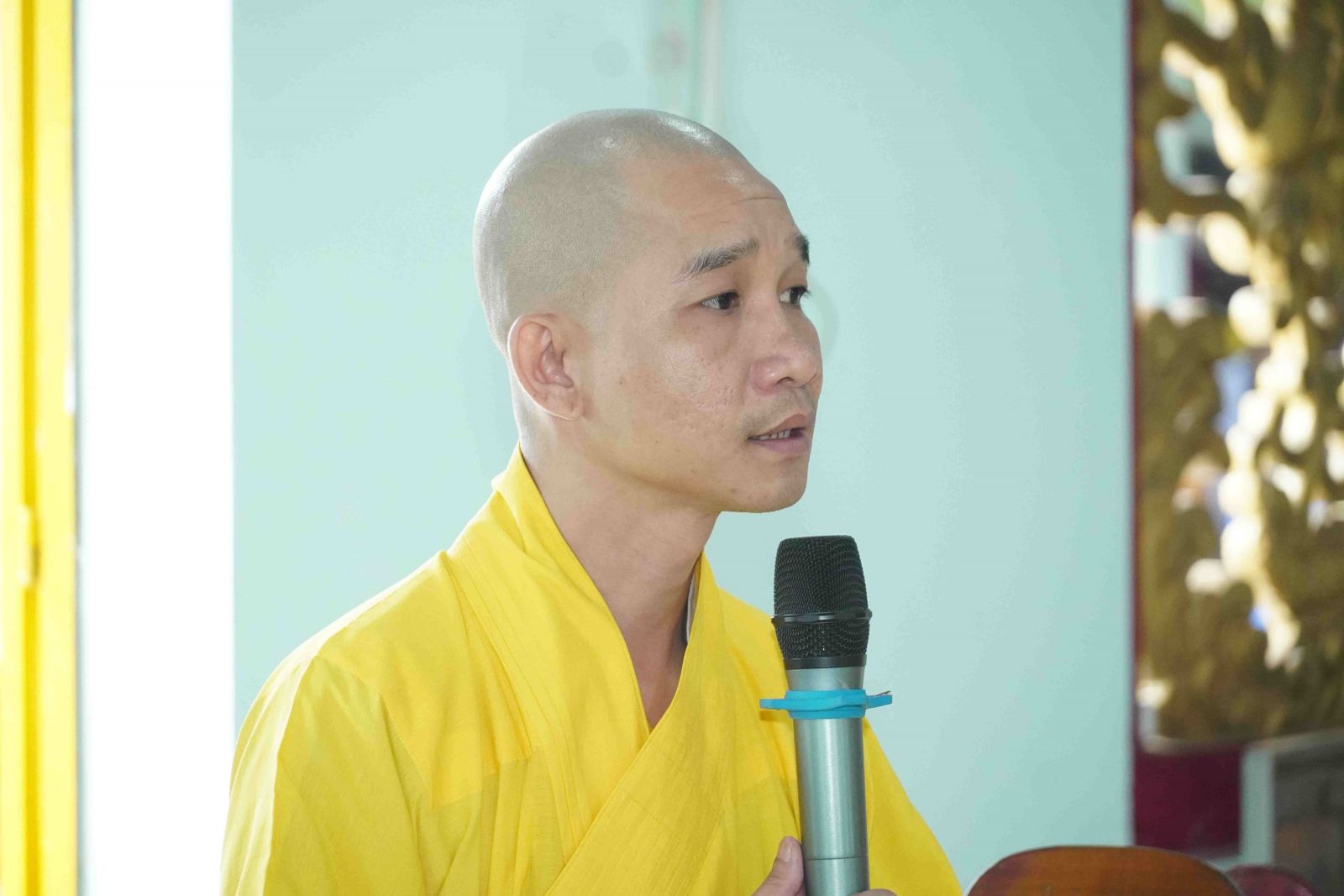 Đến thăm và cúng dường Hạ trường huyện Xuân Lộc, Ban Trị sự GHPGVN tỉnh đã lắng nghe ĐĐ. Thích An Quang đại diện Ban Chức sự Hạ trường báo cáo công tác tổ chức An cư Kiết hạ của Ban Trị sự huyện Xuân Lộc.