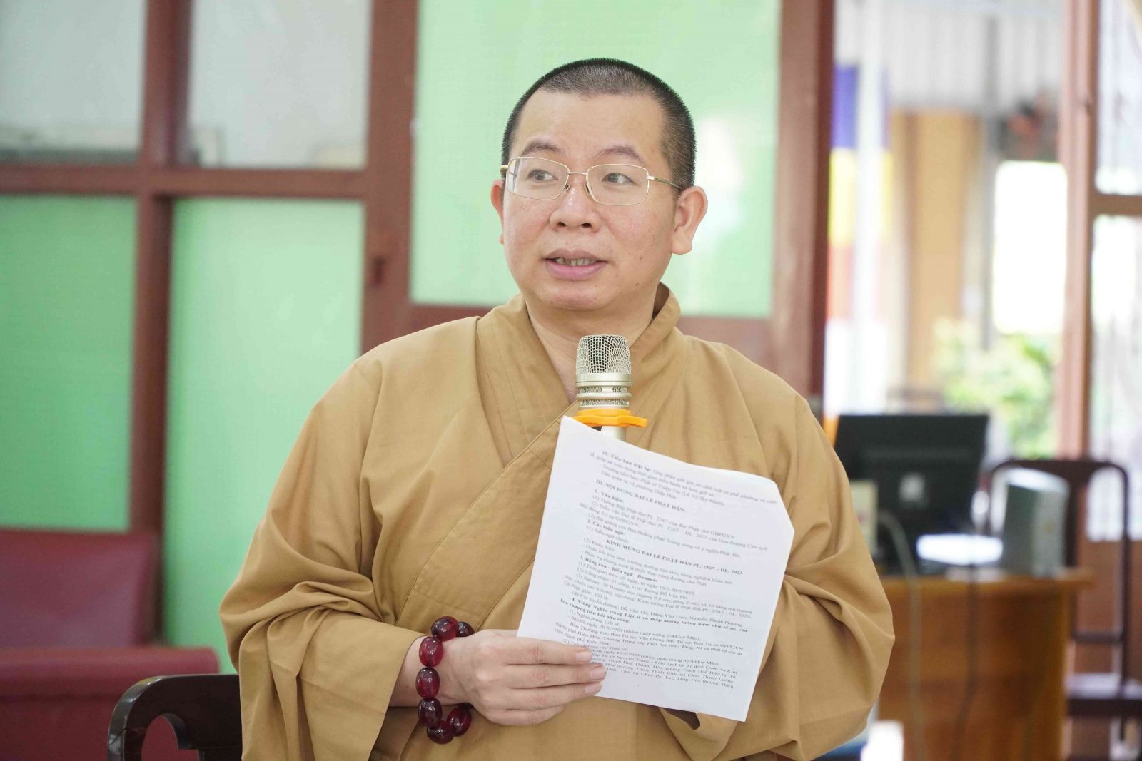 Tại phiên họp, ĐĐ. Thích Thiện Trí – Phó thư ký, Chánh văn phòng BTS GHPGVN tỉnh đã đại diện ban Thư ký báo cáo tóm tắt về công tác tổ chức Đại Lễ Phật Đản – PL. 2567 – DL. 2023 với nhiều nội dung đã được hoàn thiện công tác tổ chức.