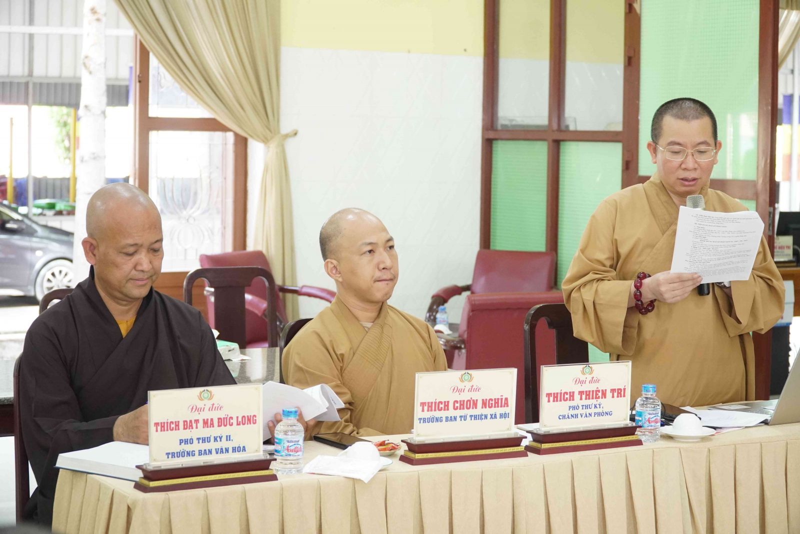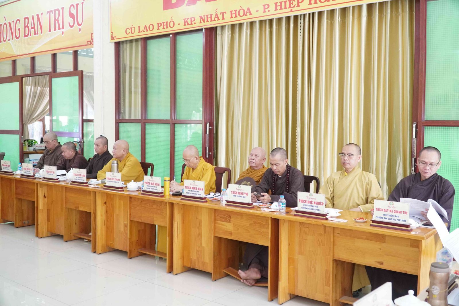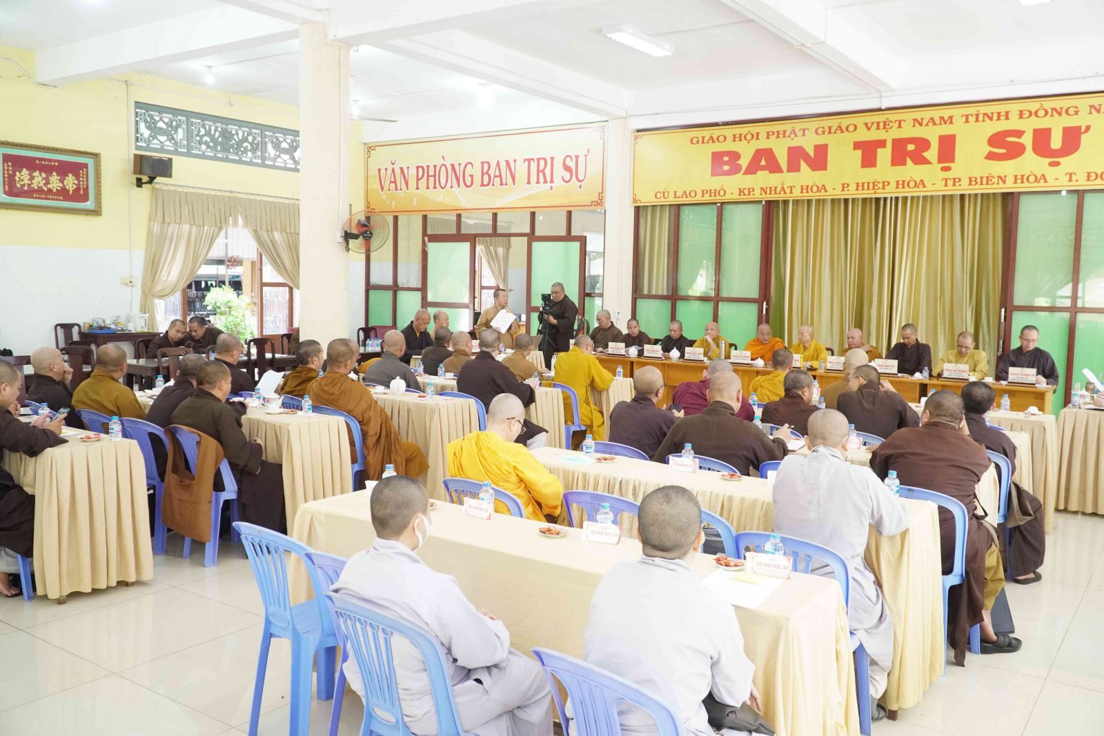 Phiên họp dưới sự chủ trì của TT. Thích Huệ Khai - Ủy viên Thường trực HĐTS, Trưởng Ban Trị sự GHPGVN tỉnh Đồng Nai; HT. Thích Bửu Chánh - Ủy viên Thư ký HĐTS, Phó trưởng ban Thường trực BTS GHPGVN tỉnh Đồng Nai; tham dự phiên họp có HT. Thích Minh Ngạn – Phó Ban Trị sự, Trưởng ban Kiểm soát BTS GHPGVN tỉnh; TT. Thích Huệ Sanh - Ủy viên HĐTS, Phó Ban Trị sự, Trưởng ban Hoằng pháp GHPGVN tỉnh; TT. Thích Minh Trí – Ủy viên Dự khuyết HĐTS, Phó Ban Trị sự GHPGVN tỉnh, Trưởng Ban Trị sự GHPGVN Tp. Biên Hòa; TT. Thích Minh Trì – Phó Ban Trị sự GHPGVN tỉnh, Trưởng Ban Trị sự GHPGVN huyện Trảng Bom; TT. Thích Huệ Nghiệp – Phó Ban Trị sự, Trưởng ban Pháp chế GHPGVN tỉnh; TT. Thích Đạo Huy – Phó ban kiêm Chánh thư ký BTS GHPGVN tỉnh; TT. Thích Đạ ma Quang Tuệ - Ủy viên HĐTS, Phó Ban Trị sự, Trưởng ban Giáo dục Phật giáo tỉnh; TT. Thích Quảng Trí – Phó Ban Trị sự, Trưởng ban Nghi lễ GHPGVN tỉnh; cùng chư tôn đức thường trực Ban Trị sự GHPGVN Tp. Biên Hòa, Tp. Long Khánh và 9 Huyện.