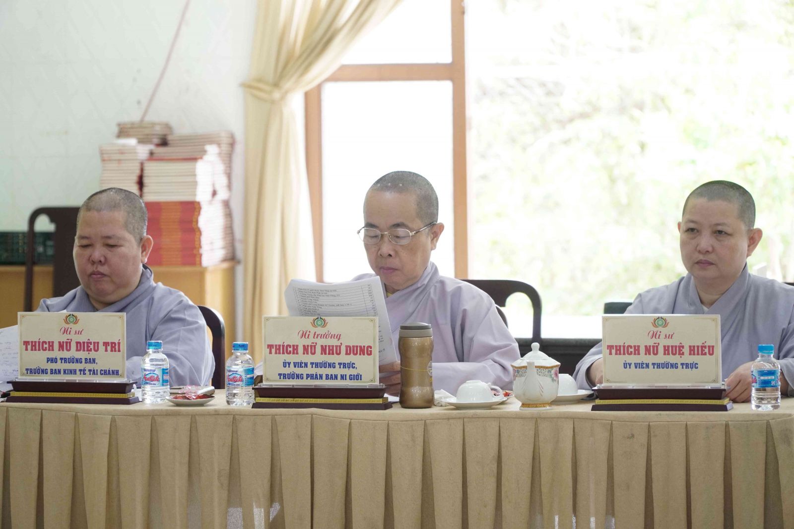 Về chư tôn đức Ni có NS. Thích nữ Diệu Trí – Ủy viên Dự khuyết HĐTS, Phó Ban Trị sự, Trưởng ban Kinh tế Tài chánh GHPGVN tỉnh; NT. Thích nữ Như Dung – Trưởng Phân ban Ni giới GHPGVN tỉnh cùng chư tôn đức Ni đồng tham dự phiên họp.