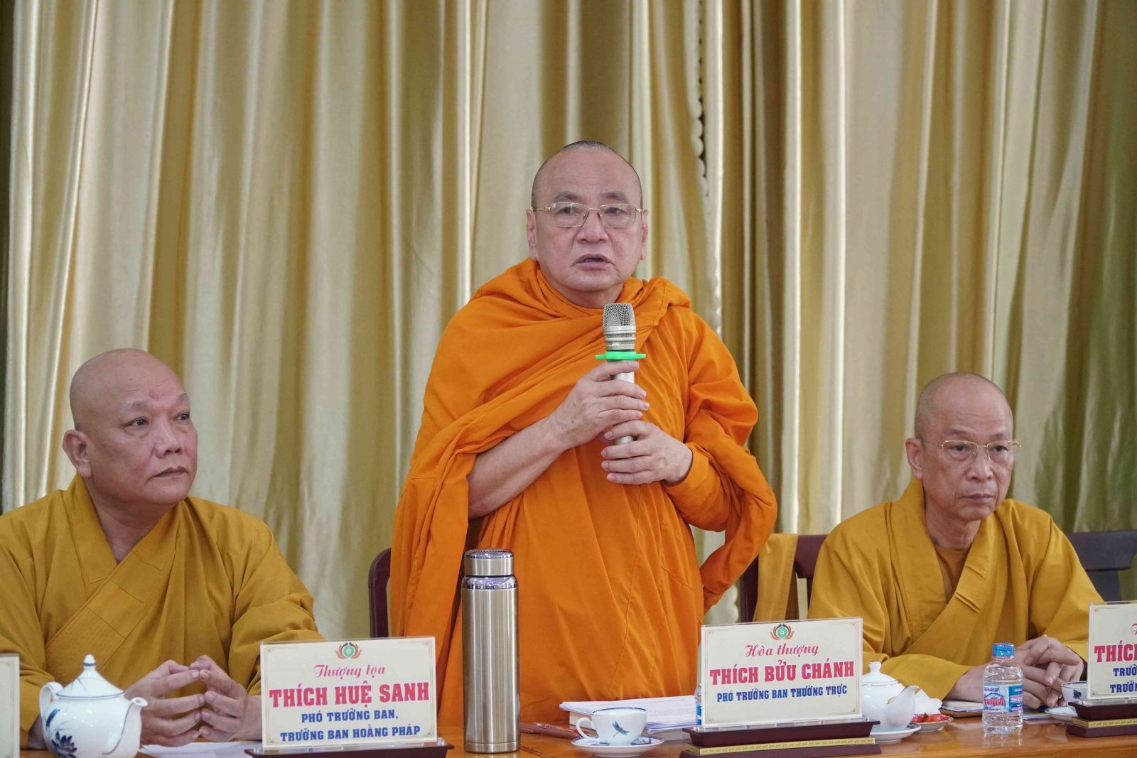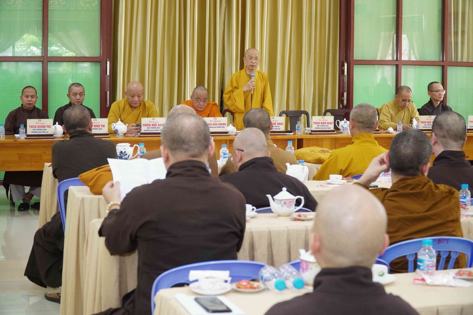 Phiên họp cũng đón nhận một số ý kiến của Chư tôn đức các ban chuyên môn trực thuộc, đề xuất một số phương án về việc kiến tạo lễ đài và kiến thiết xe hoa mừng Phật đản.