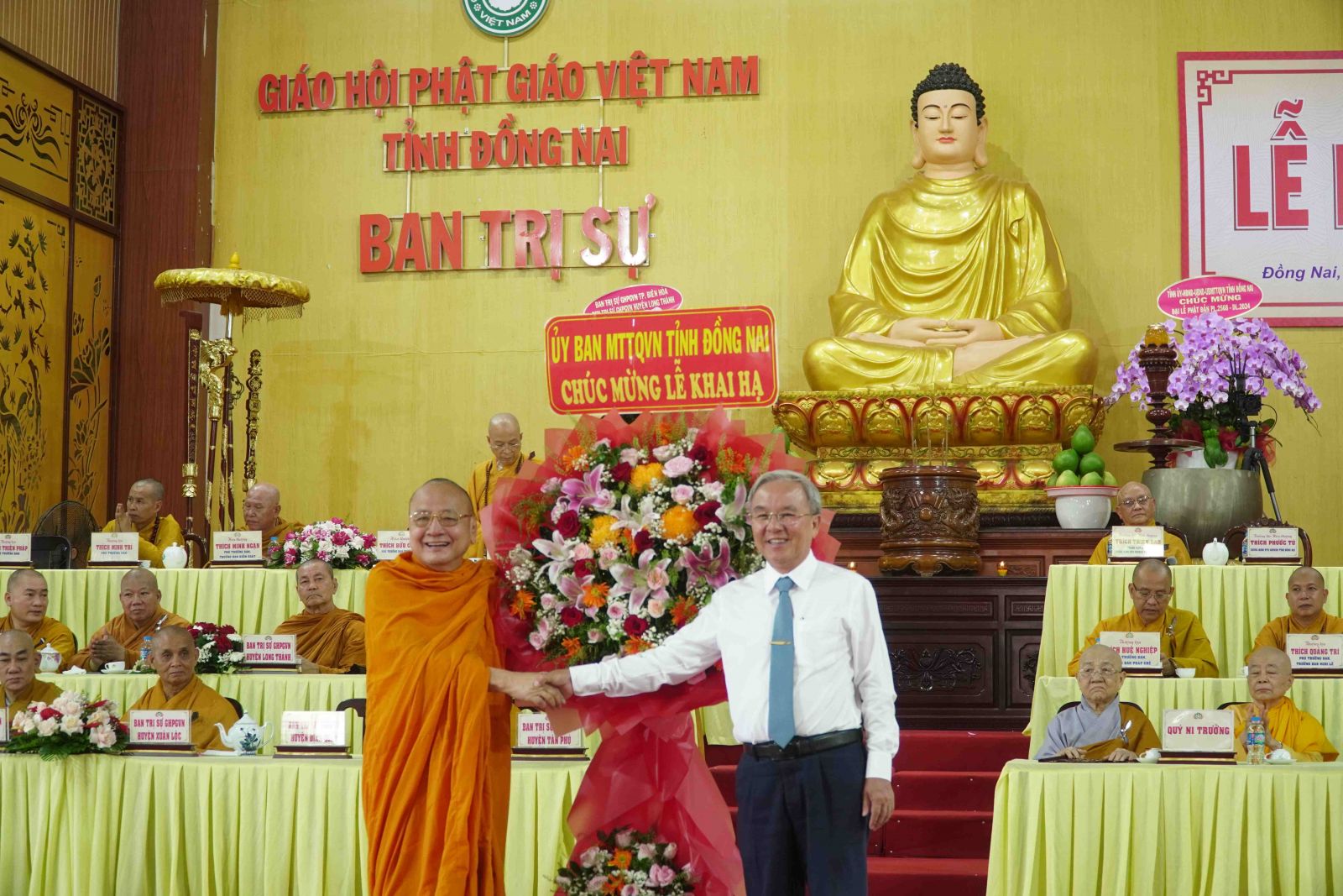 Quang lâm Chứng minh và tham dự có HT. Thích Thiện Đạo – Thành viên HĐCM TƯ, Chứng minh Ban Trị sự GHPGVN tỉnh Đồng Nai; HT. Thích Huệ Tâm – Chứng minh Ban Trị sự GHPGVN tỉnh Đồng Nai; TT. Thích Huệ Khai - Ủy viên Thường trực HĐTS, Trưởng Ban Trị sự, Trưởng ban Tăng sự GHPGVN tỉnh; HT. Thích Bửu Chánh - Ủy viên Thư ký HĐTS, Phó Trưởng ban Thường trực Ban Trị sự GHPGVN tỉnh; HT. Thích Minh Ngạn – Phó Ban Trị sự, Trưởng ban Kiểm soát GHPGVN tỉnh; HT. Thích Tâm Minh – Phó Ban Trị sự GHPGVN tỉnh; TT. Thích Huệ Sanh - Ủy viên HĐTS, Phó Ban Trị sự, Trưởng ban Hoằng pháp GHPGVN tỉnh; TT. Thích Đạo Huy – Phó ban kiêm Chánh Thư ký Ban Trị sự GHPGVN tỉnh; TT. Thích Minh Trí - Ủy viên Dự khuyết HĐTS, Phó Ban Trị sự tỉnh, Trưởng Ban Trị sự GHPGVN Tp. Biên Hòa; TT. Thích Minh Trì – Phó Ban Trị sự tỉnh, Trưởng Ban Trị sự GHPGVN huyện Trảng Bom; TT. Thích Huệ Nghiệp – Phó Ban Trị sự, Trưởng ban Pháp chế GHPGVN tỉnh; TT. Thích Quảng Trí – Phó Ban Trị sự, Trưởng Ban Nghi lễ GHPGVN tỉnh; Đ Đ. Thích Đạt ma Toàn Hạnh – Phó Ban Trị sự GHPGVN tỉnh; TT. Thích Pháp Đăng - Ủy viên Thường trực Ban Trị sự GHPGVN tỉnh; Đ Đ. Thích Thiện Mỹ - Trưởng ban Thông tin Truyền thông GHPGVN tỉnh; Đ Đ. Thích Chơn Nghĩa – Trưởng ban Từ thiện Xã hội GHPGVN tỉnh; TT. Thích Quảng Ảnh - Ủy viên Thường trực Ban Trị sự tỉnh; TT. Thích Huệ Ninh - Ủy viên Thường trực Ban Trị sự tỉnh; Đ Đ. Thích Phước Toàn - Ủy viên Thường trực Ban Trị sự tỉnh.