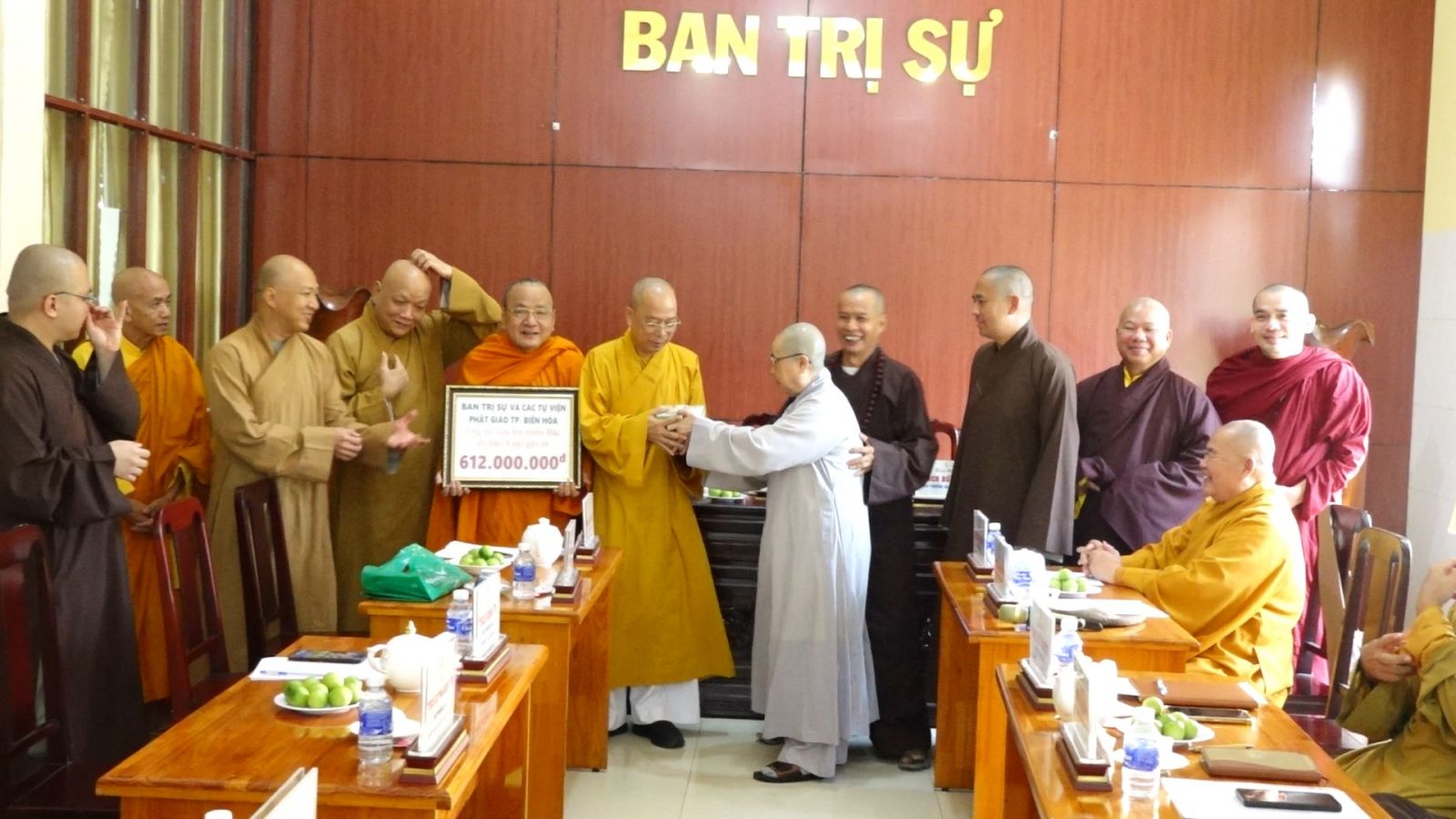 Tại phiên họp lần này, Ban Trị sự GHPGVN tỉnh Đồng Nai cũng đã đón nhận sự phát tâm cúng dường của Ban Trị sự các huyện, thành phố, các ban ngành trực thuộc về việc hỗ trợ các tỉnh thành Miền Bắc đã ảnh hưởng cơn bão Yagi trong thời gian qua.
