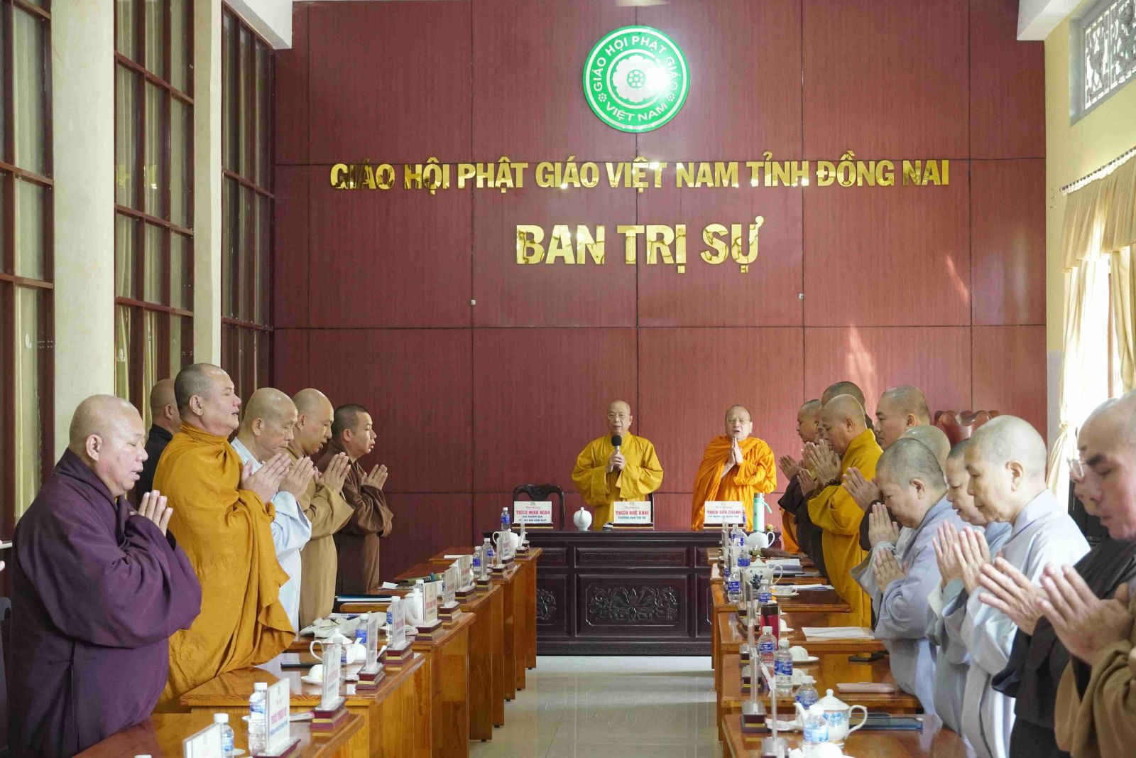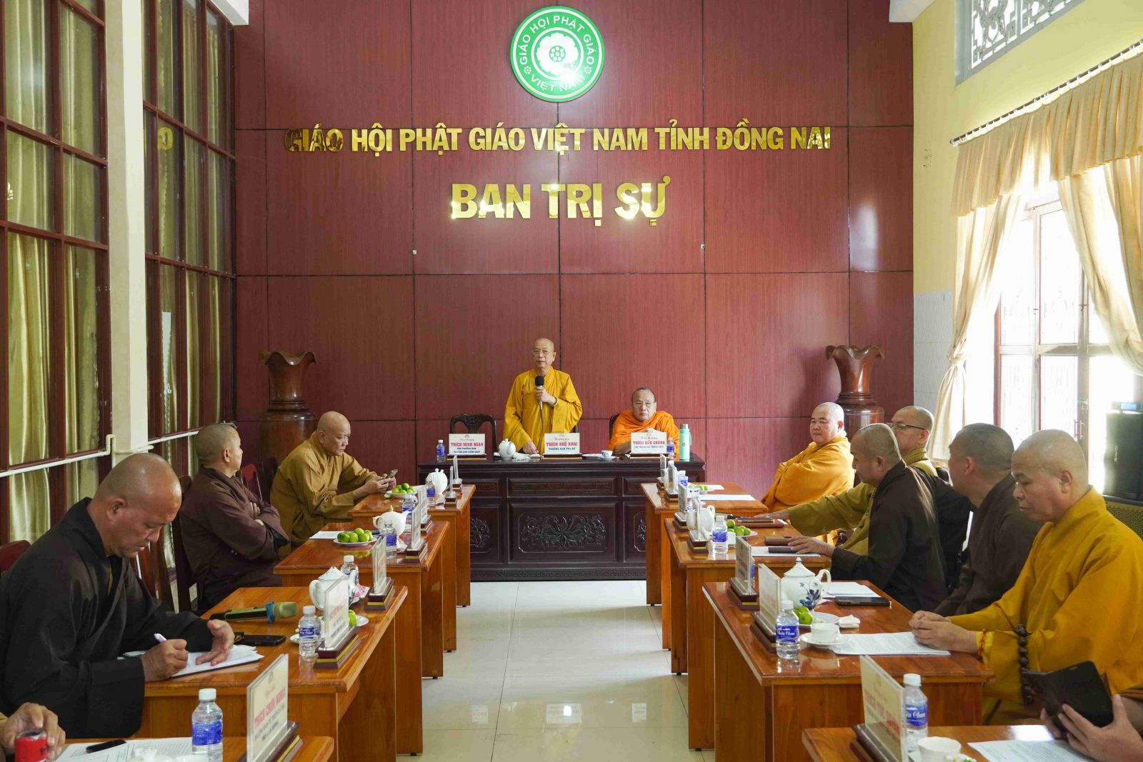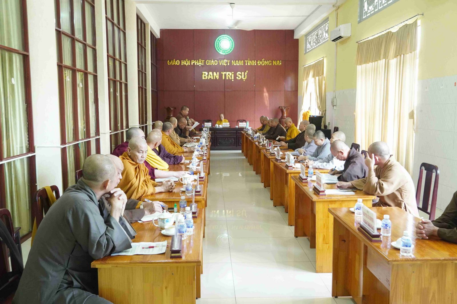 Phiên họp dưới sự chủ trì của TT. Thích Huệ Khai - Ủy viên Thường trực HĐTS, Trưởng Ban Trị sự, Trưởng ban Tăng sự GHPGVN tỉnh Đồng Nai; cùng tham dự phiên họp có HT. Thích Bửu Chánh - Ủy viên Thư ký HĐTS, Phó Trưởng ban Thường trực Ban Trị sự GHPGVN tỉnh; TT. Thích Huệ Sanh – Phó Ban Trị sự, Trưởng ban Hoằng pháp GHPGVN tỉnh; HT. Thích Tâm Minh – Phó Ban Trị sự GHPGVN tỉnh; TT. Thích Minh Trí - Ủy viên Dự khuyết HĐTS, Phó Ban Trị sự tỉnh, Trưởng Ban Trị sự GHPGVN Tp. Biên Hòa; TT. Thích Huệ Nghiệp – Phó Ban Trị sự, Trưởng ban Pháp chế GHPGVN tỉnh; TT. Thích Minh Trì – Phó Ban Trị sự tỉnh, Trưởng Ban Trị sự GHPGVN huyện Trảng Bom; TT. Thích Quảng Trí – Phó Ban Trị sự, Trưởng ban Nghi lễ GHPGVN tỉnh; ĐĐ. Thích Đạt ma Toàn Hạnh – Phó Ban Trị sự GHPGVN tỉnh; ĐĐ. Thích Thiện Trí – Phó Thư ký kiêm Chánh Văn phòng Ban Trị sự GHPGVN tỉnh; NT. Thích nữ Như Dung – Phó Ban Trị sự, Trưởng Phân ban Ni giới GHPGVN tỉnh; NS. Thích nữ Diệu Trí - Ủy viên Dự khuyết HĐTS, Phó Ban Trị sự, Trưởng ban Kinh tế Tài chánh GHPGVN tỉnh; cùng chư Tôn đức Trưởng phó Ban Trị sự các huyện, thành phố cùng về tham dự.