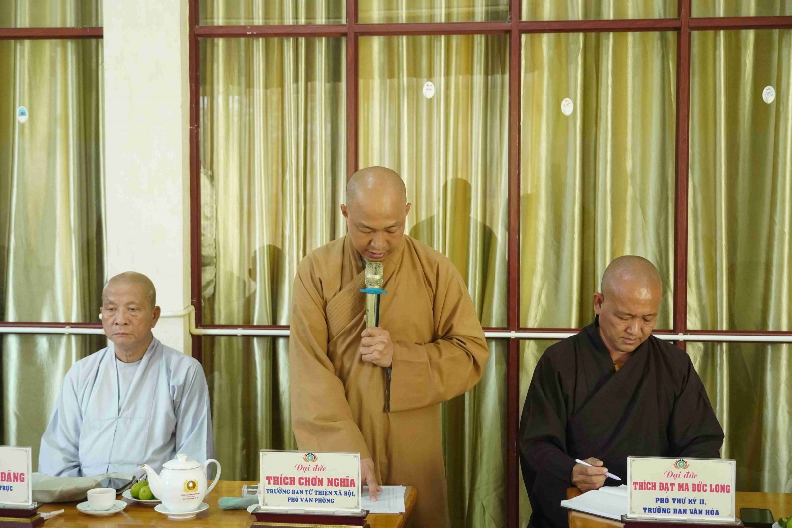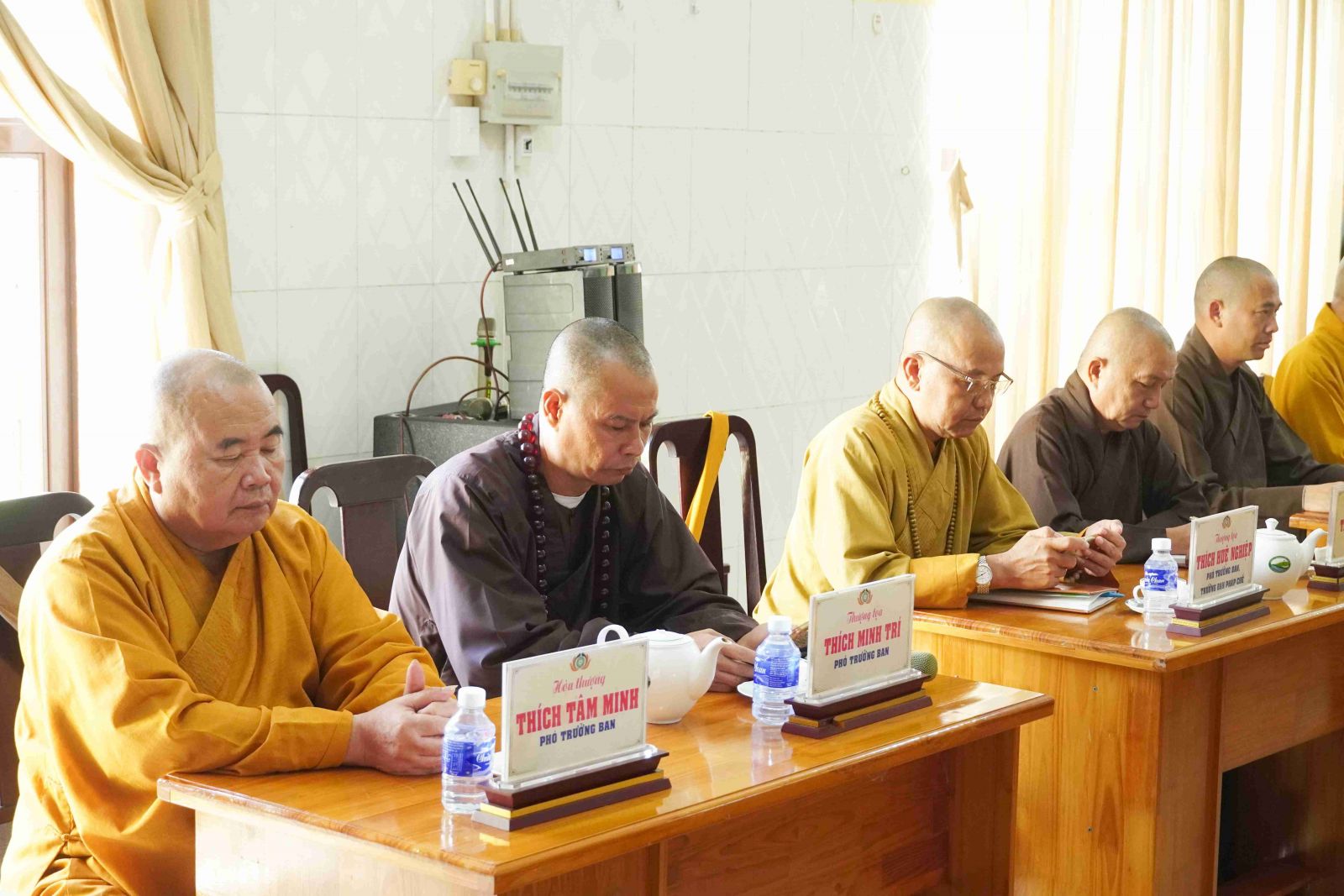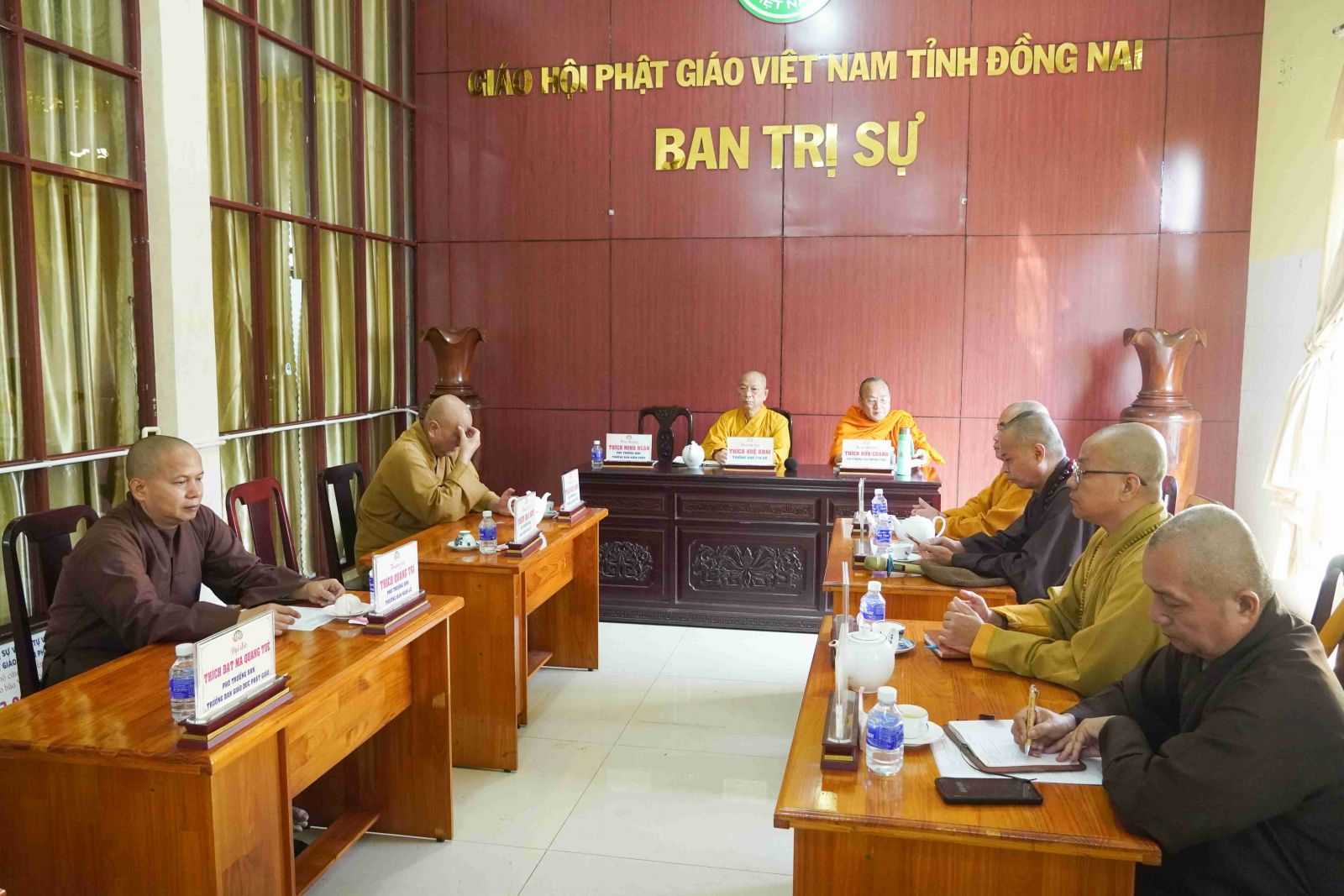 Phiên họp dưới sự chủ trì của TT. Thích Huệ Khai - Ủy viên Thường trực HĐTS, Trưởng Ban Trị sự, Trưởng ban Tăng sự GHPGVN tỉnh Đồng Nai; cùng tham dự phiên họp có HT. Thích Bửu Chánh - Ủy viên Thư ký HĐTS, Phó Trưởng ban Thường trực Ban Trị sự GHPGVN tỉnh; TT. Thích Huệ Sanh – Phó Ban Trị sự, Trưởng ban Hoằng pháp GHPGVN tỉnh; HT. Thích Tâm Minh – Phó Ban Trị sự GHPGVN tỉnh; TT. Thích Minh Trí - Ủy viên Dự khuyết HĐTS, Phó Ban Trị sự tỉnh, Trưởng Ban Trị sự GHPGVN Tp. Biên Hòa; TT. Thích Huệ Nghiệp – Phó Ban Trị sự, Trưởng ban Pháp chế GHPGVN tỉnh; TT. Thích Minh Trì – Phó Ban Trị sự tỉnh, Trưởng Ban Trị sự GHPGVN huyện Trảng Bom; TT. Thích Quảng Trí – Phó Ban Trị sự, Trưởng ban Nghi lễ GHPGVN tỉnh; ĐĐ. Thích Đạt ma Toàn Hạnh – Phó Ban Trị sự GHPGVN tỉnh; ĐĐ. Thích Thiện Trí – Phó Thư ký kiêm Chánh Văn phòng Ban Trị sự GHPGVN tỉnh; NT. Thích nữ Như Dung – Phó Ban Trị sự, Trưởng Phân ban Ni giới GHPGVN tỉnh; NS. Thích nữ Diệu Trí - Ủy viên Dự khuyết HĐTS, Phó Ban Trị sự, Trưởng ban Kinh tế Tài chánh GHPGVN tỉnh; cùng chư Tôn đức Trưởng phó Ban Trị sự các huyện, thành phố cùng về tham dự.