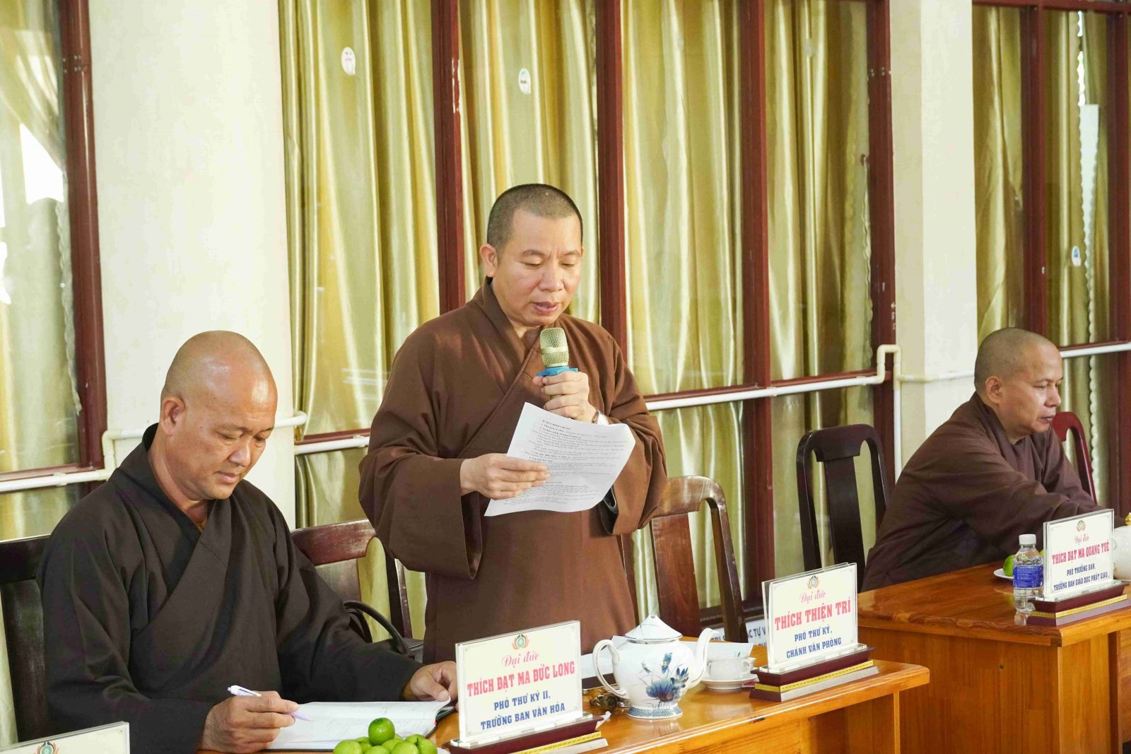 Tại phiên họp, Ban Trị sự GHPGVN tỉnh Đồng Nai đã hướng dẫn cụ thể đối với Ban Trị sự các huyện, thành phố thực hiện tổ chức Hội nghị Sơ kết Phật sự giữa nhiệm kỳ 2021 – 2026.
