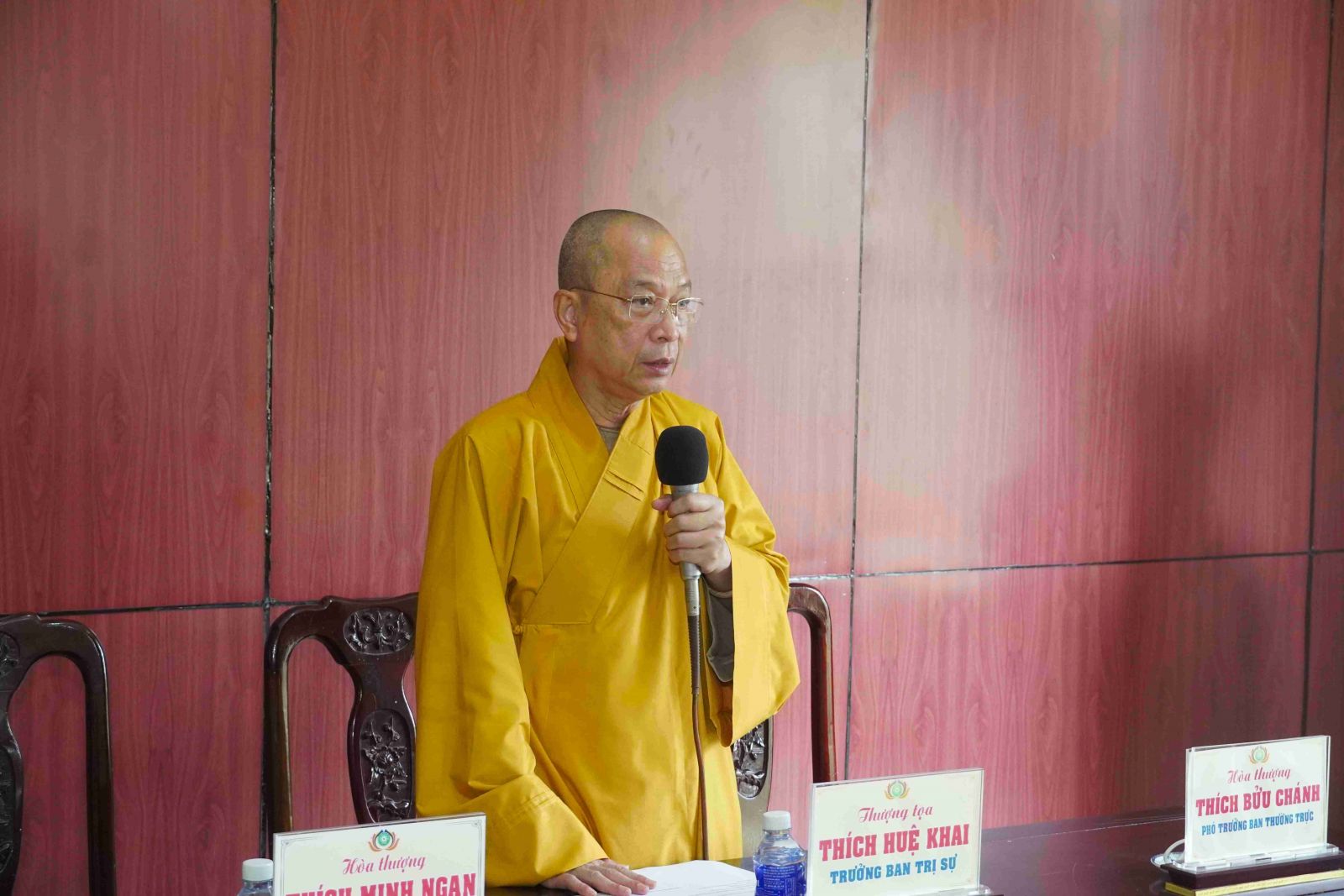 Phát biểu Khai mạc, TT. Thích Huệ Khai đã gửi lời chúc tốt lành đến chư Tôn đức, và rất mong nhận được sự đóng góp ý kiến của chư Tôn đức cho các Phật sự sắp tới được hoàn thành tốt đẹp.