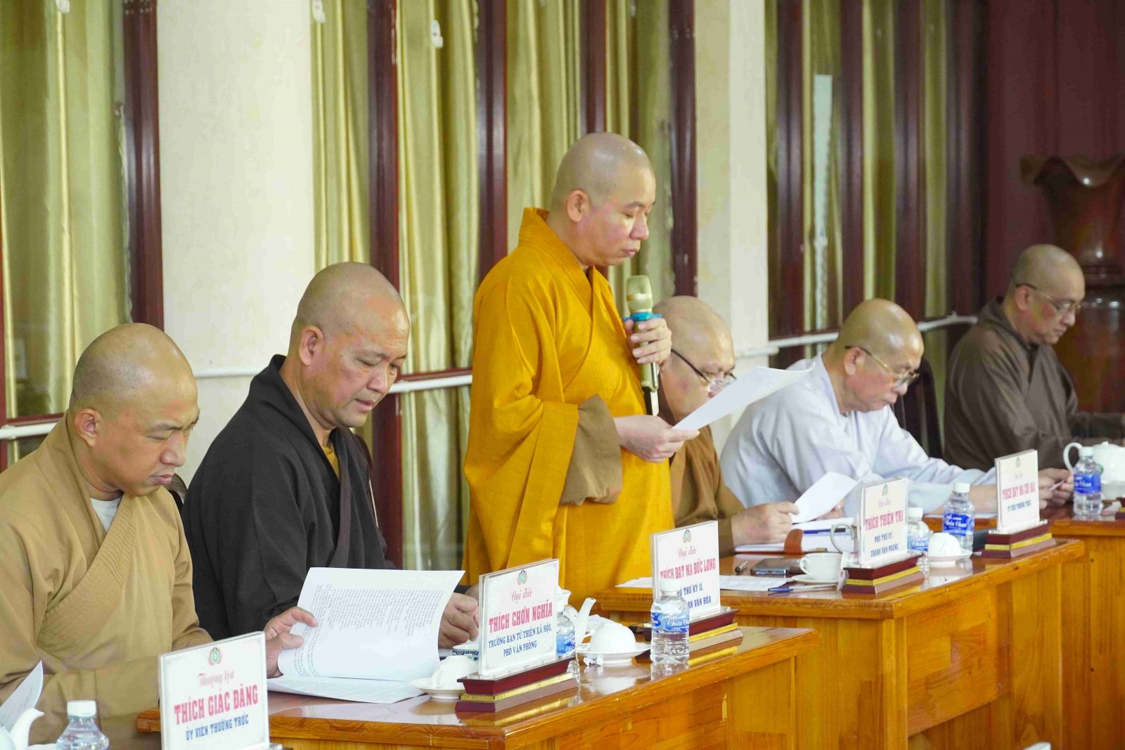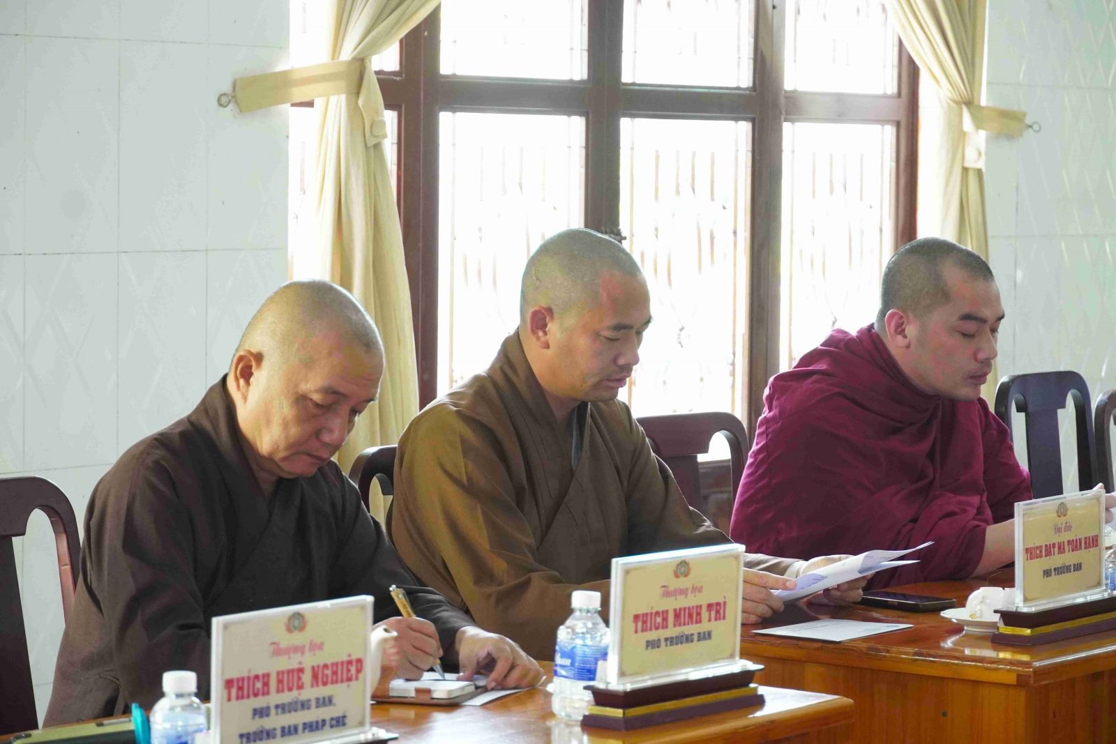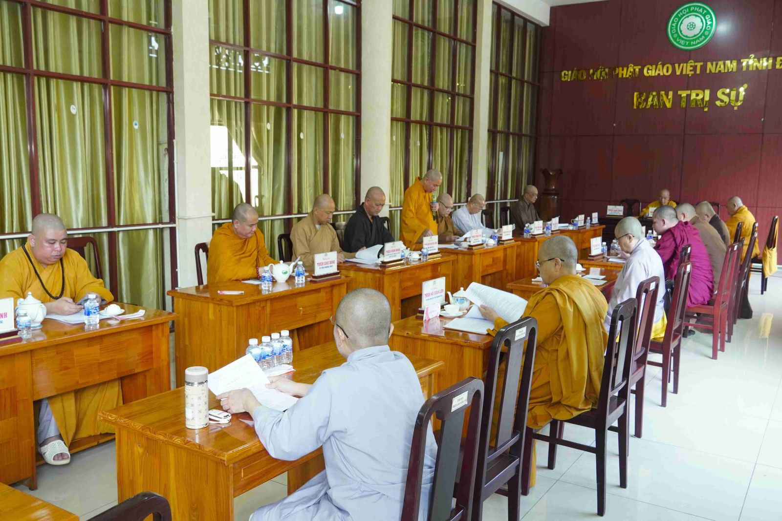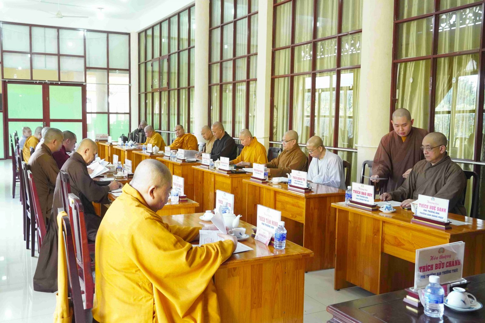 Chủ toạ phiên họp có TT. Thích Huệ Khai - Uỷ viên Thường trực HĐTS, Trưởng ban Ban Trị sự, Trưởng ban Tăng sự GHPGVN tỉnh; HT. Thích Tâm Minh – Phó Ban Trị sự GHPGVN tỉnh;TT. Thích Huệ Sanh – Uỷ viên HĐTS, Phó Ban Trị sự, Trưởng ban Hoằng pháp GHPGVN tỉnh; TT. Thích Đạo Huy – Phó ban kiêm Chánh Thư ký Ban Trị sự GHPGVN tỉnh; TT. Thích Quảng Trí – Phó Ban Trị sự, Trưởng ban Nghi lễ GHPGVN tỉnh; cùng chư Tôn đức Phó Ban Trị sự, chư Tôn đức Thường trực Ban Trị sự tỉnh cùng tham dự phiên họp.