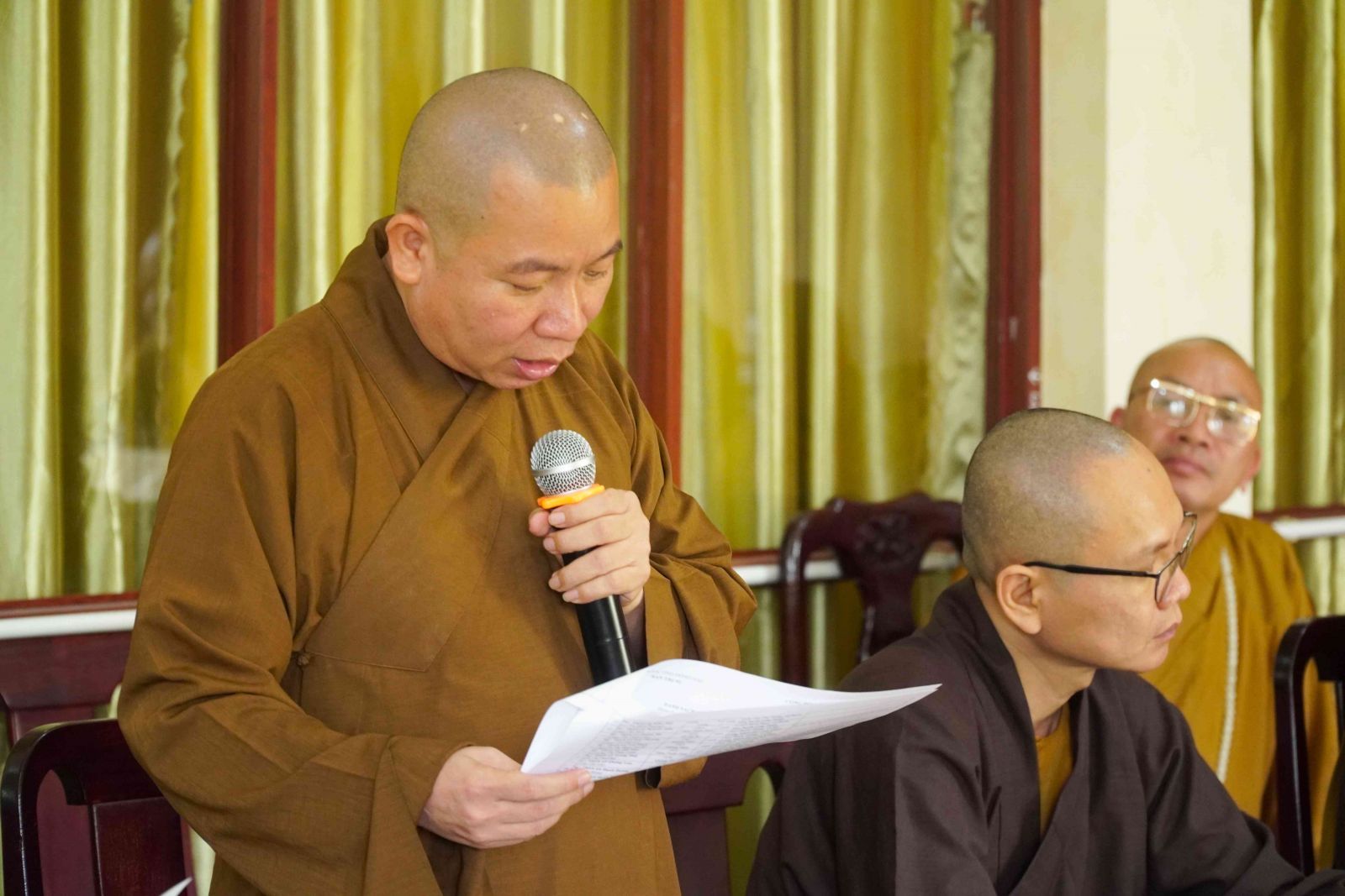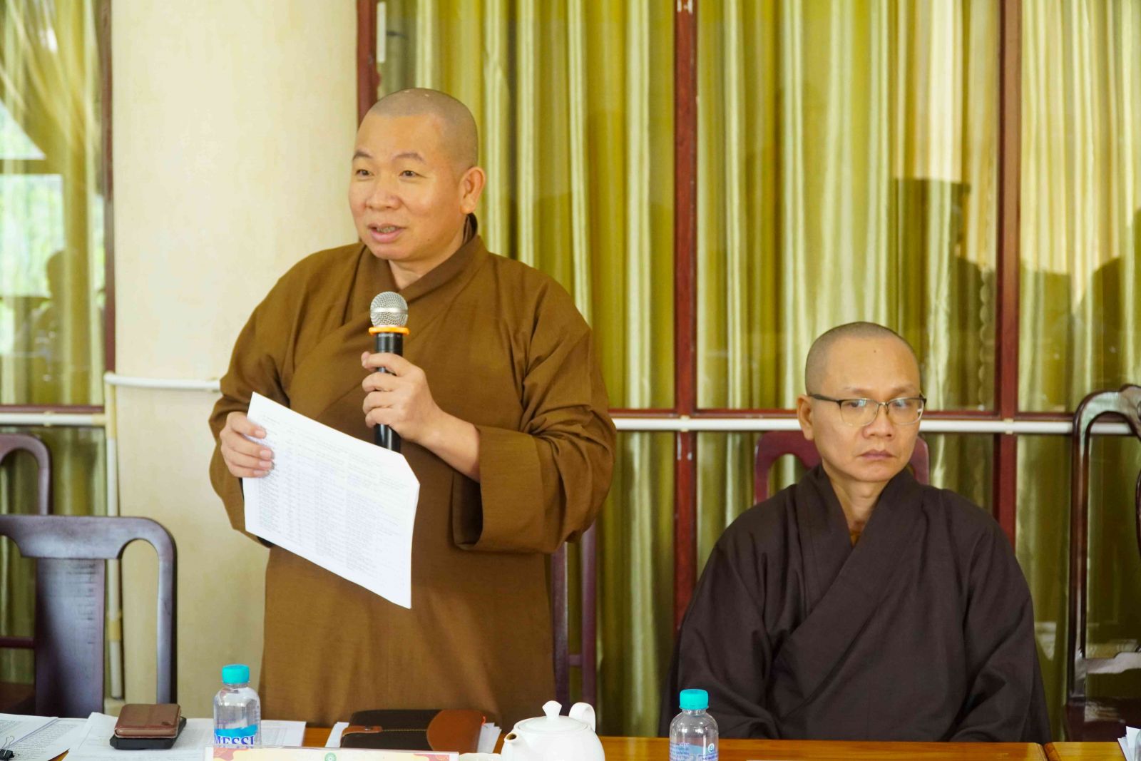 Sau phần phát biểu khai mạc, ĐĐ. Thích Thiện Trí đại diện Ban Thư ký đã thông qua báo cáo công tác Phật sự tổng kết Đại lễ Phật đản Vesak PL. 2569 – DL. 2025. Tiếp đó, Ban Thư ký cũng Triển khai kế hoạch tổ chức An cư Kiết hạ PL. 2569 và các Phật sự trọng yếu sắp tới của Ban Trị sự GHPGVN tỉnh.