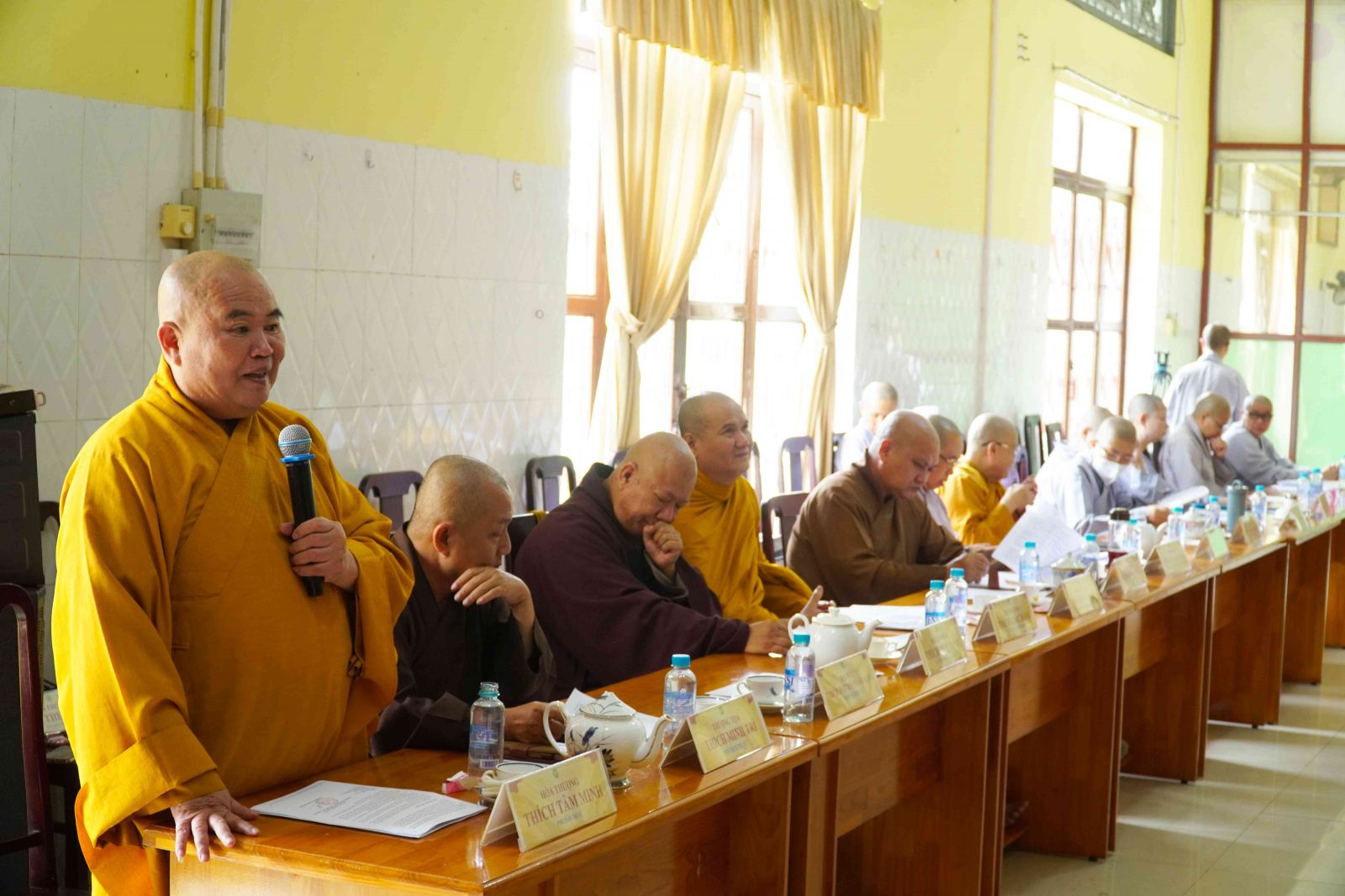Tham dự phiên họp, chư Tôn đức Trưởng các ban ngành trực thuộc và Trưởng – Phó Ban Trị sự Phật giáo các huyện, thành phố cũng đã báo cáo công tác tổ chức Đại lễ Phật đản vừa qua và triển khai kế hoạch An cư Kiết hạ đối với các huyện.