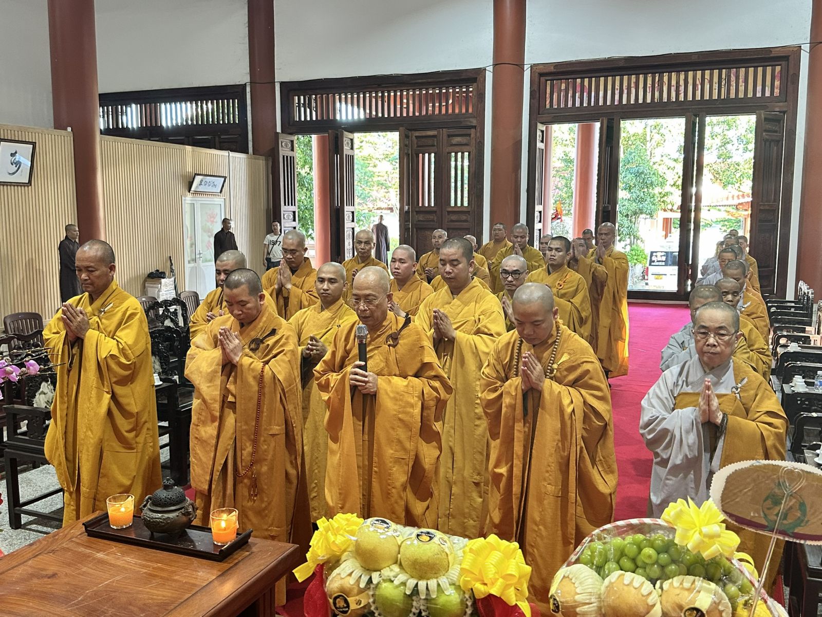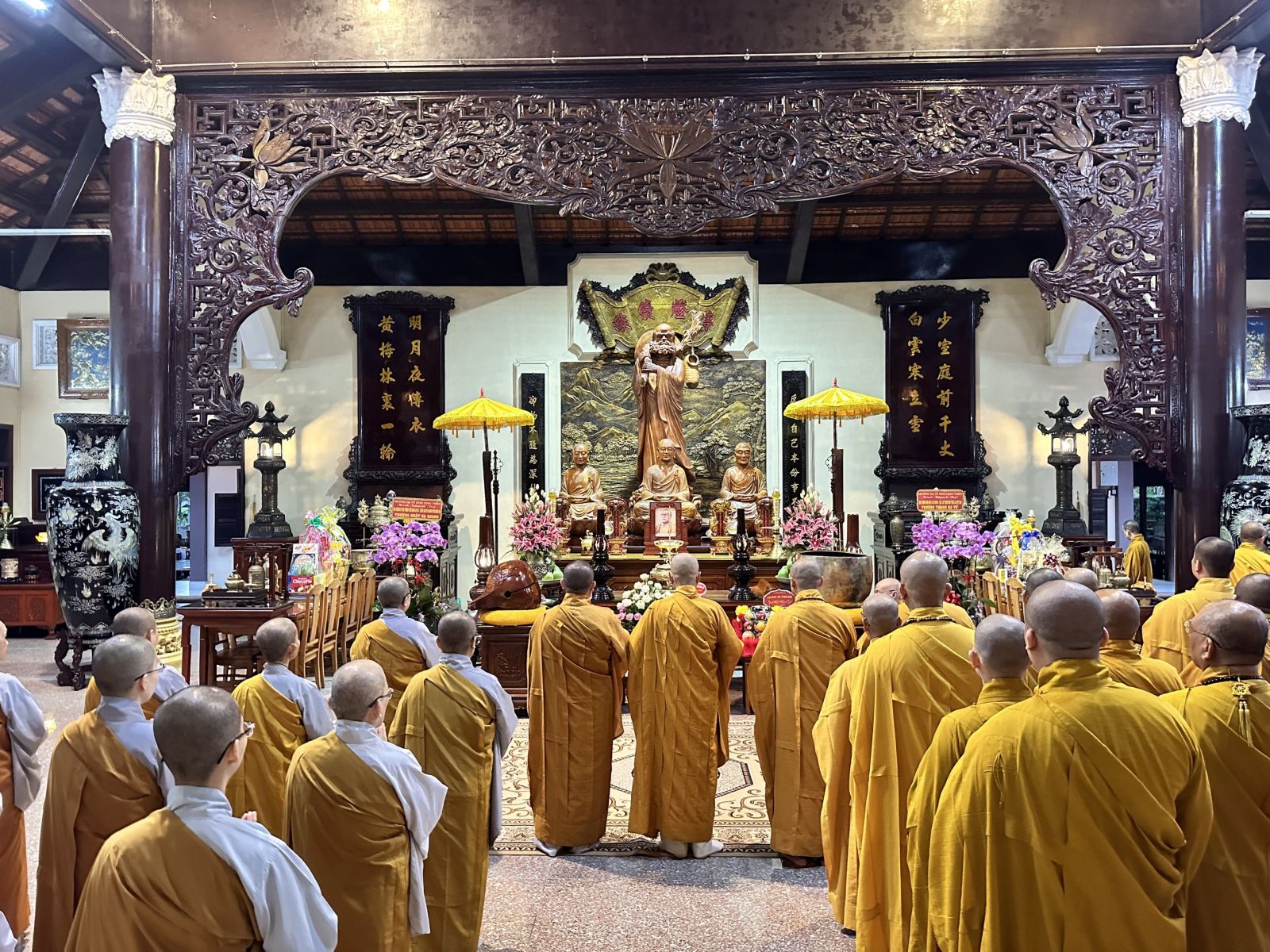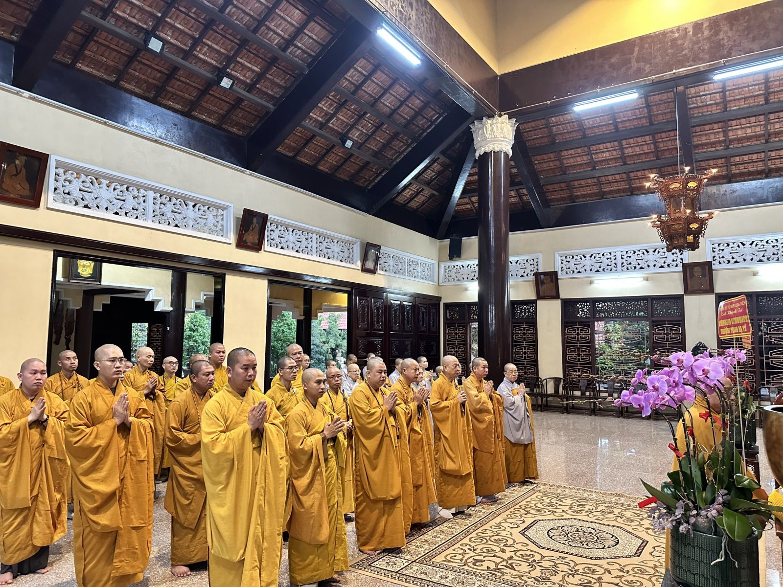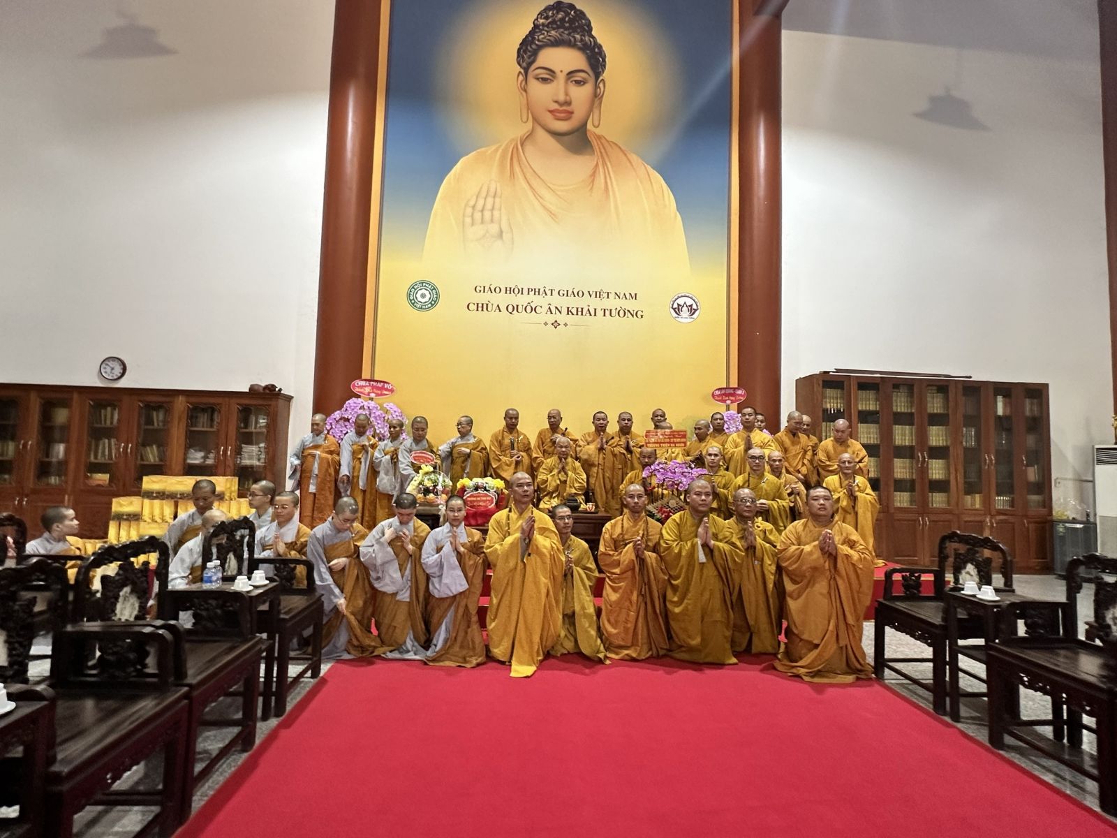 Đoàn do TT. Thích Huệ Khai - Ủy viên Thường trực HĐTS, Trưởng ban Ban Trị sự, Trưởng ban Tăng sự GHPGVN tỉnh, làm trưởng đoàn; đi cùng đoàn có ĐĐ. Thích Thiện Trí - Phó Thư ký, Chánh Văn phòng Ban Trị sự GHPGVN tỉnh; ĐĐ. Thích Đạt Ma Đức Long - Trưởng ban Văn hóa GHPGVN tỉnh; ĐĐ. Thích Thiện Mỹ - Trưởng ban Thông tin Truyền thông GHPGVN tỉnh; ĐĐ. Thích Huệ Thới - Phó Văn phòng Ban Trị sự GHPGVN tỉnh; cùng chư Tôn đức Tăng Ni Thường trực Ban Trị sự tỉnh, chư Tôn đức Ban Chức sự các Hạ trường Chùa Tỉnh Hội, tổ đình Long Thiền, Chùa Hoàng Ân, Chùa Long Vân và các Hạ trường trong tỉnh.