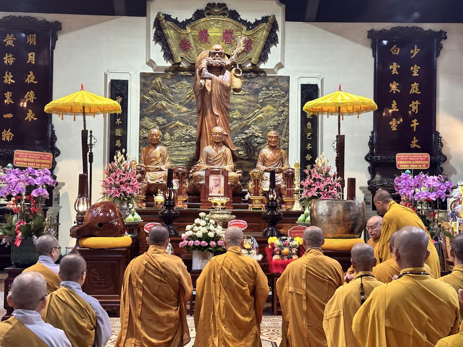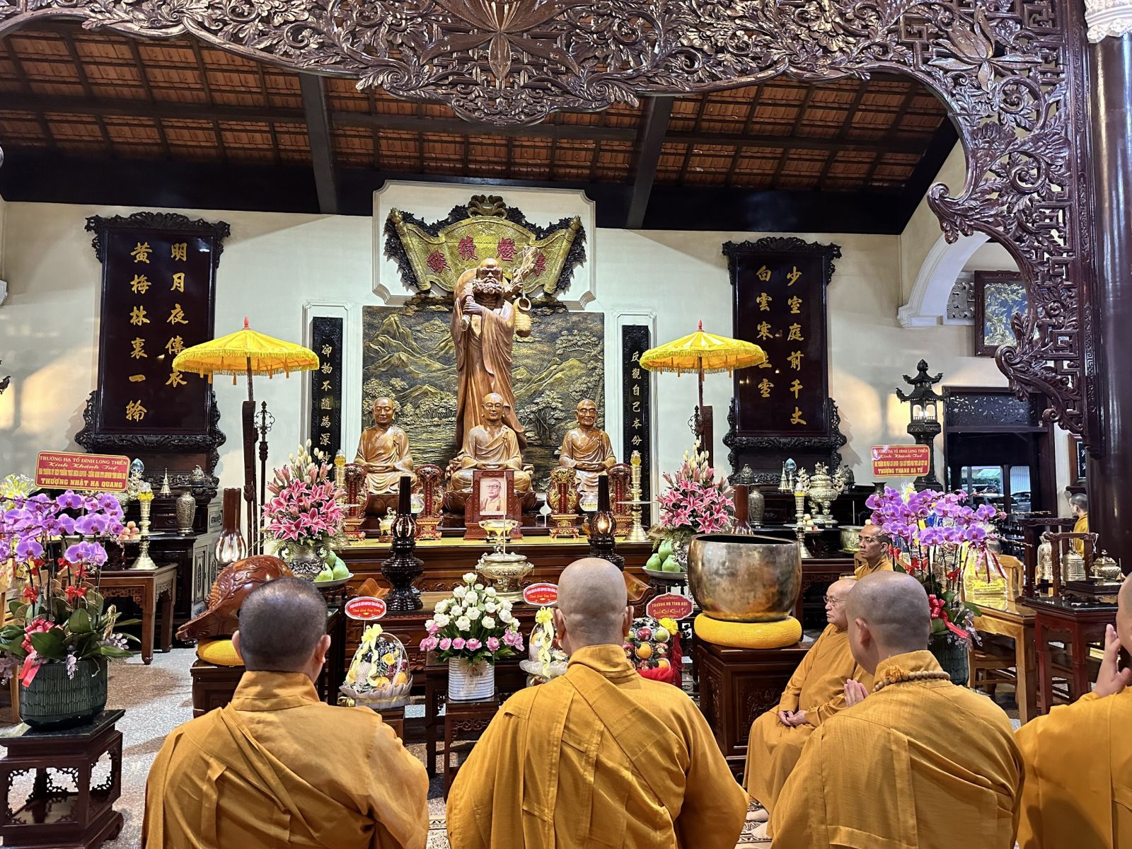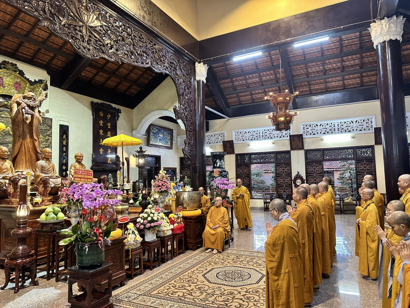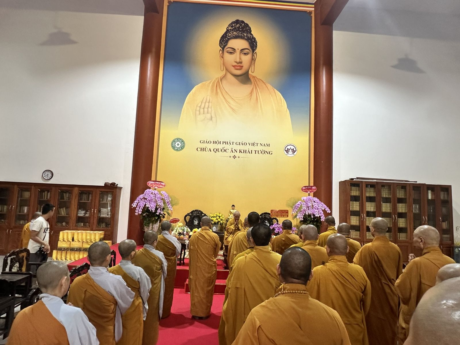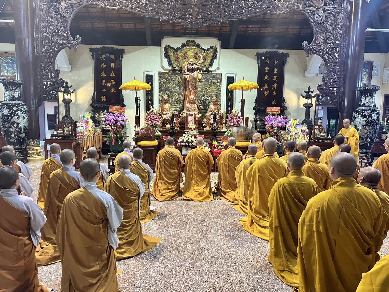 Đoàn do TT. Thích Huệ Khai - Ủy viên Thường trực HĐTS, Trưởng ban Ban Trị sự, Trưởng ban Tăng sự GHPGVN tỉnh, làm trưởng đoàn; đi cùng đoàn có ĐĐ. Thích Thiện Trí - Phó Thư ký, Chánh Văn phòng Ban Trị sự GHPGVN tỉnh; ĐĐ. Thích Đạt Ma Đức Long - Trưởng ban Văn hóa GHPGVN tỉnh; ĐĐ. Thích Thiện Mỹ - Trưởng ban Thông tin Truyền thông GHPGVN tỉnh; ĐĐ. Thích Huệ Thới - Phó Văn phòng Ban Trị sự GHPGVN tỉnh; cùng chư Tôn đức Tăng Ni Thường trực Ban Trị sự tỉnh, chư Tôn đức Ban Chức sự các Hạ trường Chùa Tỉnh Hội, tổ đình Long Thiền, Chùa Hoàng Ân, Chùa Long Vân và các Hạ trường trong tỉnh.