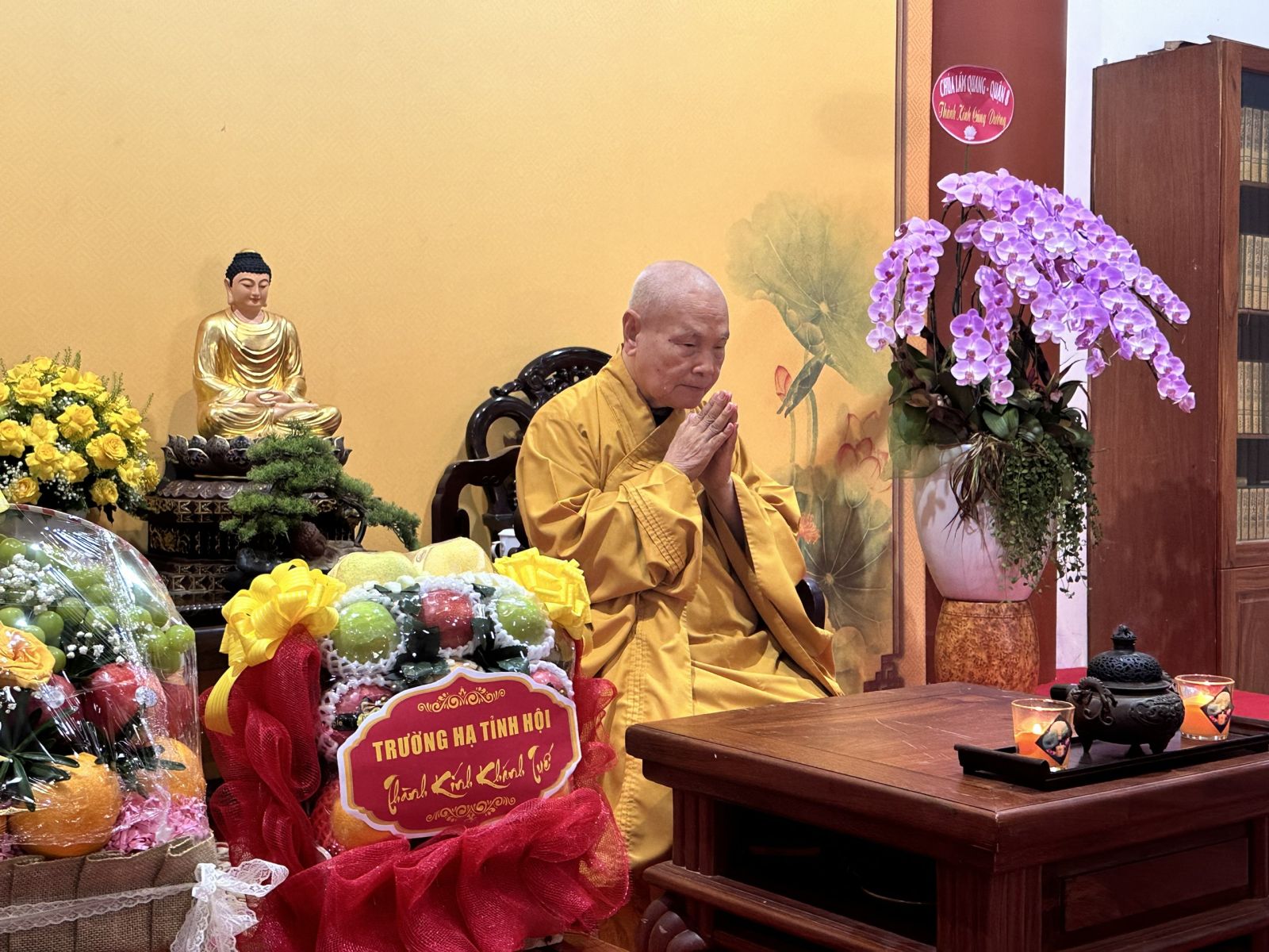 Đại diện chư Tăng Ni, TT. Thích Huệ Khai đã dâng lời tác bạch khánh tuế đến chư Tôn đức lãnh đạo Giáo hội Pháp thể khương an, đạo thọ miên trường để dẫn dắt Tăng Ni, Phật tử Hoằng dương chánh pháp và lãnh đạo Giáo hội phát triển trang nghiêm, ổn định.