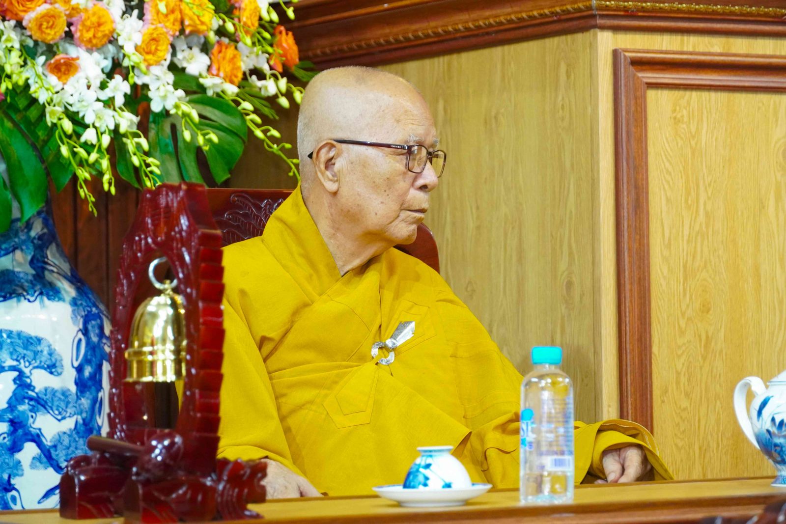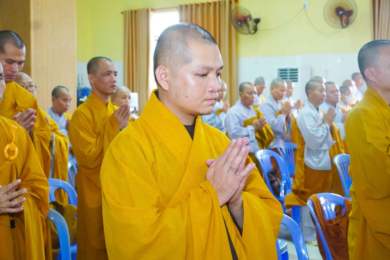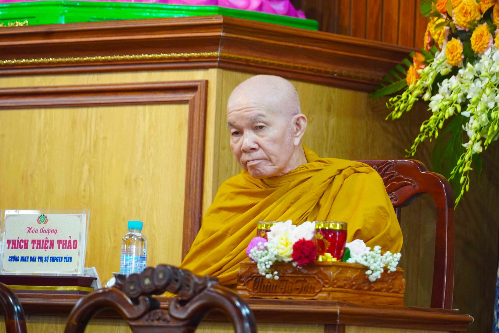 Cuối cùng, buổi lễ trang nghiêm lắng nghe lời sách tấn của HT. Thích Thiện Đạo – Thành viên HĐCM, Chứng minh Ban Trị sự GHPGVN tỉnh. Hòa thượng chỉ dạy rằng: Ba tháng an cư kiết hạ có ý nghĩa rất lớn đối với hàng xuất gia lẫn tại gia. Đó là thời điểm chư Tăng Ni dành trọn thời gian cho việc tu học, thúc liễm thân tâm, trau giồi Giới-Định-Tuệ, đồng thời đây cũng là cơ hội cho hàng Phật tử tại gia phát tâm gieo trồng ruộng phước thông qua việc cúng dường, ngoại hộ, tạo điều kiện thuận lợi cho chư Tăng Ni an cư tu học. An cư kiết hạ cũng là hoạt động củng cố và duy trì nguồn nội lực sau những ngày tháng dấn thân phụng sự đạo pháp, phụng sự chúng sinh. Trong những tháng ngày cấm túc an cư, chư Tăng Ni chẳng những được bồi dưỡng, phát triển trình độ tu học Phật pháp, tăng trưởng công đức, giới hạnh, đạo lực, mà còn có dịp thực hành đời sống tập thể theo tinh thần lục hòa, có cơ hội trao đổi sẻ chia những kiến giải, kinh nghiệm tu hành, đồng thời thể hiện tình huynh đệ, tinh thần hòa hợp như nước với sữa.