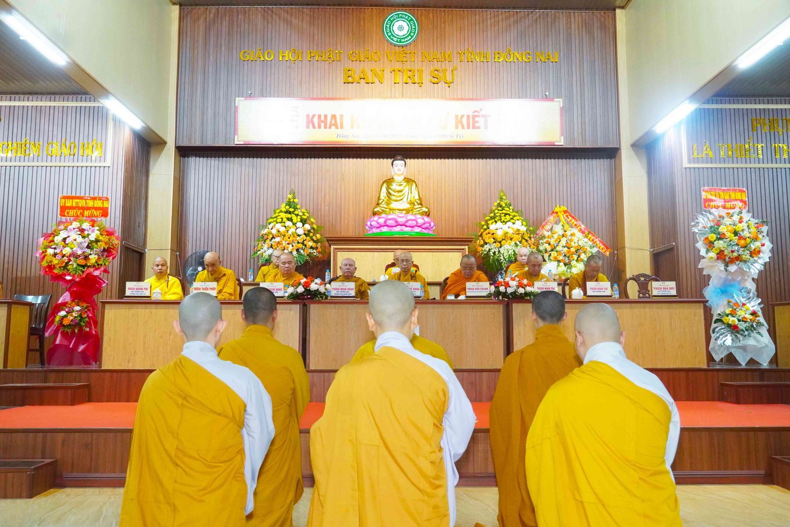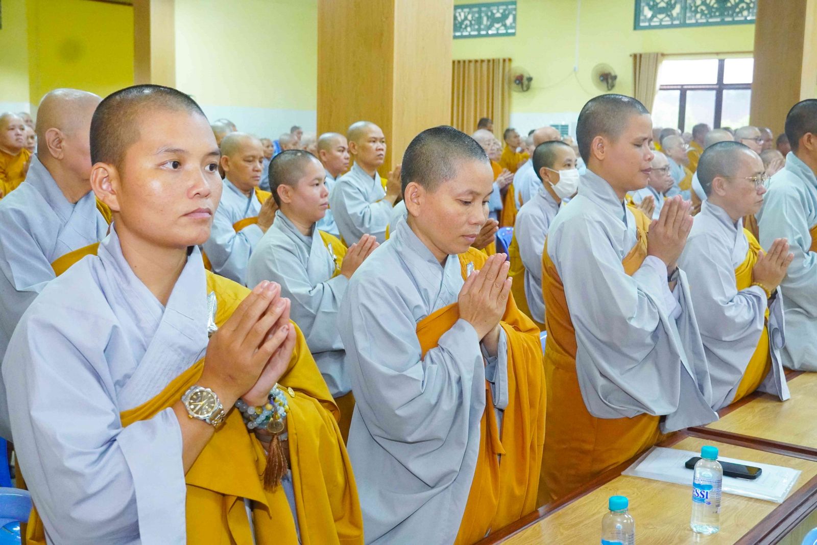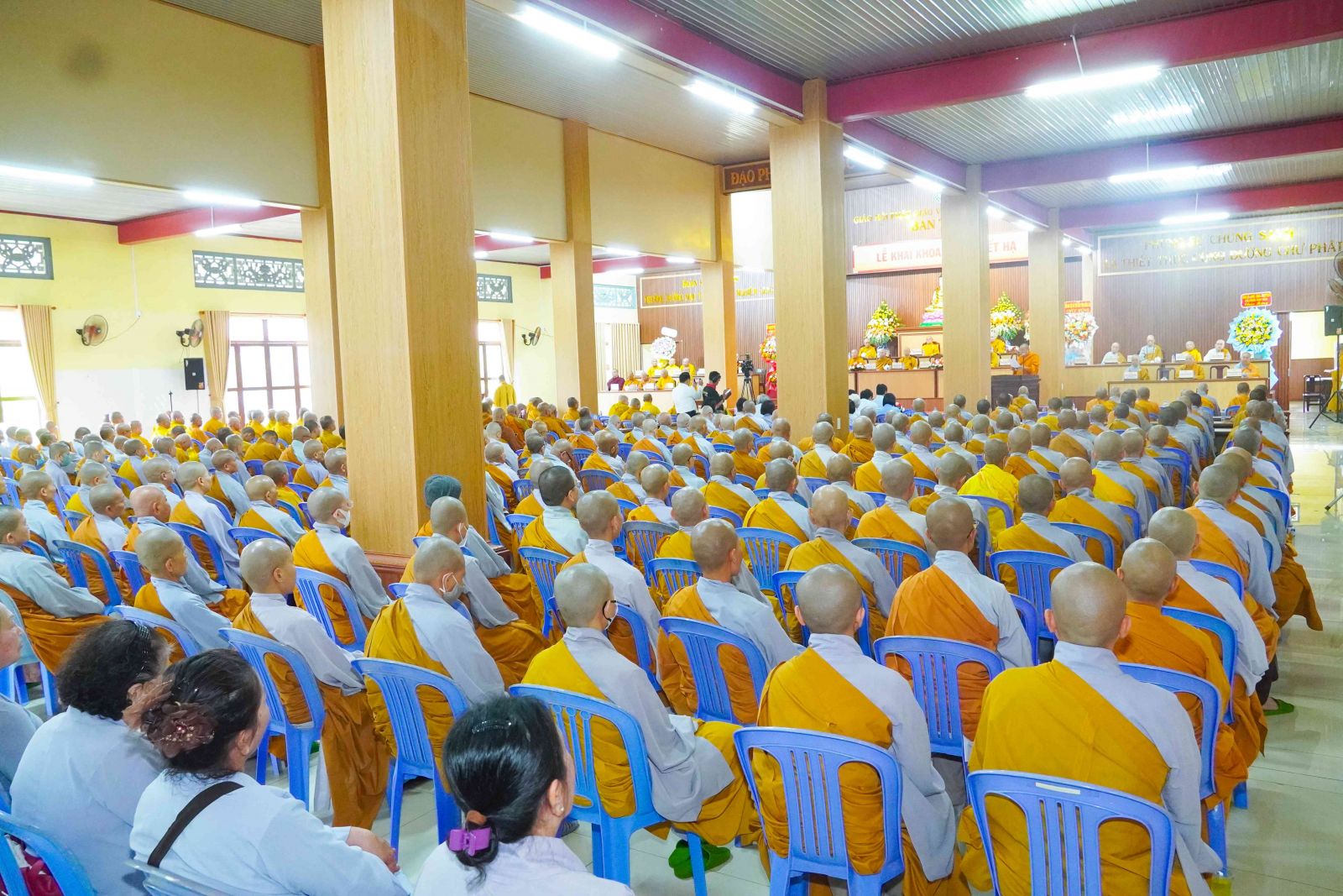 Cùng chư Tôn đức Tăng Ni thường trực Ban Trị sự các huyện, thành phố trực thuộc, chư Tăng Ni hành giả An cư huyện Vĩnh Cửu, Tp. Biên Hòa, trường Trung cấp Phật Học tỉnh Đồng Nai, chư Tăng Ni các Hạ trường trong tỉnh đồng trang nghiêm về tham dự lễ Khai hạ.