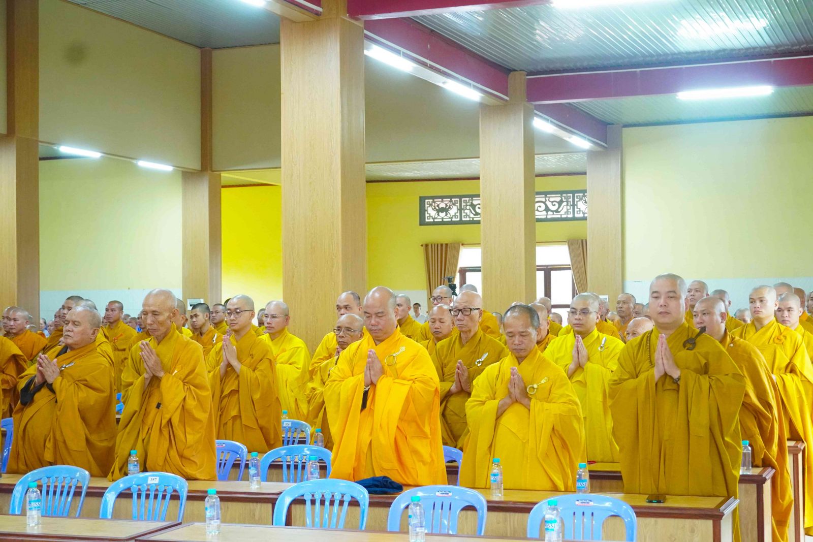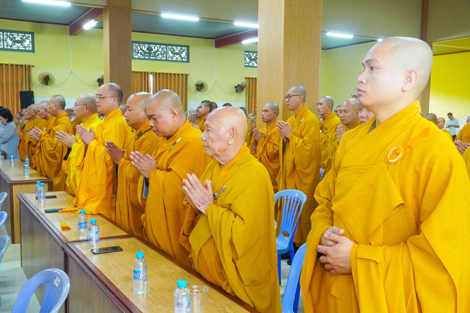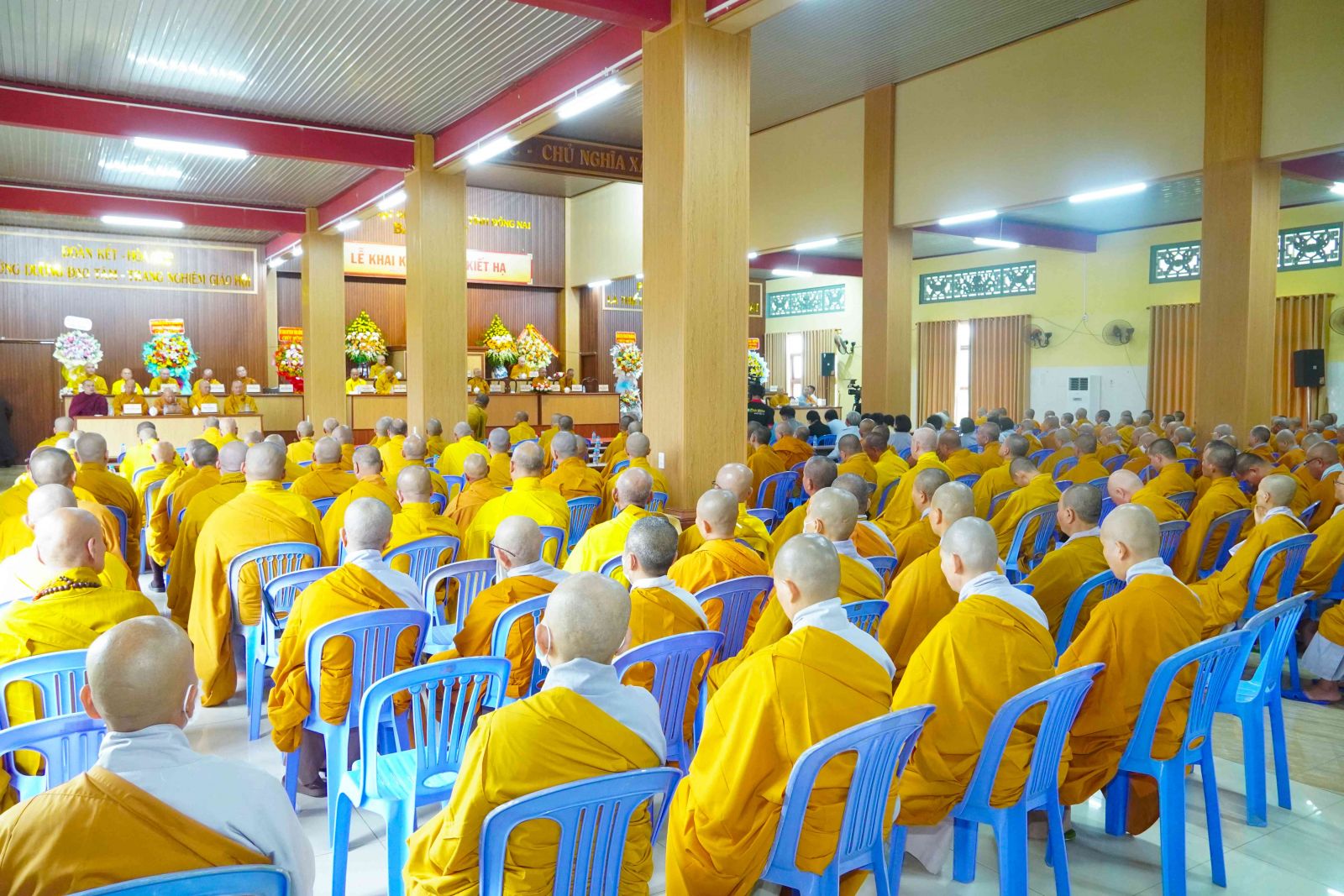 Cùng chư Tôn đức Tăng Ni thường trực Ban Trị sự các huyện, thành phố trực thuộc, chư Tăng Ni hành giả An cư huyện Vĩnh Cửu, Tp. Biên Hòa, trường Trung cấp Phật Học tỉnh Đồng Nai, chư Tăng Ni các Hạ trường trong tỉnh đồng trang nghiêm về tham dự lễ Khai hạ.