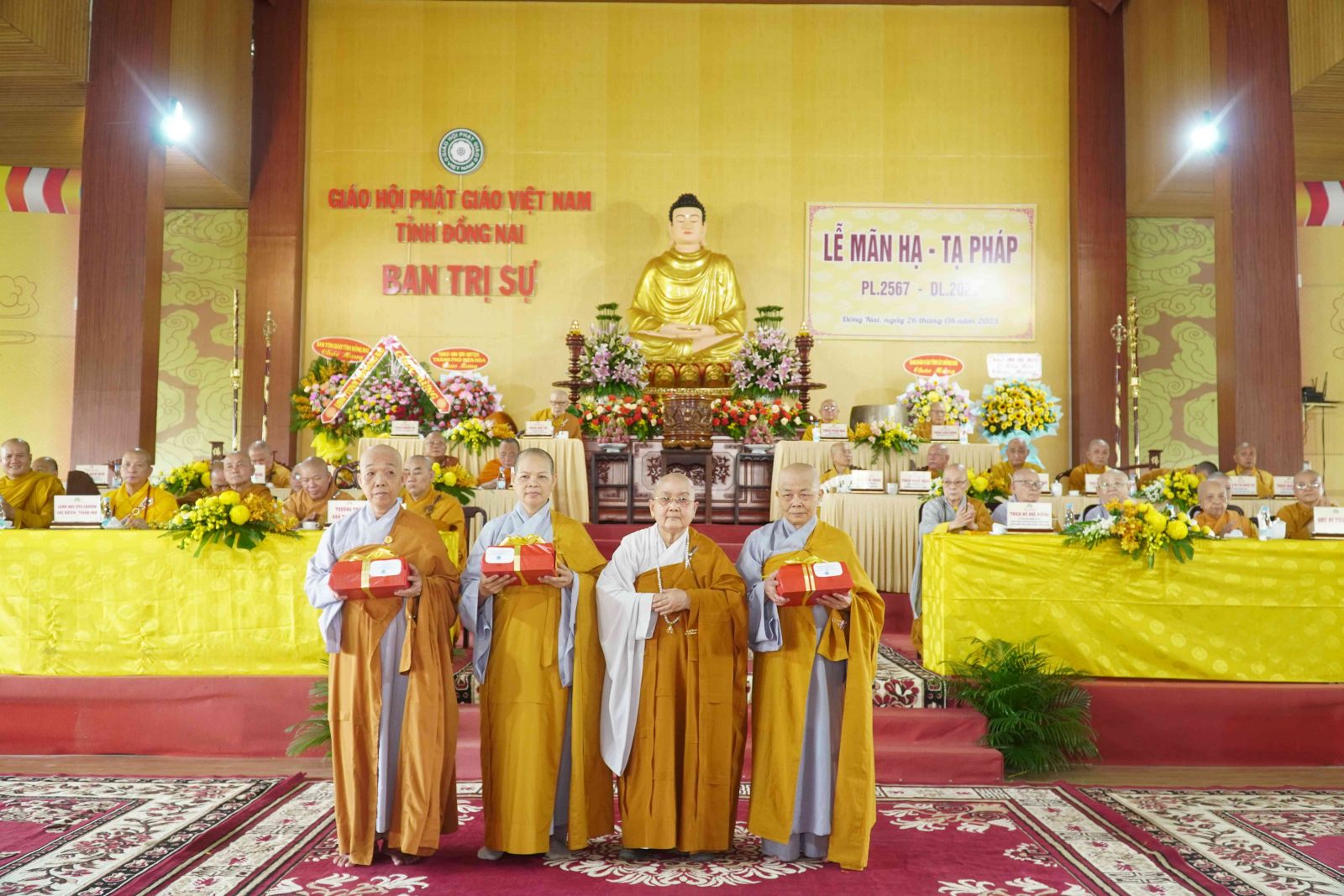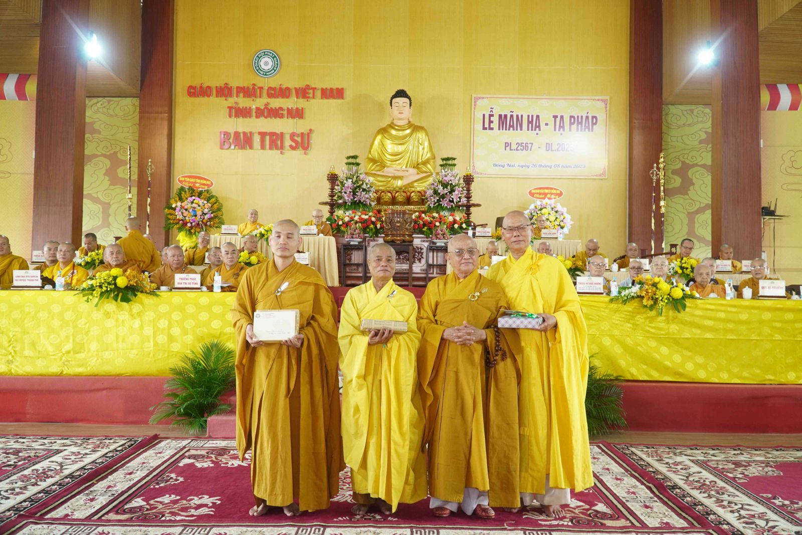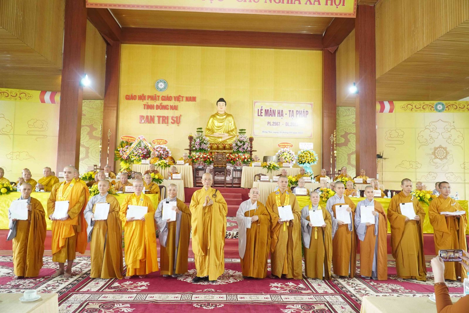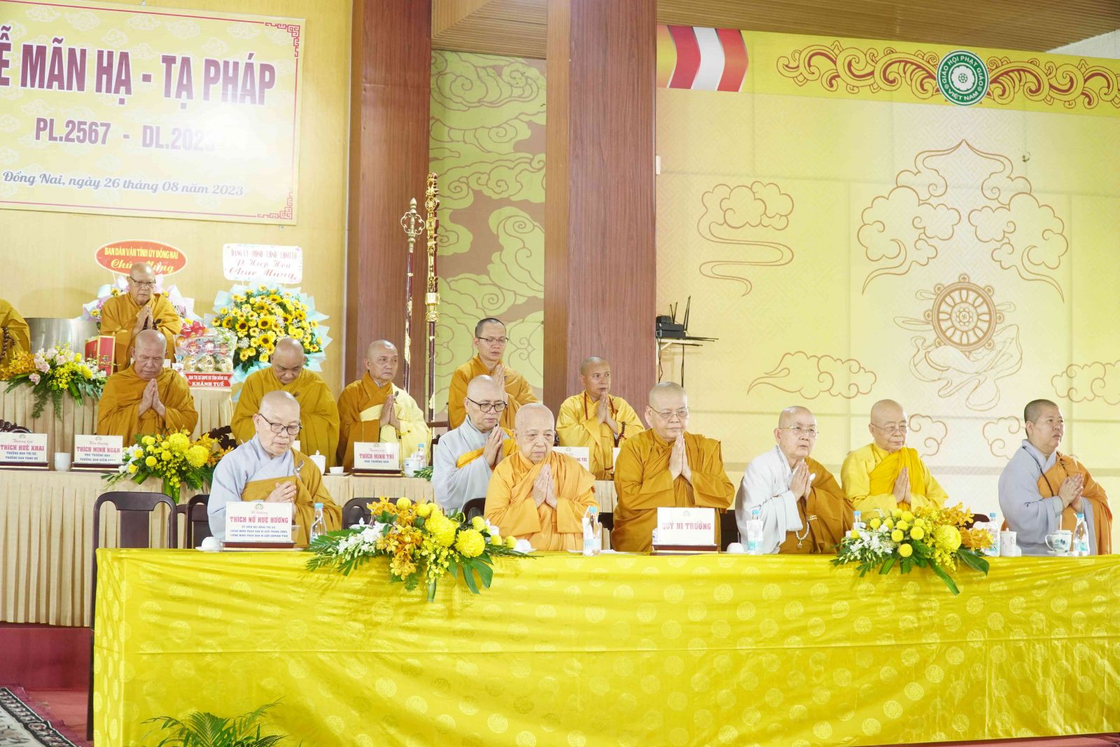 Quang lâm chứng minh có HT. Thích Thiện Đạo – Thành viên HĐCM TƯ GHPGVN, Chứng minh Ban Trị sự GHPGVN tỉnh Đồng Nai; HT. Thích Huệ Chí – Chứng minh Ban Trị sự GHPGVN tỉnh; HT. Thích Liêm Chính – Chứng minh Ban Trị sự GHPGVN tỉnh; HT. Thích Phước Tú – Chứng minh Ban Trị sự GHPGVN tỉnh; TT. Thích Huệ Khai - Ủy viên Thường trực HĐTS, Trưởng Ban Trị sự, Trưởng ban Tăng sự GHPGVN tỉnh; HT. Thích Bửu Chánh - Ủy viên Thư ký HĐTS, Phó trưởng ban Thường trực Ban Trị sự GHPGVN tỉnh; HT. Thích Minh Ngạn – Phó Ban Trị sự, Trưởng ban Kiểm soát GHPGVN tỉnh; TT. Thích Huệ Sanh - Ủy viên HĐTS, Phó Ban Trị sự, Trưởng ban Hoằng pháp GHPGVN tỉnh; HT. Thích Tâm Minh – Phó Ban Trị sự GHPGVN tỉnh; TT. Thích Đạo Huy – Phó Ban kiêm Chánh thư ký Ban Trị sự GHPGVN tỉnh; TT. Thích Minh Trí - Ủy viên Dự khuyết HĐTS, Phó Ban Trị sự tỉnh, Trưởng Ban Trị sự GHPGVN Tp. Biên Hòa; TT. Thích Thiện Pháp – Phó Ban Trị sự tỉnh, Trưởng Ban Trị sự GHPGVN huyện Nhơn Trạch; TT. Thích Minh Trì – Phó Ban Trị sự tỉnh, Trưởng Ban Trị sự GHPGVN huyện Trảng Bom; TT. Thích Huệ Nghiệp – Phó Ban Trị sự, Trưởng ban Pháp chế GHPGVN tỉnh; TT. Thích Đạt ma Quang Tuệ - Ủy viên HĐTS, Phó Ban Trị sự, Trưởng ban Giáo dục Phật giáo tỉnh; TT. Thích Quảng Trí – Phó Ban Trị sự, Trưởng ban Nghi lễ GHPGVN tỉnh; TT. Thích Pháp Đăng - Ủy viên Thường trực Ban Trị sự GHPGVN tỉnh; TT. Thích Huệ Ninh - Ủy viên Thường trực Ban Trị sự tỉnh; TT. Thích Quảng Ảnh - Ủy viên Thường trực Ban Trị sự tỉnh; ĐĐ. Thích Chơn Nghĩa – Trưởng ban Từ thiện Xã hội GHPGVN tỉnh; TT. Thích Tuệ Quyền – Trưởng ban Phật giáo Quốc tế GHPGVN tỉnh; ĐĐ. Thích Đạt ma Đức Long – Trưởng ban Văn Hóa GHPGVN tỉnh; HT. Thích Pháp Cần – Trưởng Ban Trị sự GHPGVN huyện Tân Phú; HT. Thích Huệ Thiền - Ủy viên Ban Trị sự tỉnh; TT. Thích Huệ Quang – Trưởng Ban Trị sự GHPGVN huyện Xuân Lộc; Đ Đ. Thích Quảng Lý – Trưởng Ban Trị sự GHPGVN huyện Cẩm Mỹ; TT. Thích Pháp Đăng – Phó trưởng Ban Trị sự huyện Định Quán; TT. Thích Giác Đăng – Phó trưởng ban Thường trực Ban Trị sự Tp. Long Khánh; TT. Thích Đạt ma Chí Hải – Trưởng Ban Trị sự GHPGVN huyện Long Thành; TT. Thích Thiện Thọ - Ủy viên Ban Trị sự tỉnh; Phó trưởng ban Thường trực Ban Trị sự Tp. Biên Hòa.