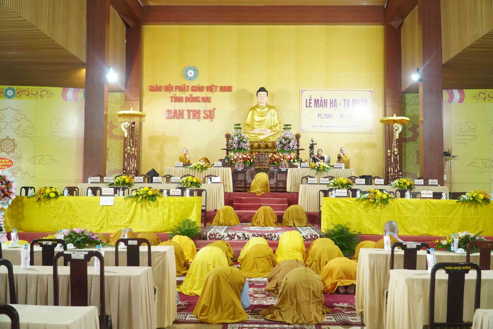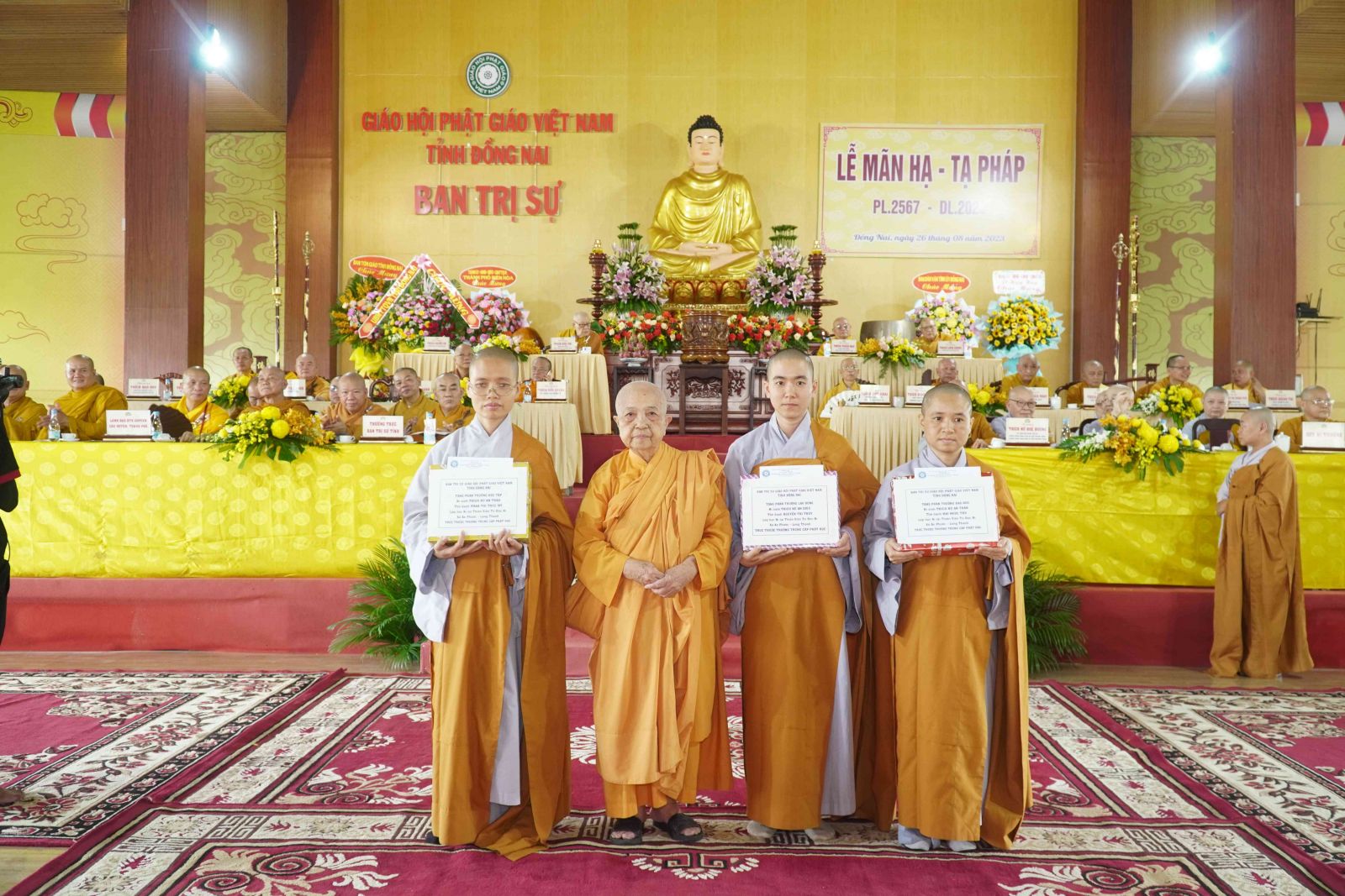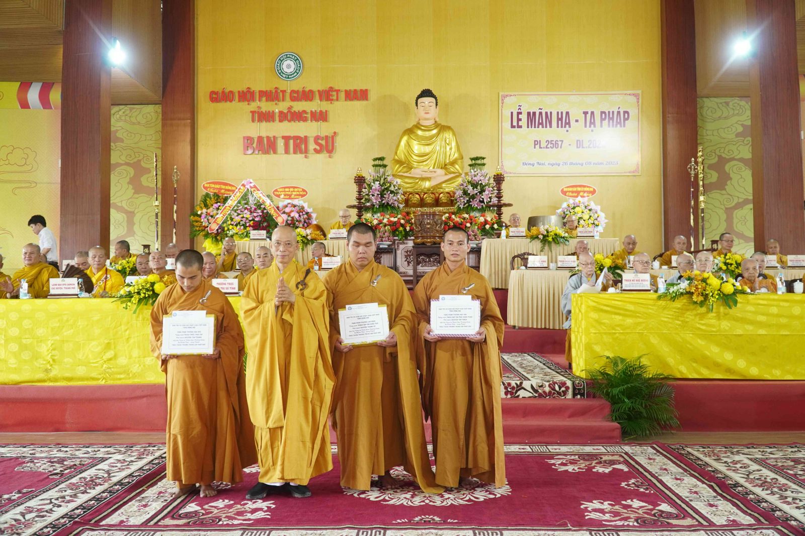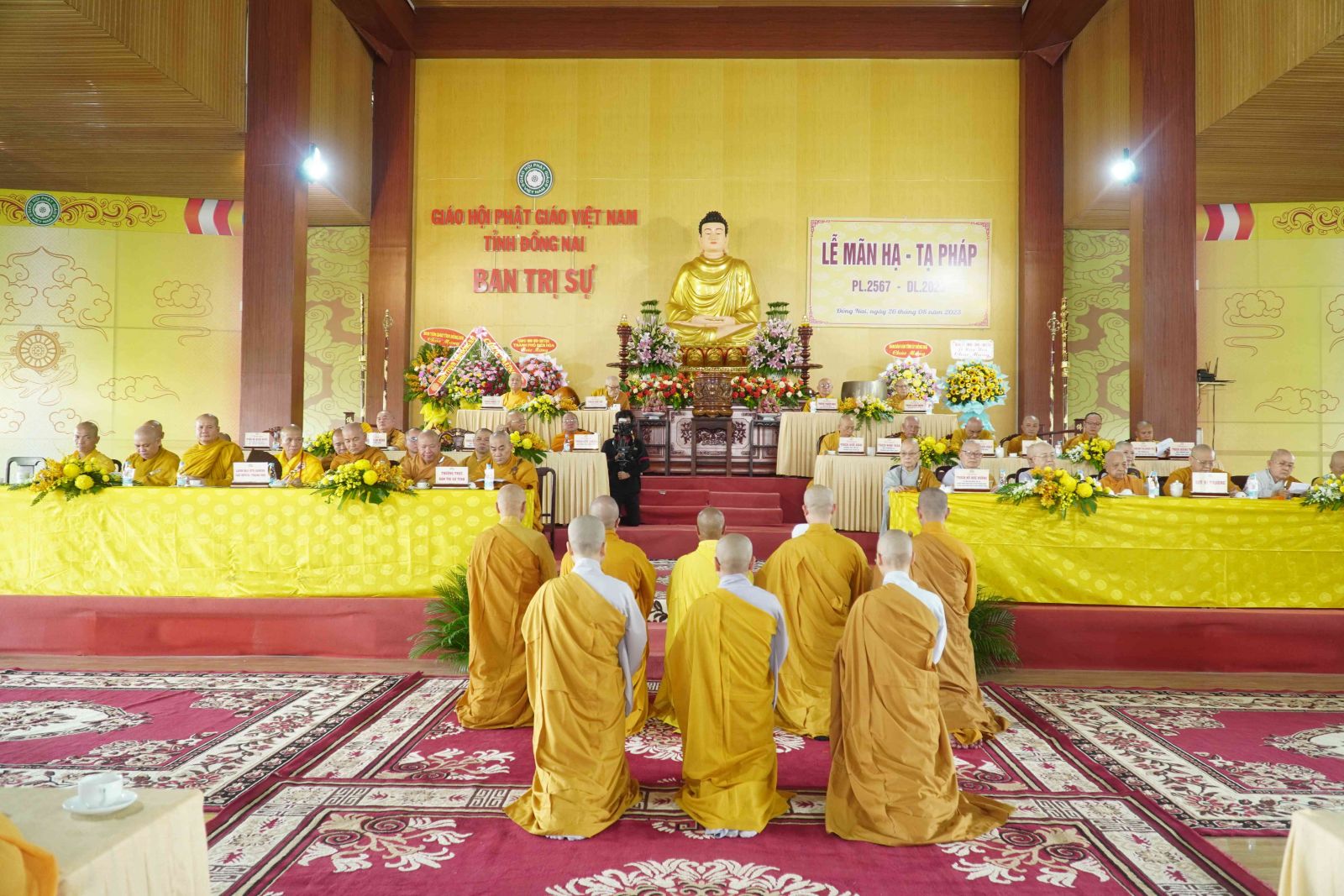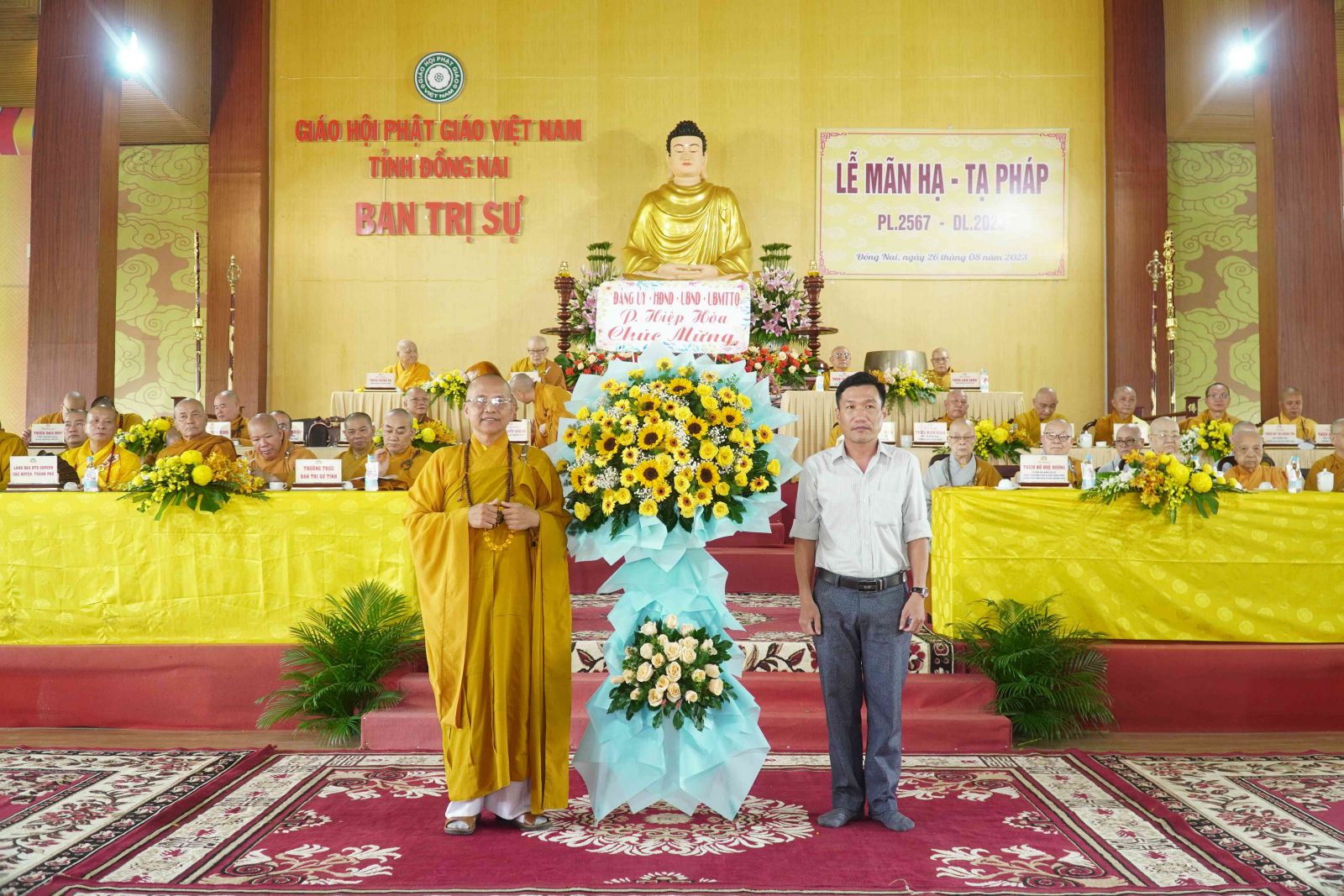 Quang lâm chứng minh có HT. Thích Thiện Đạo – Thành viên HĐCM TƯ GHPGVN, Chứng minh Ban Trị sự GHPGVN tỉnh Đồng Nai; HT. Thích Huệ Chí – Chứng minh Ban Trị sự GHPGVN tỉnh; HT. Thích Liêm Chính – Chứng minh Ban Trị sự GHPGVN tỉnh; HT. Thích Phước Tú – Chứng minh Ban Trị sự GHPGVN tỉnh; TT. Thích Huệ Khai - Ủy viên Thường trực HĐTS, Trưởng Ban Trị sự, Trưởng ban Tăng sự GHPGVN tỉnh; HT. Thích Bửu Chánh - Ủy viên Thư ký HĐTS, Phó trưởng ban Thường trực Ban Trị sự GHPGVN tỉnh; HT. Thích Minh Ngạn – Phó Ban Trị sự, Trưởng ban Kiểm soát GHPGVN tỉnh; TT. Thích Huệ Sanh - Ủy viên HĐTS, Phó Ban Trị sự, Trưởng ban Hoằng pháp GHPGVN tỉnh; HT. Thích Tâm Minh – Phó Ban Trị sự GHPGVN tỉnh; TT. Thích Đạo Huy – Phó Ban kiêm Chánh thư ký Ban Trị sự GHPGVN tỉnh; TT. Thích Minh Trí - Ủy viên Dự khuyết HĐTS, Phó Ban Trị sự tỉnh, Trưởng Ban Trị sự GHPGVN Tp. Biên Hòa; TT. Thích Thiện Pháp – Phó Ban Trị sự tỉnh, Trưởng Ban Trị sự GHPGVN huyện Nhơn Trạch; TT. Thích Minh Trì – Phó Ban Trị sự tỉnh, Trưởng Ban Trị sự GHPGVN huyện Trảng Bom; TT. Thích Huệ Nghiệp – Phó Ban Trị sự, Trưởng ban Pháp chế GHPGVN tỉnh; TT. Thích Đạt ma Quang Tuệ - Ủy viên HĐTS, Phó Ban Trị sự, Trưởng ban Giáo dục Phật giáo tỉnh; TT. Thích Quảng Trí – Phó Ban Trị sự, Trưởng ban Nghi lễ GHPGVN tỉnh; TT. Thích Pháp Đăng - Ủy viên Thường trực Ban Trị sự GHPGVN tỉnh; TT. Thích Huệ Ninh - Ủy viên Thường trực Ban Trị sự tỉnh; TT. Thích Quảng Ảnh - Ủy viên Thường trực Ban Trị sự tỉnh; ĐĐ. Thích Chơn Nghĩa – Trưởng ban Từ thiện Xã hội GHPGVN tỉnh; TT. Thích Tuệ Quyền – Trưởng ban Phật giáo Quốc tế GHPGVN tỉnh; ĐĐ. Thích Đạt ma Đức Long – Trưởng ban Văn Hóa GHPGVN tỉnh; HT. Thích Pháp Cần – Trưởng Ban Trị sự GHPGVN huyện Tân Phú; HT. Thích Huệ Thiền - Ủy viên Ban Trị sự tỉnh; TT. Thích Huệ Quang – Trưởng Ban Trị sự GHPGVN huyện Xuân Lộc; Đ Đ. Thích Quảng Lý – Trưởng Ban Trị sự GHPGVN huyện Cẩm Mỹ; TT. Thích Pháp Đăng – Phó trưởng Ban Trị sự huyện Định Quán; TT. Thích Giác Đăng – Phó trưởng ban Thường trực Ban Trị sự Tp. Long Khánh; TT. Thích Đạt ma Chí Hải – Trưởng Ban Trị sự GHPGVN huyện Long Thành; TT. Thích Thiện Thọ - Ủy viên Ban Trị sự tỉnh; Phó trưởng ban Thường trực Ban Trị sự Tp. Biên Hòa.
