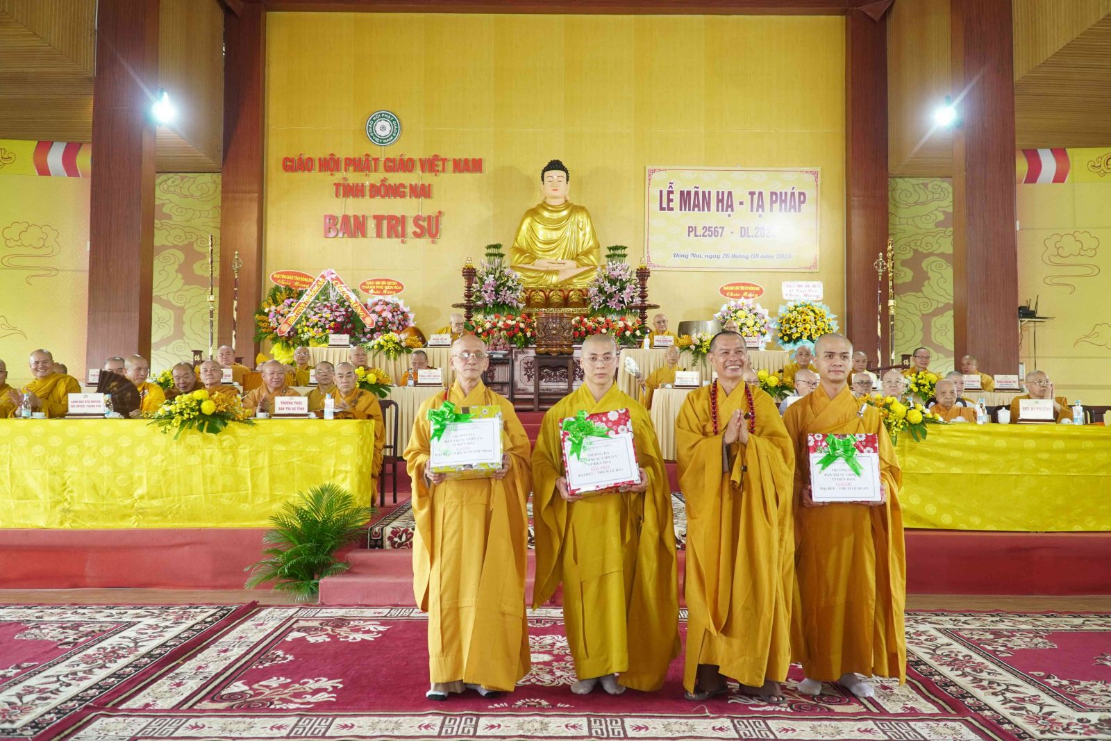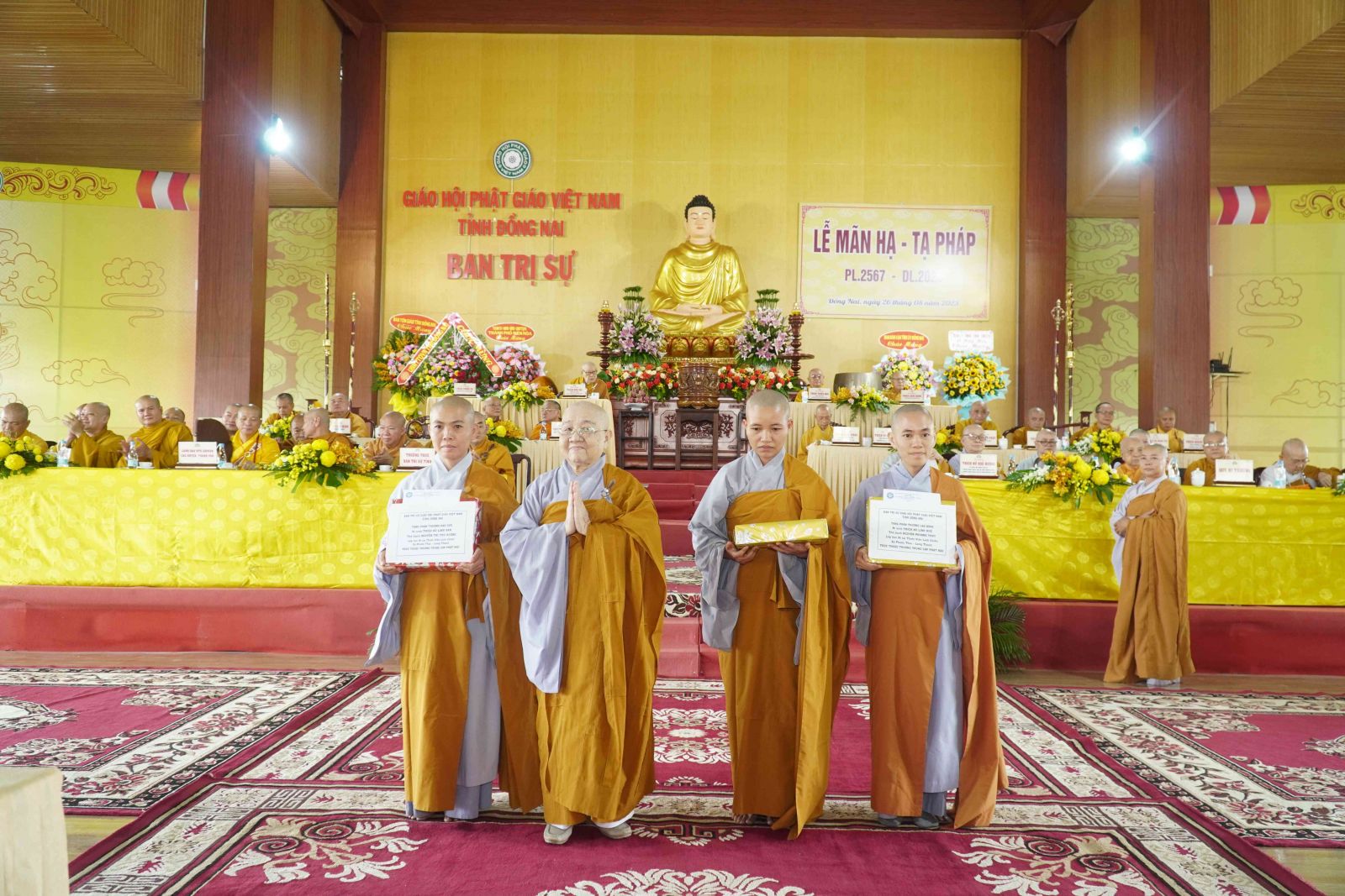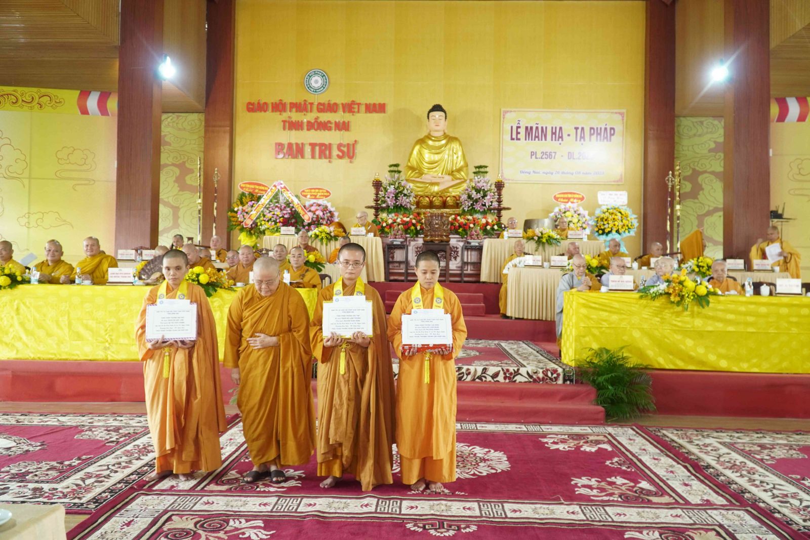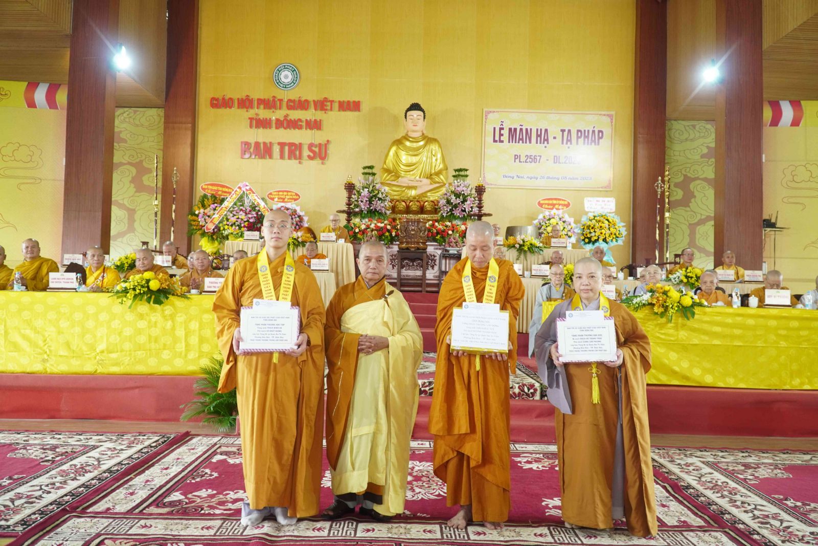 Quang lâm chứng minh có HT. Thích Thiện Đạo – Thành viên HĐCM TƯ GHPGVN, Chứng minh Ban Trị sự GHPGVN tỉnh Đồng Nai; HT. Thích Huệ Chí – Chứng minh Ban Trị sự GHPGVN tỉnh; HT. Thích Liêm Chính – Chứng minh Ban Trị sự GHPGVN tỉnh; HT. Thích Phước Tú – Chứng minh Ban Trị sự GHPGVN tỉnh; TT. Thích Huệ Khai - Ủy viên Thường trực HĐTS, Trưởng Ban Trị sự, Trưởng ban Tăng sự GHPGVN tỉnh; HT. Thích Bửu Chánh - Ủy viên Thư ký HĐTS, Phó trưởng ban Thường trực Ban Trị sự GHPGVN tỉnh; HT. Thích Minh Ngạn – Phó Ban Trị sự, Trưởng ban Kiểm soát GHPGVN tỉnh; TT. Thích Huệ Sanh - Ủy viên HĐTS, Phó Ban Trị sự, Trưởng ban Hoằng pháp GHPGVN tỉnh; HT. Thích Tâm Minh – Phó Ban Trị sự GHPGVN tỉnh; TT. Thích Đạo Huy – Phó Ban kiêm Chánh thư ký Ban Trị sự GHPGVN tỉnh; TT. Thích Minh Trí - Ủy viên Dự khuyết HĐTS, Phó Ban Trị sự tỉnh, Trưởng Ban Trị sự GHPGVN Tp. Biên Hòa; TT. Thích Thiện Pháp – Phó Ban Trị sự tỉnh, Trưởng Ban Trị sự GHPGVN huyện Nhơn Trạch; TT. Thích Minh Trì – Phó Ban Trị sự tỉnh, Trưởng Ban Trị sự GHPGVN huyện Trảng Bom; TT. Thích Huệ Nghiệp – Phó Ban Trị sự, Trưởng ban Pháp chế GHPGVN tỉnh; TT. Thích Đạt ma Quang Tuệ - Ủy viên HĐTS, Phó Ban Trị sự, Trưởng ban Giáo dục Phật giáo tỉnh; TT. Thích Quảng Trí – Phó Ban Trị sự, Trưởng ban Nghi lễ GHPGVN tỉnh; TT. Thích Pháp Đăng - Ủy viên Thường trực Ban Trị sự GHPGVN tỉnh; TT. Thích Huệ Ninh - Ủy viên Thường trực Ban Trị sự tỉnh; TT. Thích Quảng Ảnh - Ủy viên Thường trực Ban Trị sự tỉnh; ĐĐ. Thích Chơn Nghĩa – Trưởng ban Từ thiện Xã hội GHPGVN tỉnh; TT. Thích Tuệ Quyền – Trưởng ban Phật giáo Quốc tế GHPGVN tỉnh; ĐĐ. Thích Đạt ma Đức Long – Trưởng ban Văn Hóa GHPGVN tỉnh; HT. Thích Pháp Cần – Trưởng Ban Trị sự GHPGVN huyện Tân Phú; HT. Thích Huệ Thiền - Ủy viên Ban Trị sự tỉnh; TT. Thích Huệ Quang – Trưởng Ban Trị sự GHPGVN huyện Xuân Lộc; Đ Đ. Thích Quảng Lý – Trưởng Ban Trị sự GHPGVN huyện Cẩm Mỹ; TT. Thích Pháp Đăng – Phó trưởng Ban Trị sự huyện Định Quán; TT. Thích Giác Đăng – Phó trưởng ban Thường trực Ban Trị sự Tp. Long Khánh; TT. Thích Đạt ma Chí Hải – Trưởng Ban Trị sự GHPGVN huyện Long Thành; TT. Thích Thiện Thọ - Ủy viên Ban Trị sự tỉnh; Phó trưởng ban Thường trực Ban Trị sự Tp. Biên Hòa.