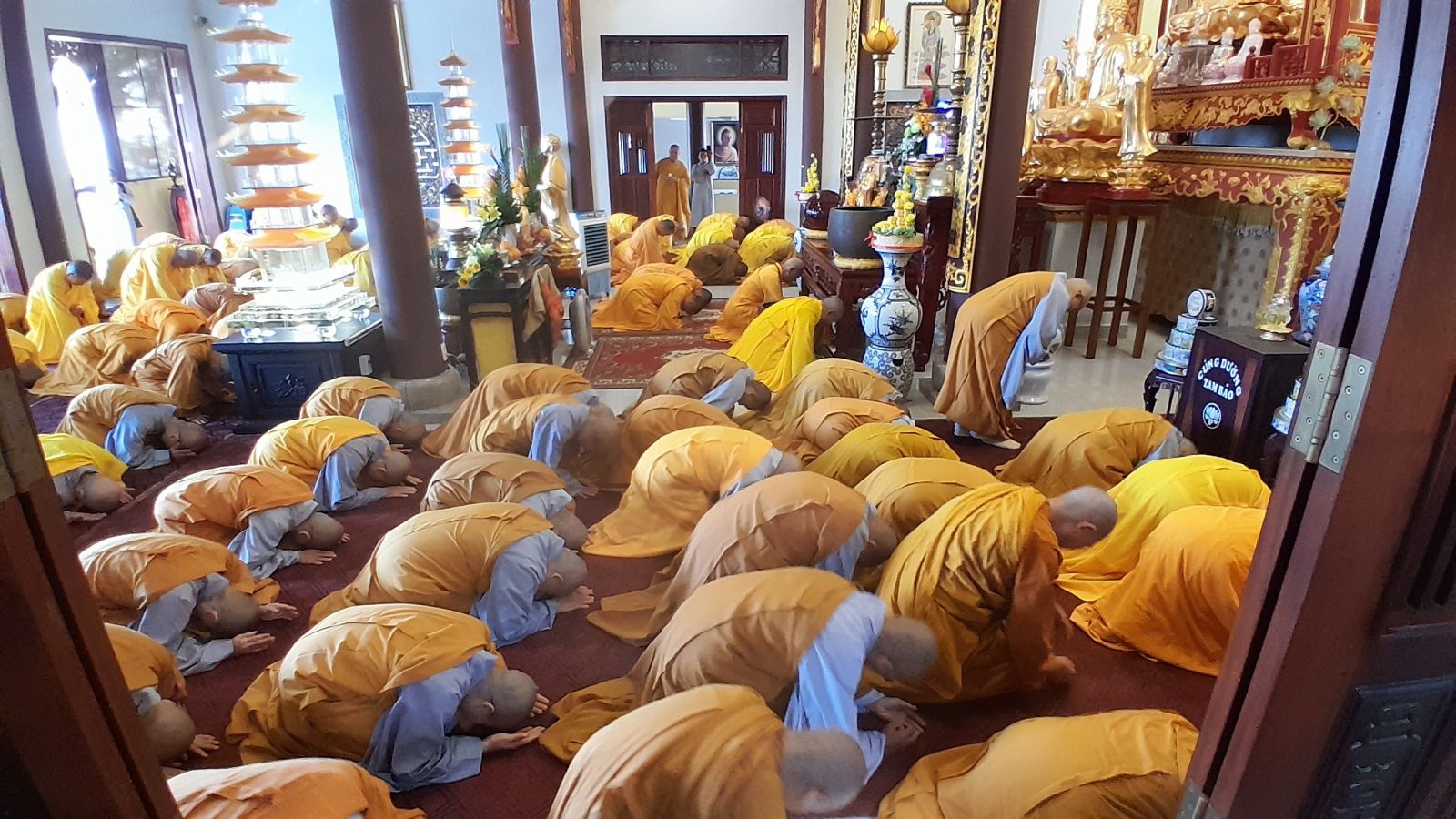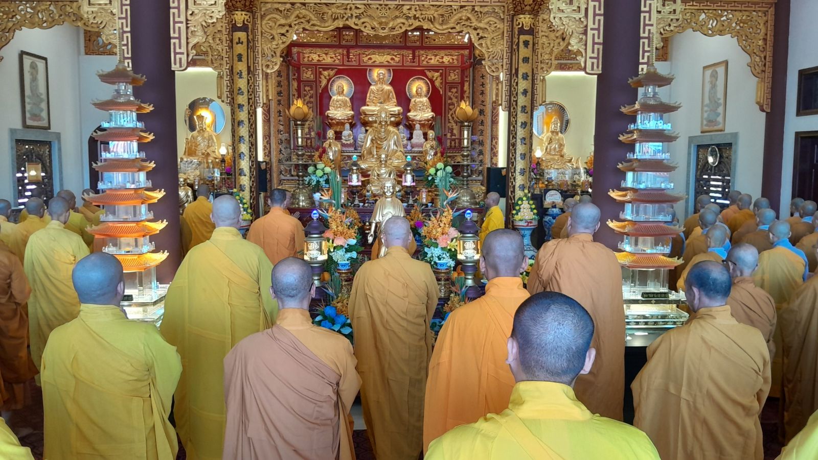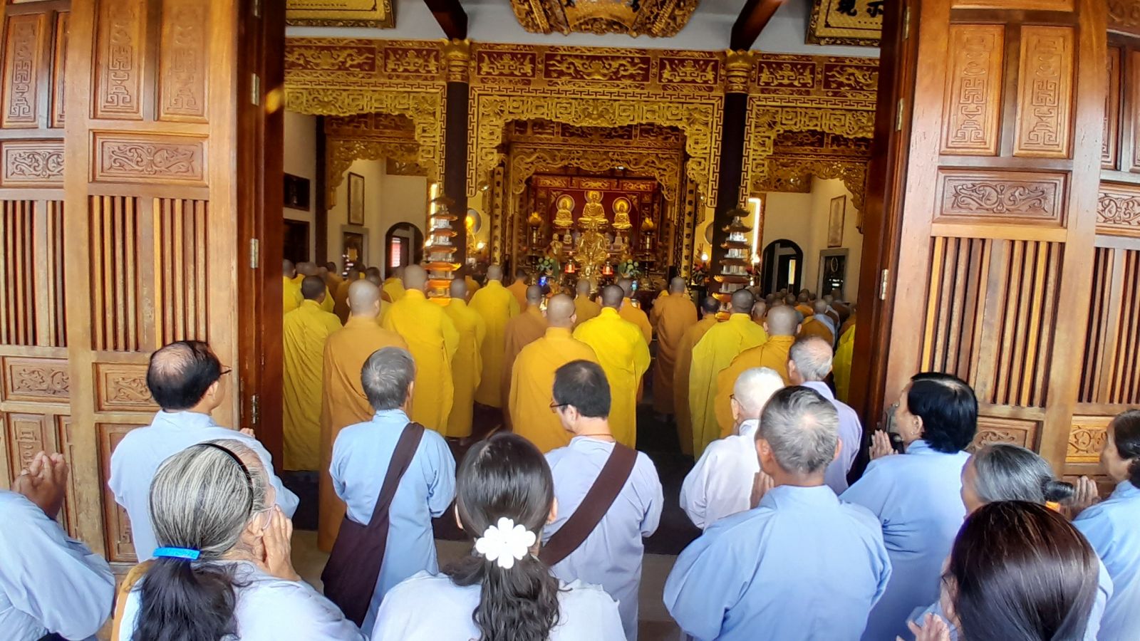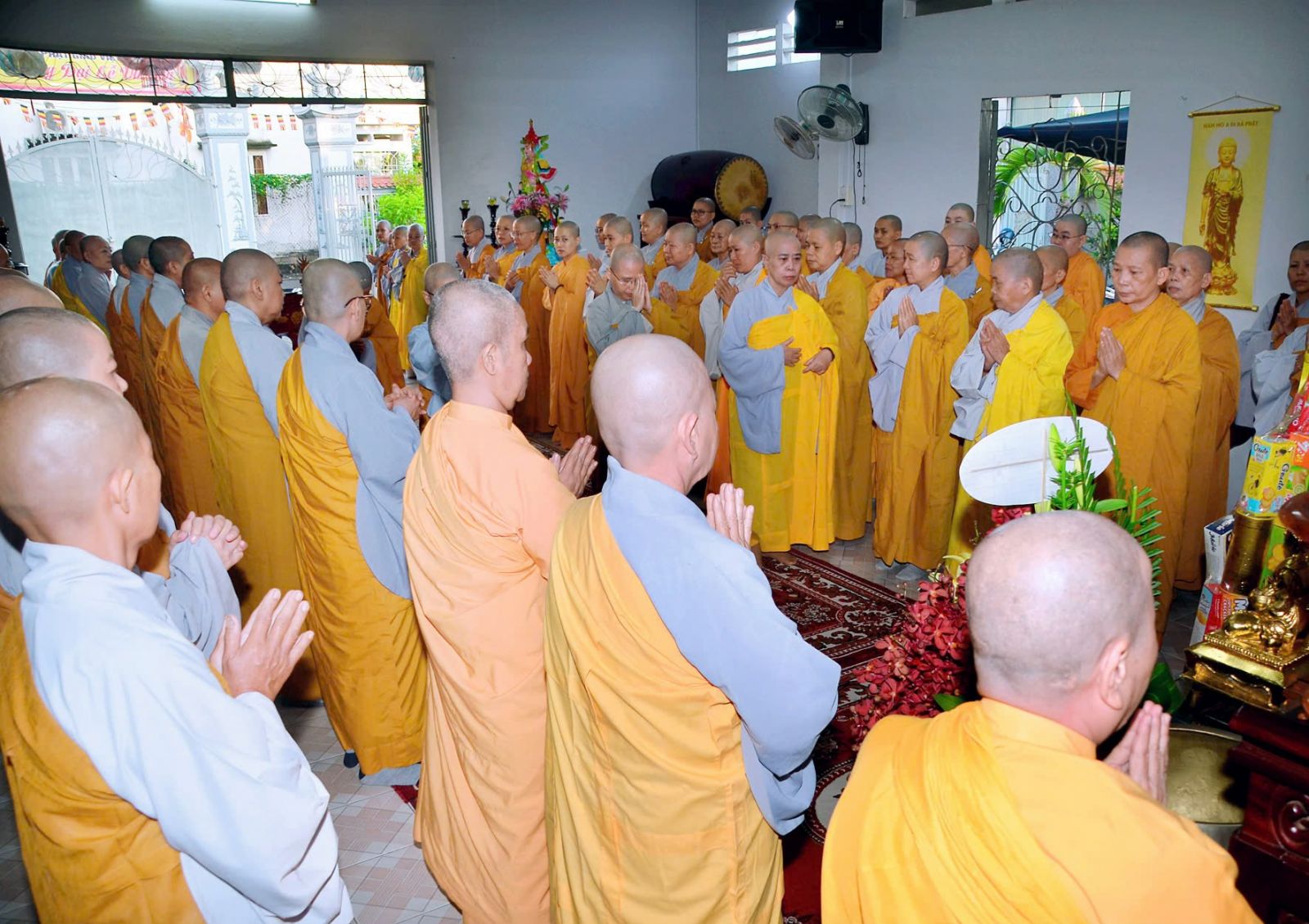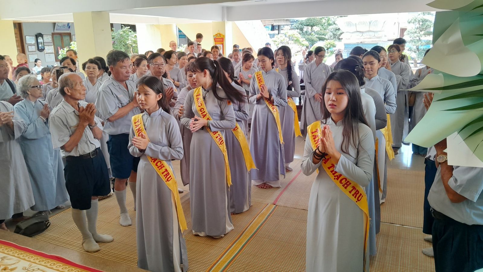 Sau đó, đại diện các đạo tràng, các chúng, Ban Hướng Dẫn GĐPTĐN đã có lời tác bạch kính mừng khánh tuế đến Chư Tôn Đức thêm một tuổi đạo, là chỗ dựa tinh thần cho hàng Phật tử nương tựa tu tập và chuyển hóa. Những hoa vàng cài lên những chiếc y vàng giải thoát. Và theo thứ tự đãnh lễ, dâng tịnh tài tịnh vật.