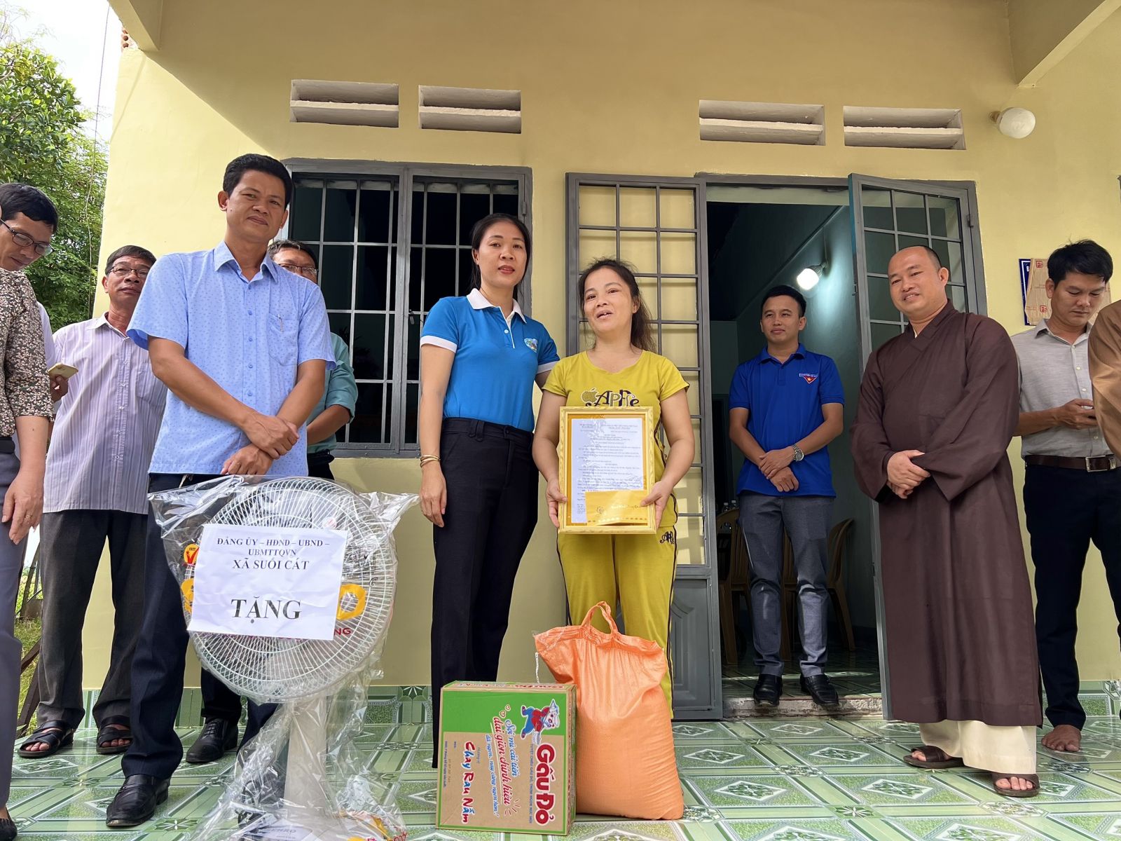 Nhân dịp này, Ban Trị sự GHPPGVN huyện, Ủy ban Nhân dân xã Suối Cát, Hội liên hiệp Phụ nữ xã Suối Cát đã trao tặng những phần quà hỗ trợ cho gia đình trong cuộc sống sắp tới.