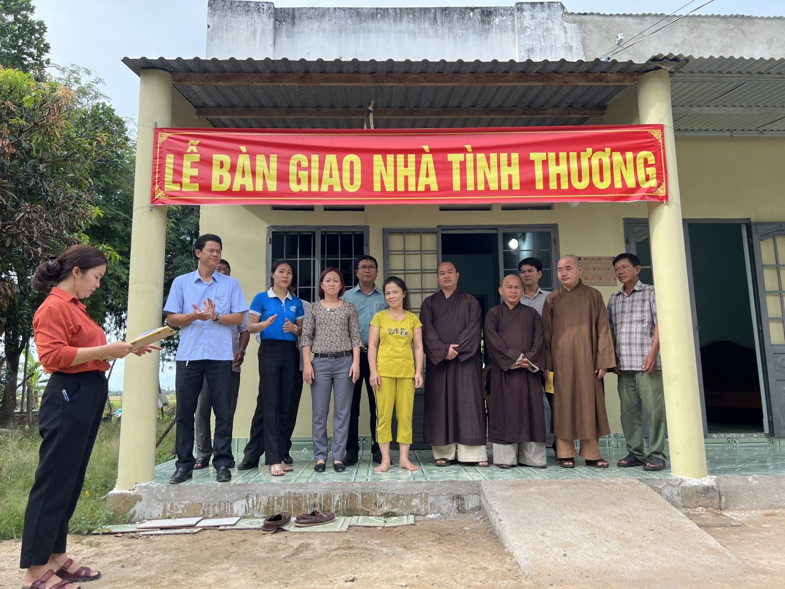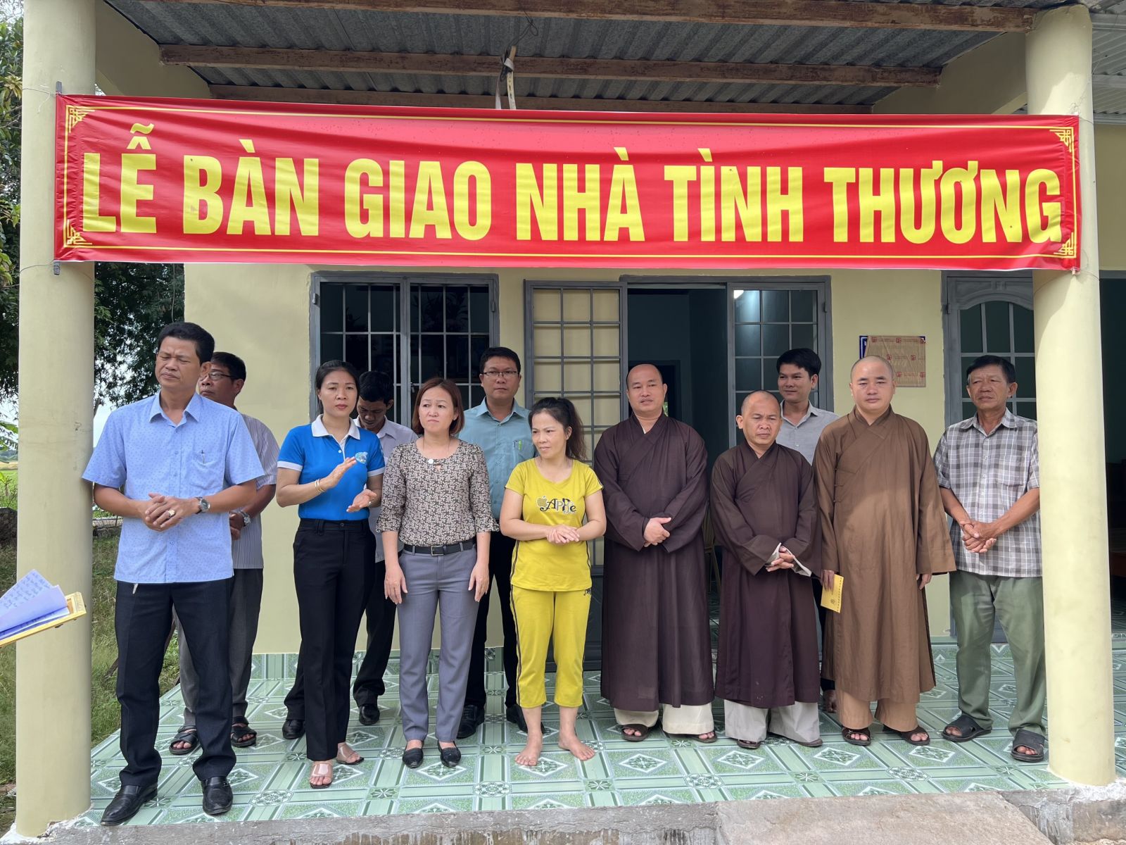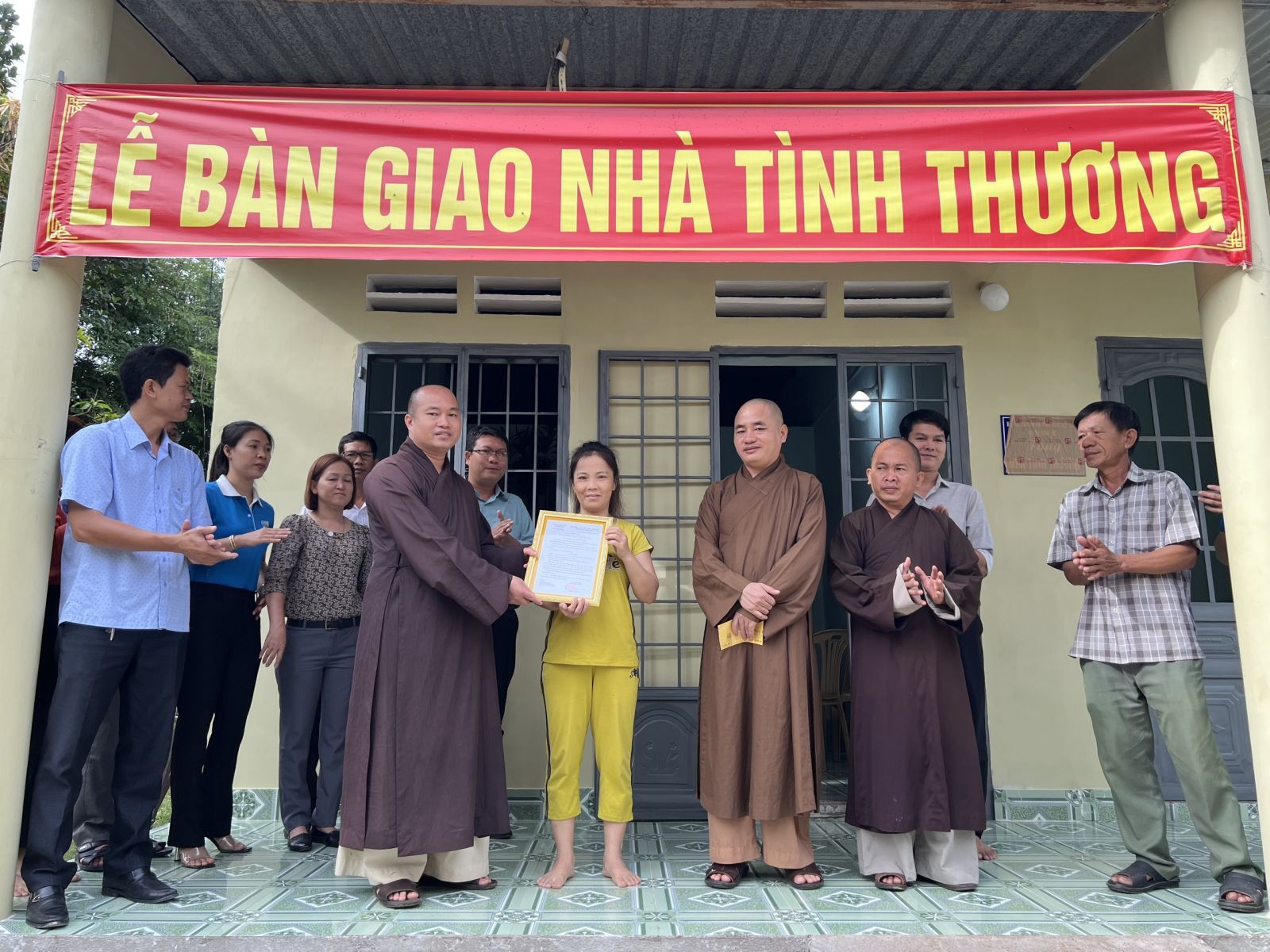 Phát biểu tại buổi lễ trao tặng nhà tình thương đại diện Ban Trị sự ĐĐ. Thích Quảng Vinh nhấn mạnh trên tình từ bi của Đạo Phật và sự quan tâm sâu sắc của Đảng, Nhà nước với niềm mong muốn chia sẻ nỗi khổ niềm đau đến những hoàn cảnh khó khăn. Vì vậy mong muốn gia đình sống có đầy đủ sức khỏe, luôn yêu thương đoàn kết với nhau, xây dựng tình làng nghĩa xóm thật tốt đẹp. Ông Lê Thanh Tuấn đã diện các cấp Chính quyền gởi lời tri ân sâu sắc đến Ban Trị sự GHPGVN huyện và mong muốn rằng Ban Trị sự tiếp tục quan tâm trong công tác an sinh xã hội, xóa đói giảm nghèo tại địa phương. Bà Nguyễn Thị Trúc xúc động trong buổi đón nhận nhà tình thương và gửi lời chân thành cảm ơn đến Ban Trị sự GHPGVN huyện và các cấp Chính quyền đã quan tâm giúp đỡ để gia đình có nơi ở ổn định yên tâm lao động sản xuất.