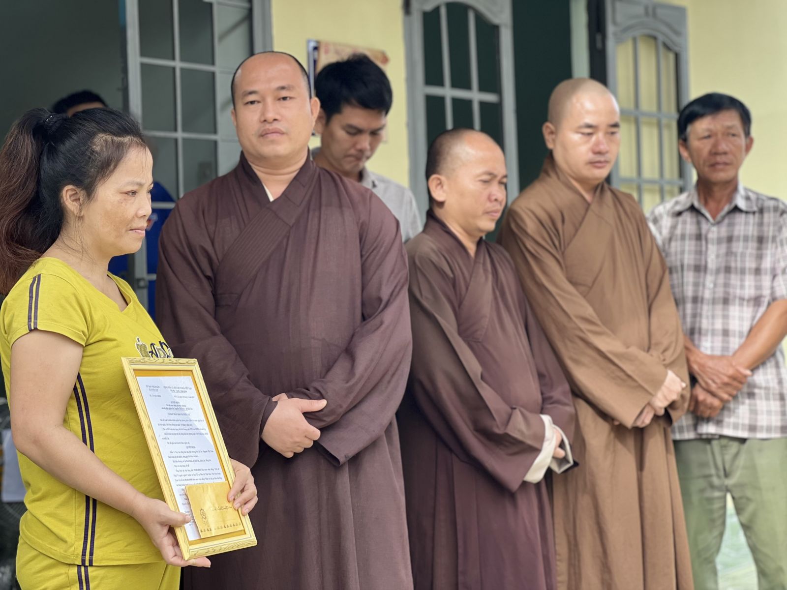 Qua gần 1 tháng thi công xây dựng căn nhà được hoàn thành, căn nhà được xây dựng kiên cố, nền lát gạch men, mái lợp tôn, trần đóng la phông, tường tô sơn nước, diện tích 50m2, có một công trình phụ nhà vệ sinh, tổng kinh phí xây dựng 70. 000.000đ, trong đó do Ban Trị sự GHPGVN huyện tài trợ 50.000.000đ phần còn lại gia đình vận động họ hàng và các Mạnh thường quân là 20.000.000đ.