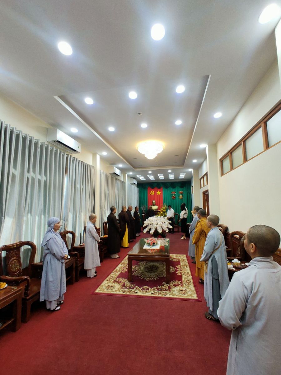Tại các nơi đến, Thượng tọa Trưởng ban thay mặt Chư Tôn đức Thường trực Ban Trị sự đại diện Tăng Ni và tín đồ Phật tử đã thăm hỏi, cảm ơn sự hỗ trợ tạo điều kiện thuận lợi của các cấp Chính quyền giúp cho các công tác Phật sự được thành tựu viên mãn trong năm qua.