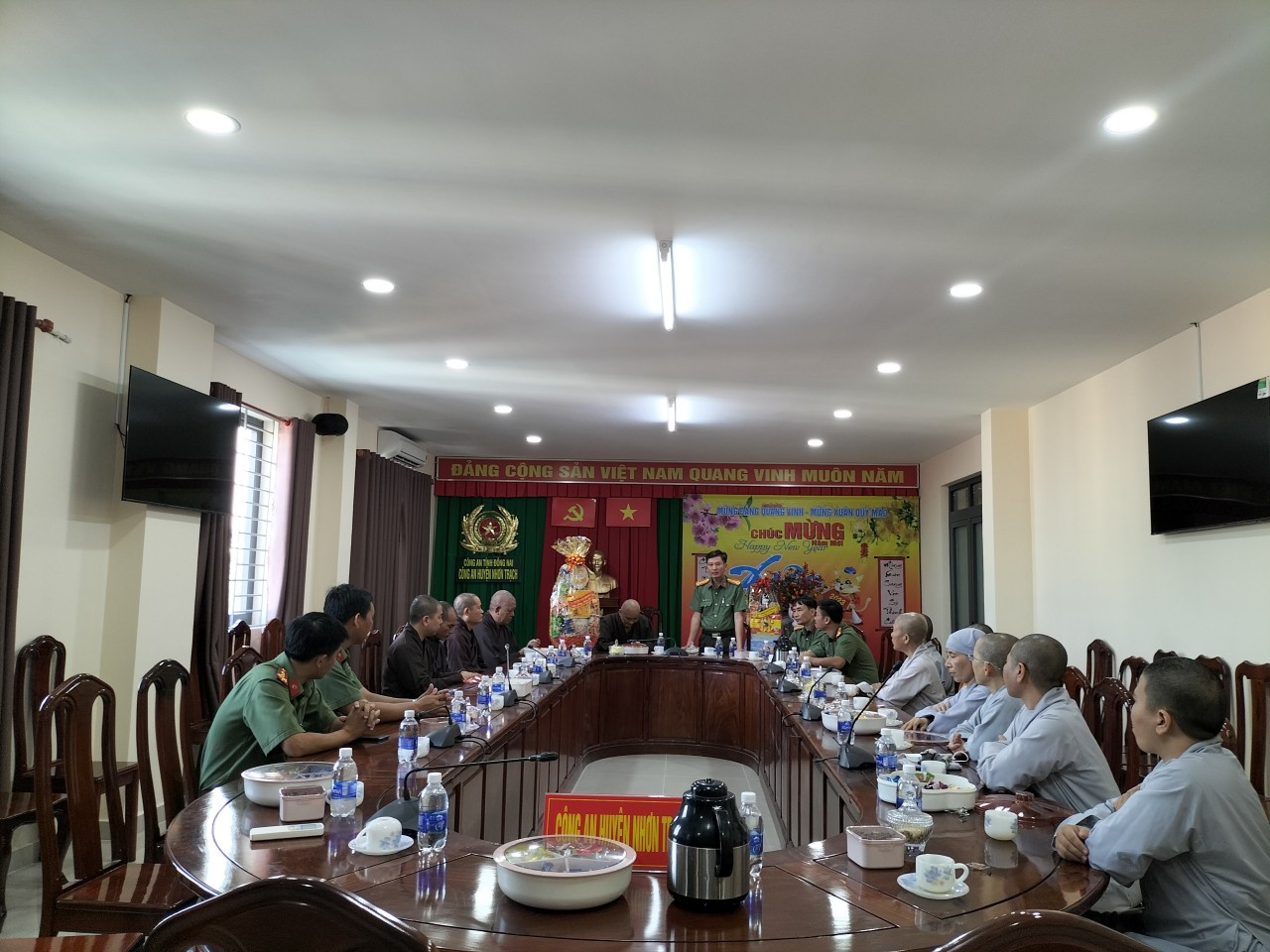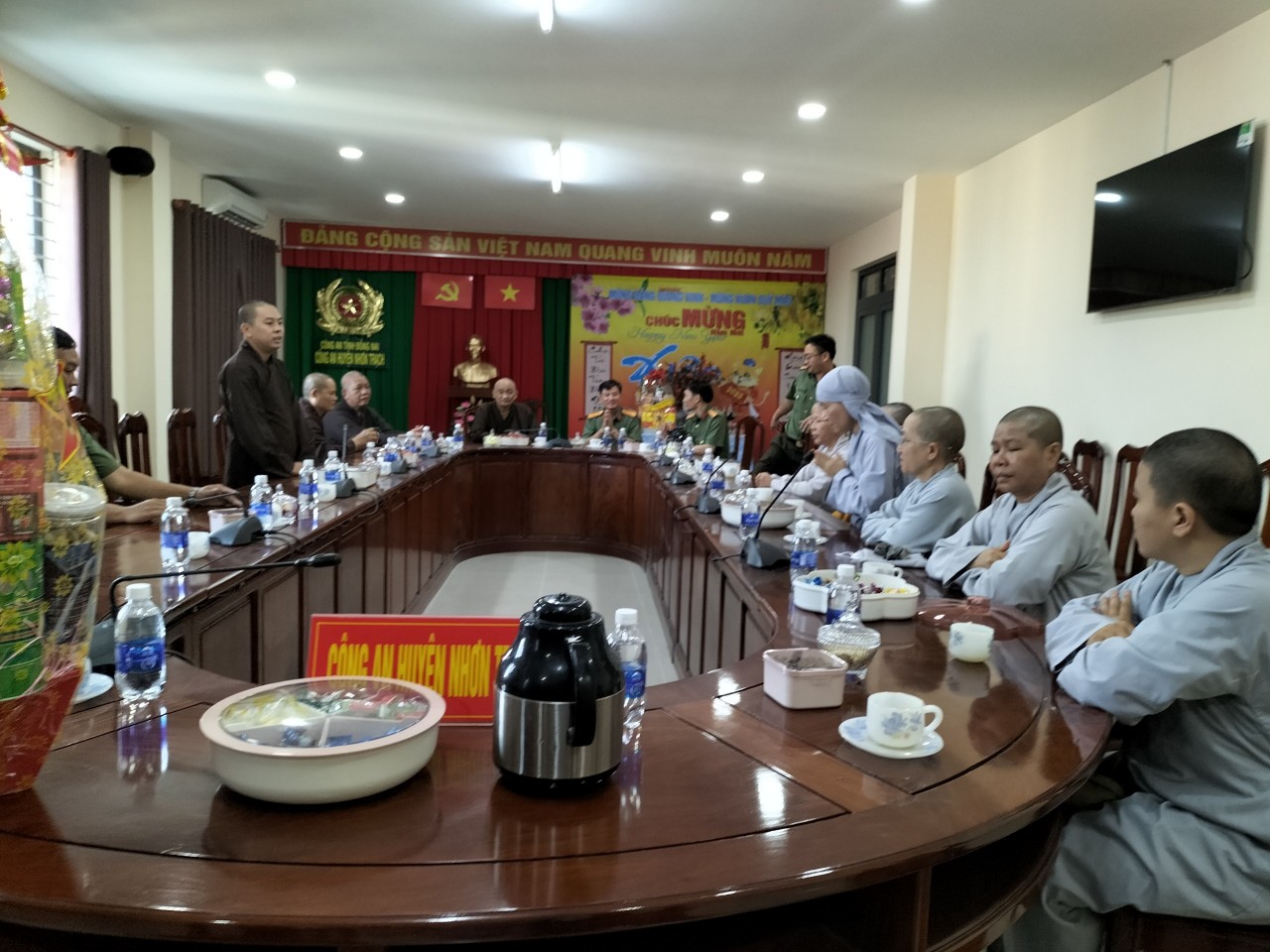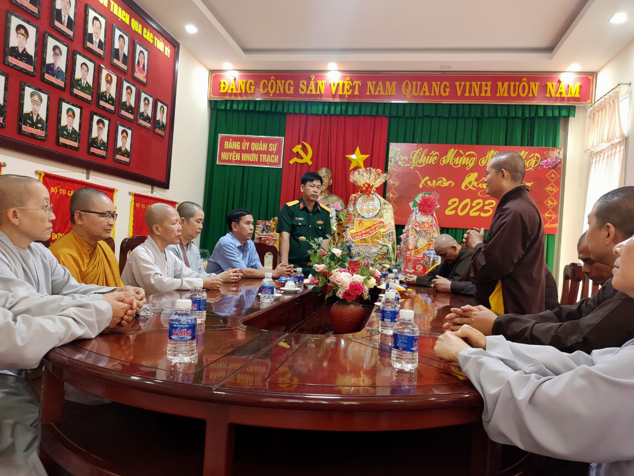 Điểm đầu tiên đoàn đã đến Trụ sở ban Công an huyện Nhơn Trạch và sau đó đoàn đến thăm và chúc Tết tại Ban Chỉ huy Quân sự.
