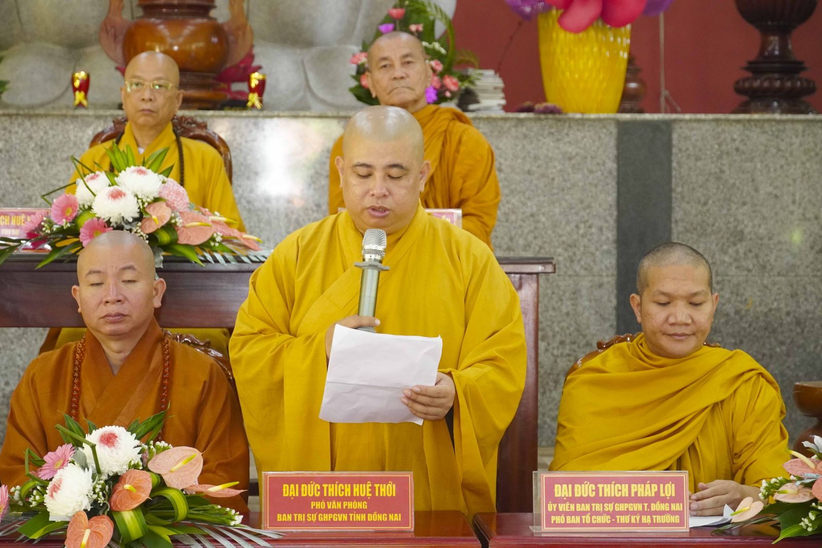 Đoàn đến thăm có TT. Thích Huệ Khai - Ủy viên Thường trực HĐTS, Trưởng Ban Trị sự, Trưởng ban Tăng sự GHPGVN tỉnh Đồng Nai; TT. Thích Chơn Lý - Ủy viên Dự khuyết HĐTS, Phó Ban Trị sự, Trưởng ban Pháp chế GHPGVN tỉnh; ĐĐ. Thích Thiện Trí – Phó Thư ký kiêm Chánh Văn phòng Ban Trị sự GHPGVN tỉnh; ĐĐ. Thích Huệ Thới – Phó Văn phòng Ban Trị sự GHPGVN tỉnh; cùng chư Tôn đức Văn phòng Ban Trị sự GHPGVN tỉnh.