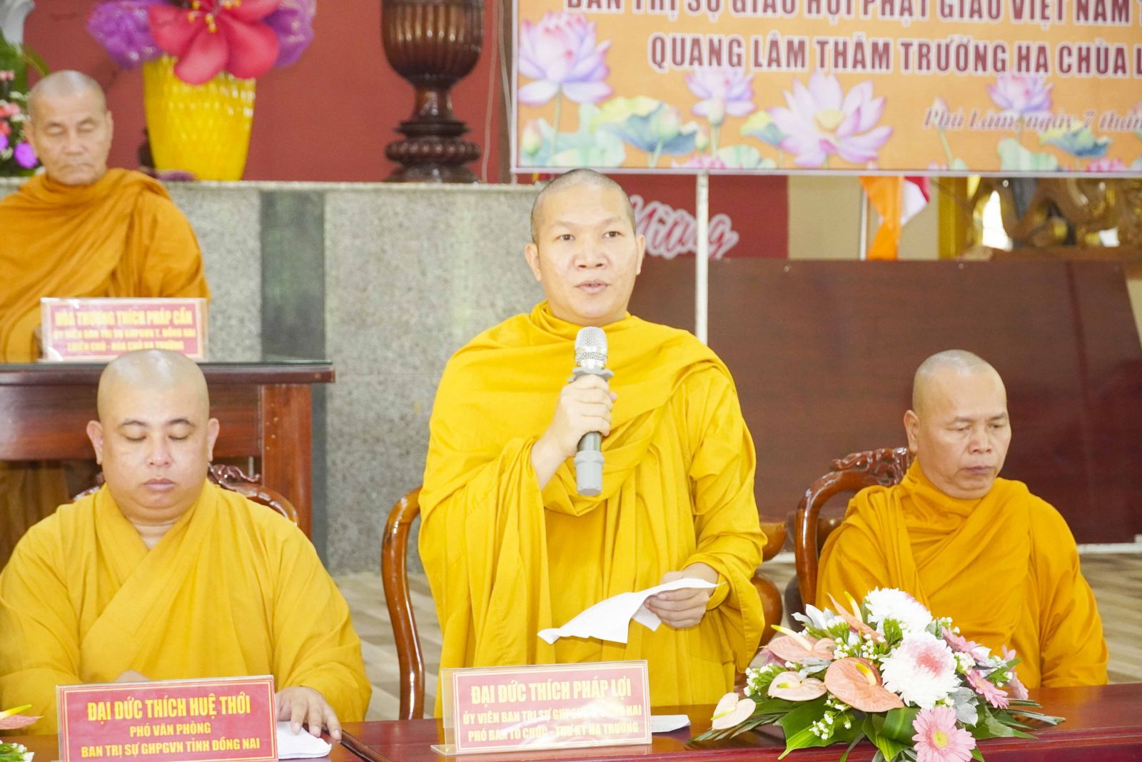 Sau cùng, HT. Thích Pháp Cần đại diện cho Hạ trường Chùa Linh Phú, TT. Thích Đồng Ngạn đã thay mặt Ban Tổ chức Hạ trường Chùa Pháp Quang đã gửi lời tri ân đến chư Tôn đức Ban Trị sự GHPGVN tỉnh Đồng Nai đã đến thăm và sách tấn Hành giả An cư tại Hạ trường, đây cũng là dịp thể hiện sự quan tâm của Ban Trị sự tỉnh đối với Tăng Ni hành giả An cư.