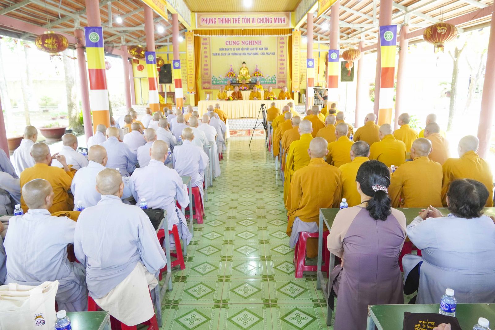 Tại Chùa Pháp Quang có HT. Thích Quảng Trí – Chứng minh Giám luật Hạ trường; TT. Thích Đồng Ngạn - Ủy viên Ban Trị sự GHPGVN tỉnh, Trưởng Ban Tổ chức Hạ trường; ĐĐ. Thích Huệ Trí – Ban Tổ chức Hạ trường; cùng chư Tôn đức Ban chức sự hạ trường và Tăng Ni hành giả An cư tại Hạ trường chùa Pháp Quang.